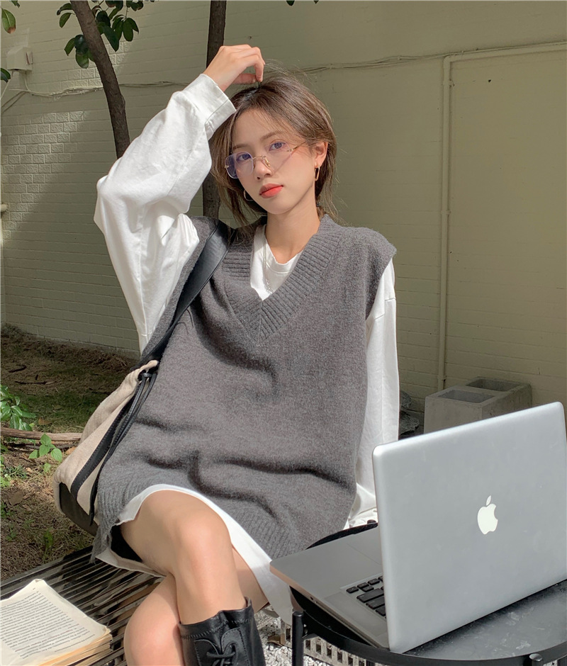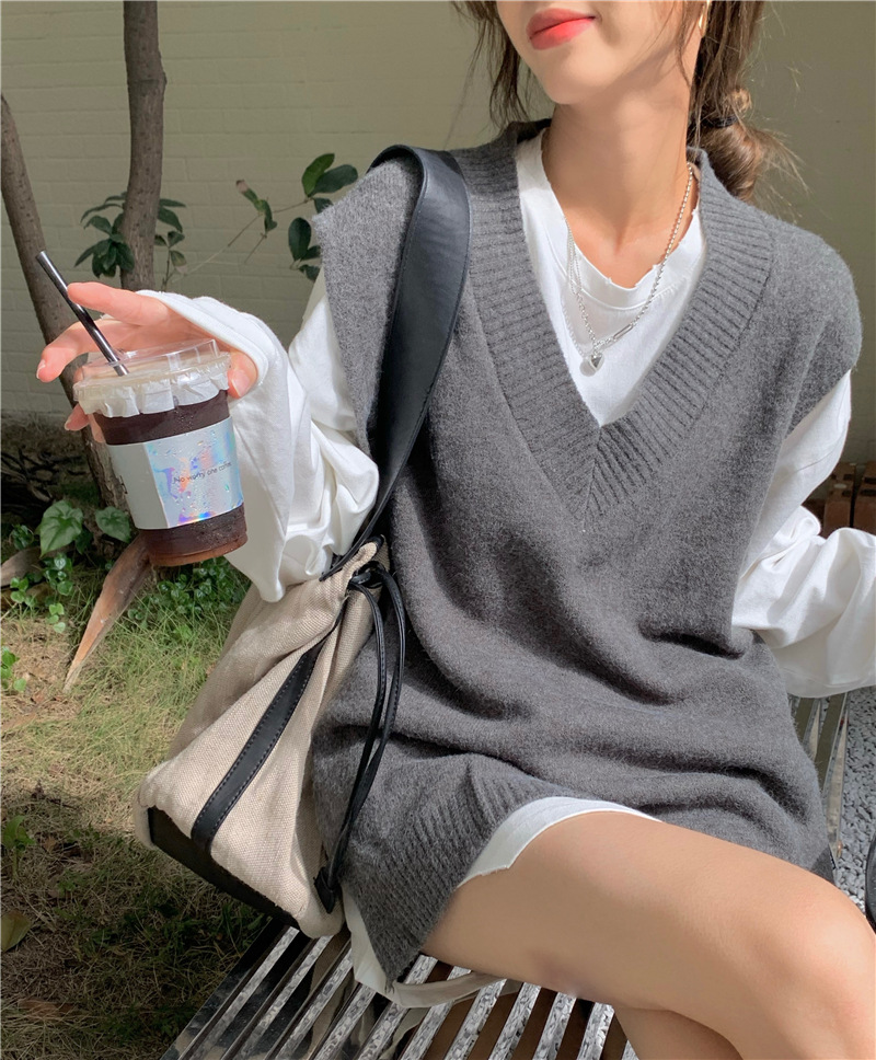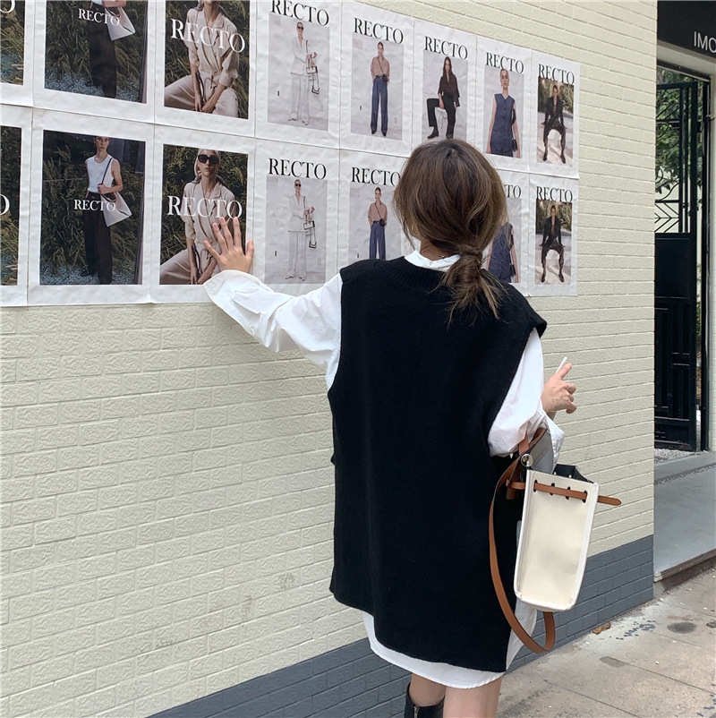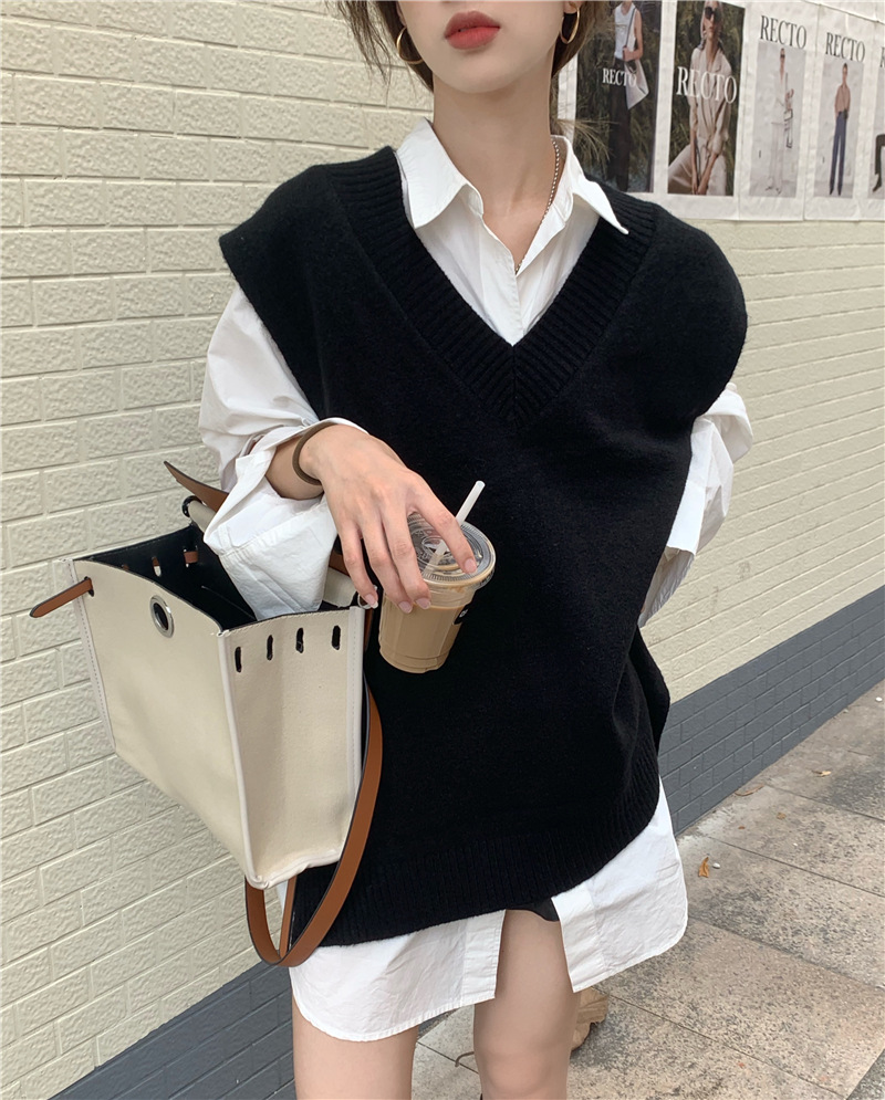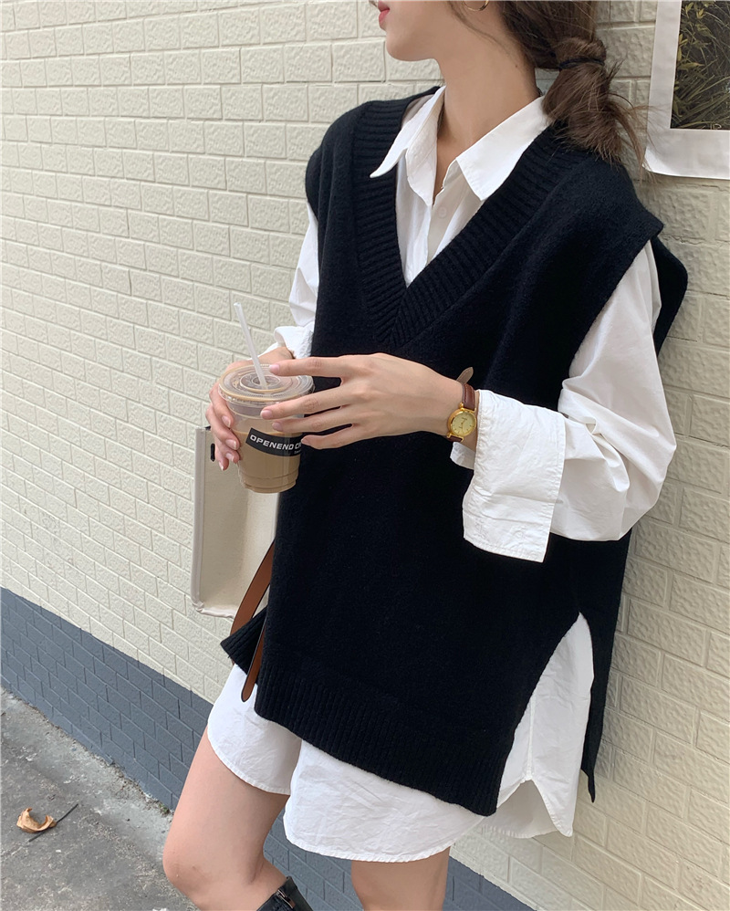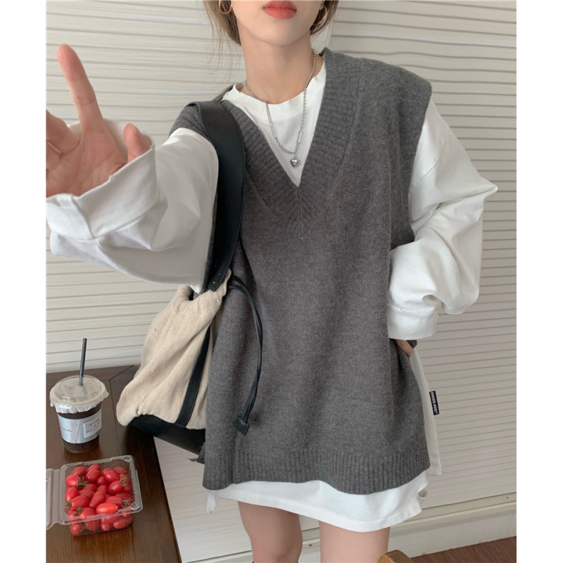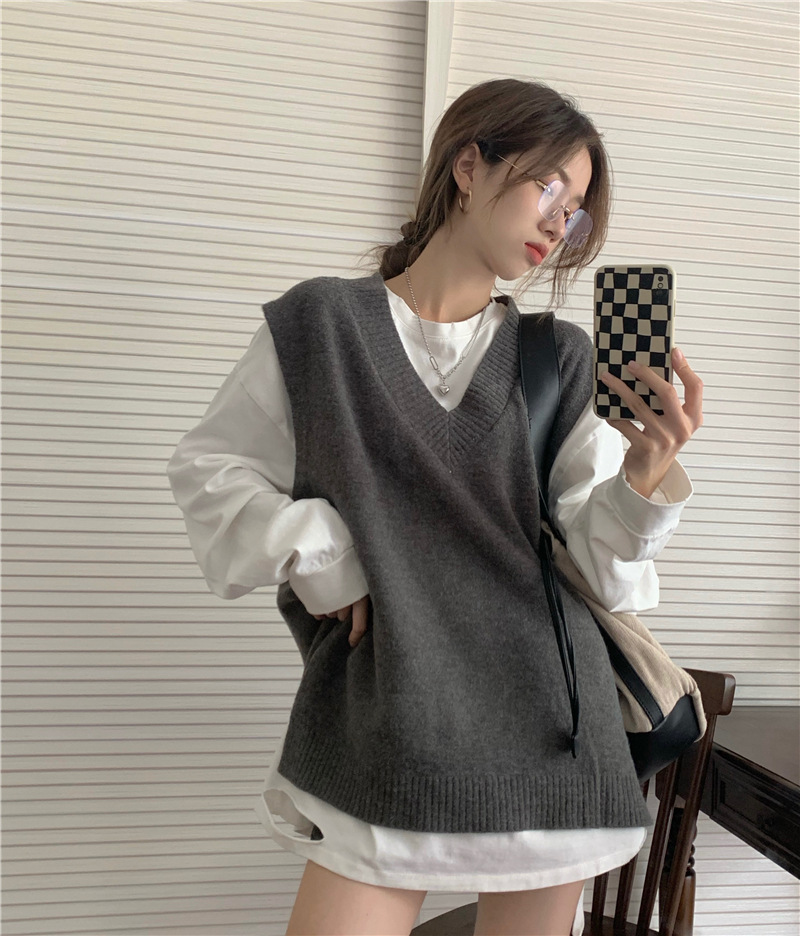 2025 새로운 v 넥 니트 풀오버 조끼 여성 한국 스타일 느슨한 다목적 슬리밍 겉옷 민소매 스웨터 여성스토어 가기