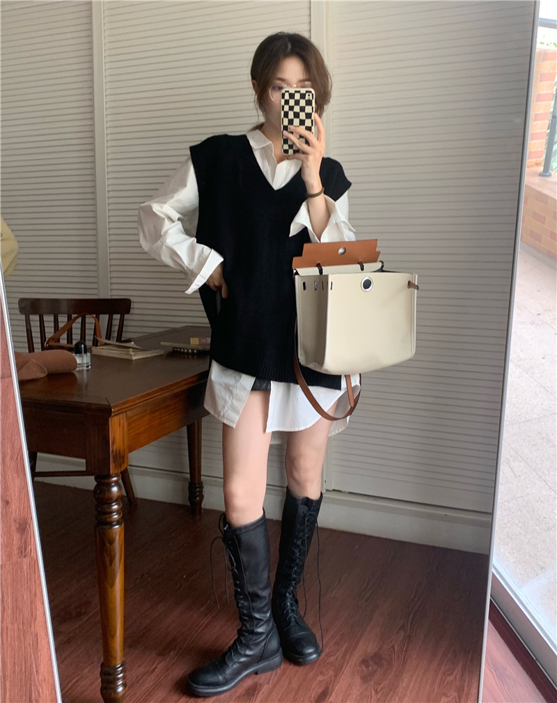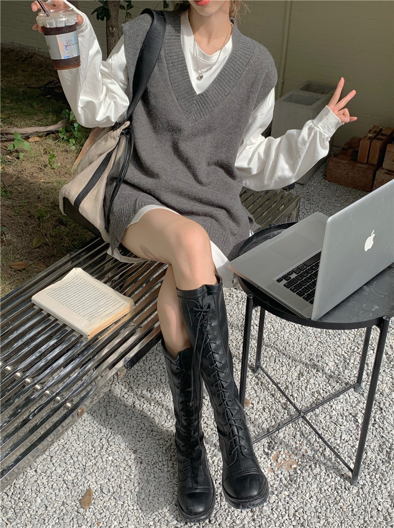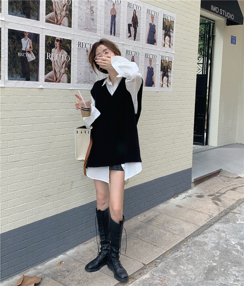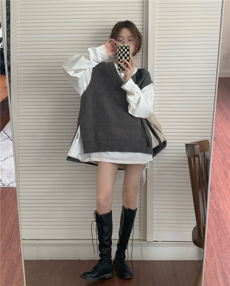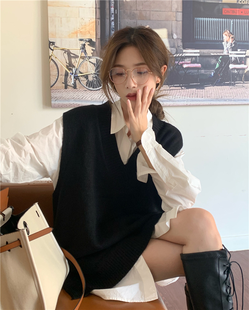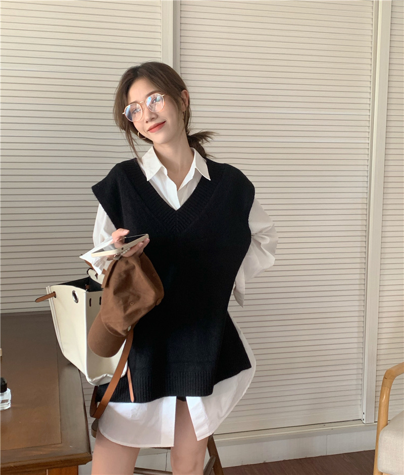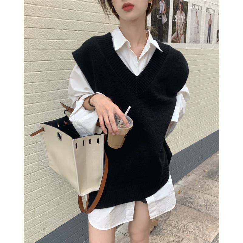 2025 새로운 v 넥 니트 풀오버 조끼 여성 한국 스타일 느슨한 다목적 슬리밍 겉옷 민소매 스웨터 여성스토어 가기
