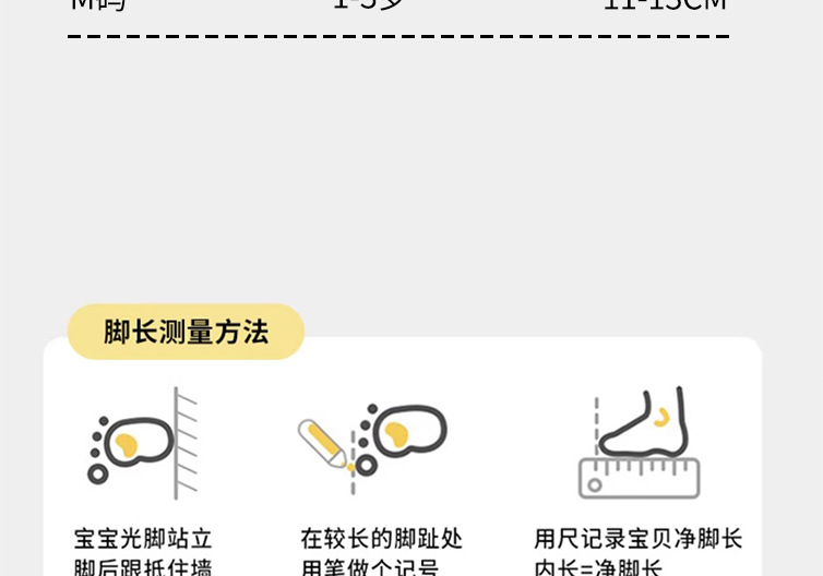 • M 사이즈 1-3세, 권장 발 길이 11-13CM