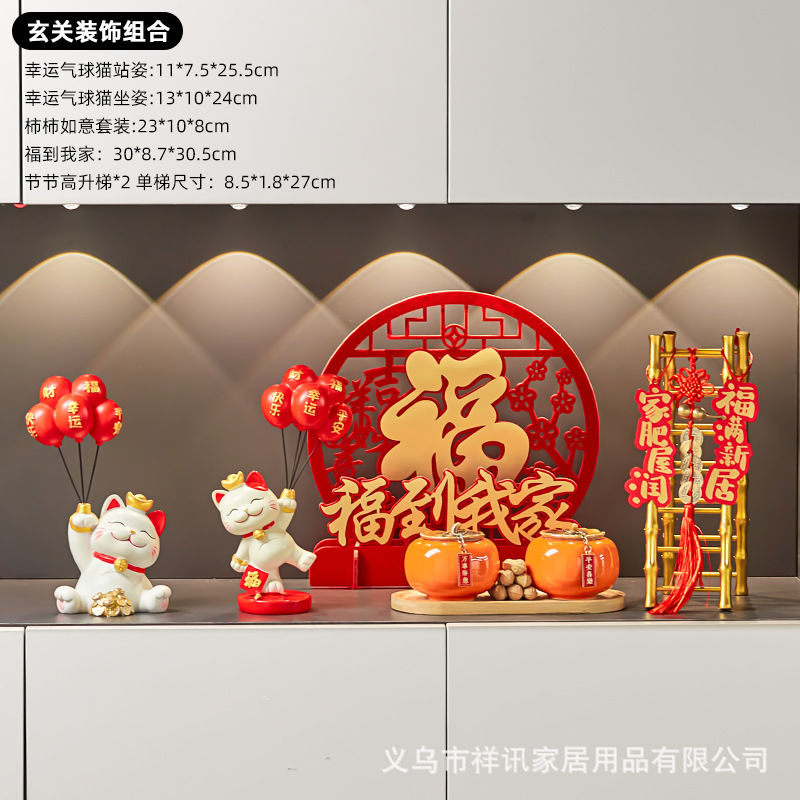 • 앉아있는 위안바오 고양이 + 서있는 행운의 고양이 + 새 집에 부 + 집들이 사다리