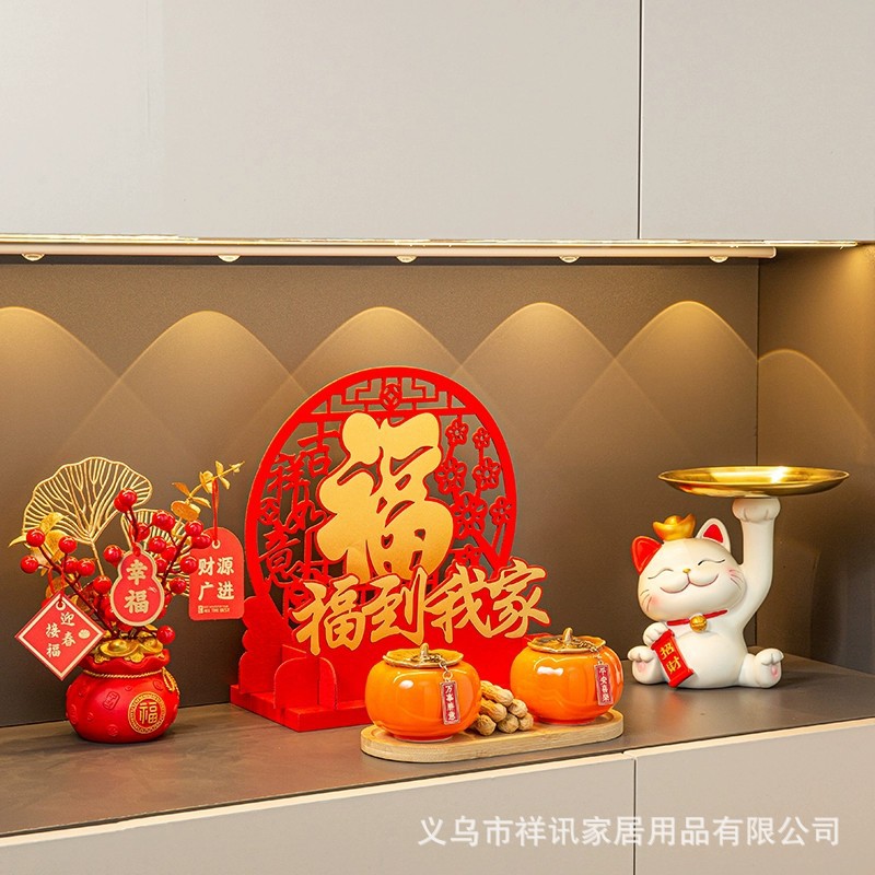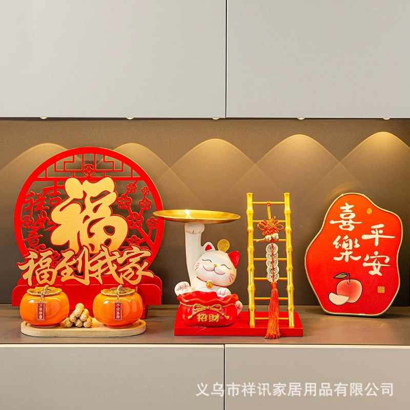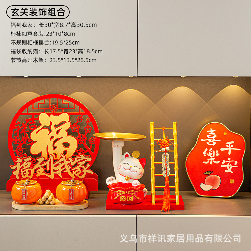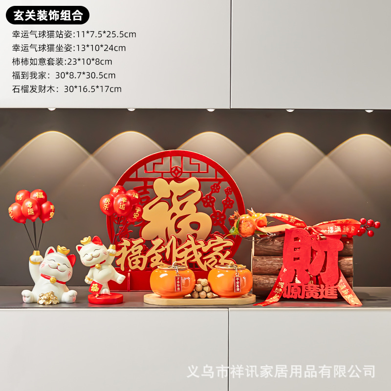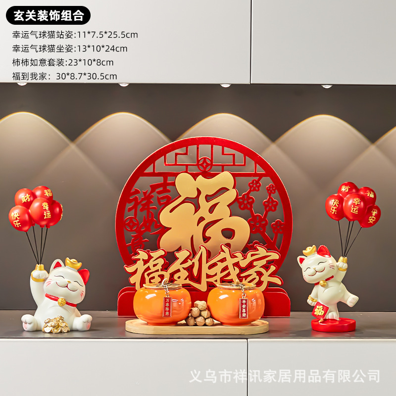 • 앉아있는 위안바오 고양이 + 서있는 행운의 고양이 + 우리 집에 행운이 온다 + 도자기 감 세트 + 새 집에 부가 온다