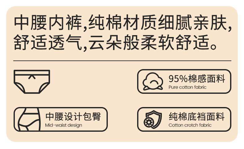 여성용 순면 항균 속옷 여성용 면 100 중간 허리 원활한 통기성 대형 일본 소녀 삼각형 반바지스토어 가기