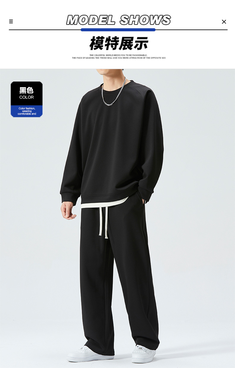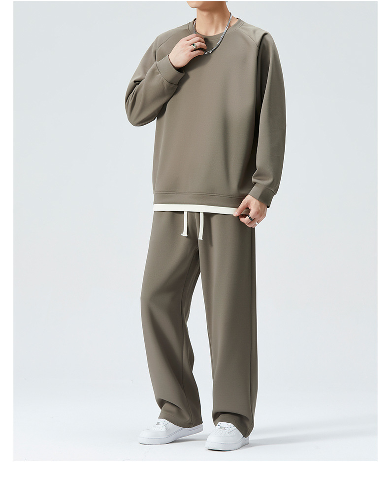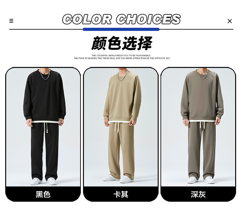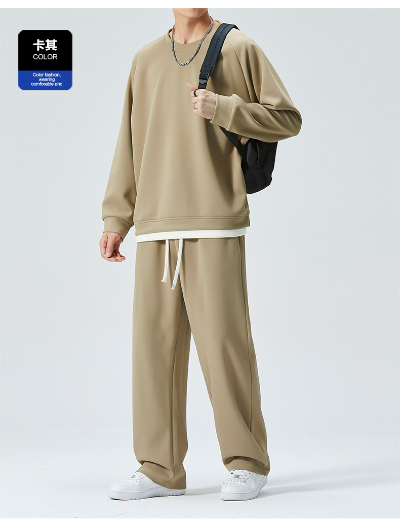 가을 겨울 얇은 캐주얼 스포츠 정장 남성 투피스 트렌디 브랜드 투웨이 솔리드 컬러 스웨트 팬츠 라운드 넥 스웨트 셔츠