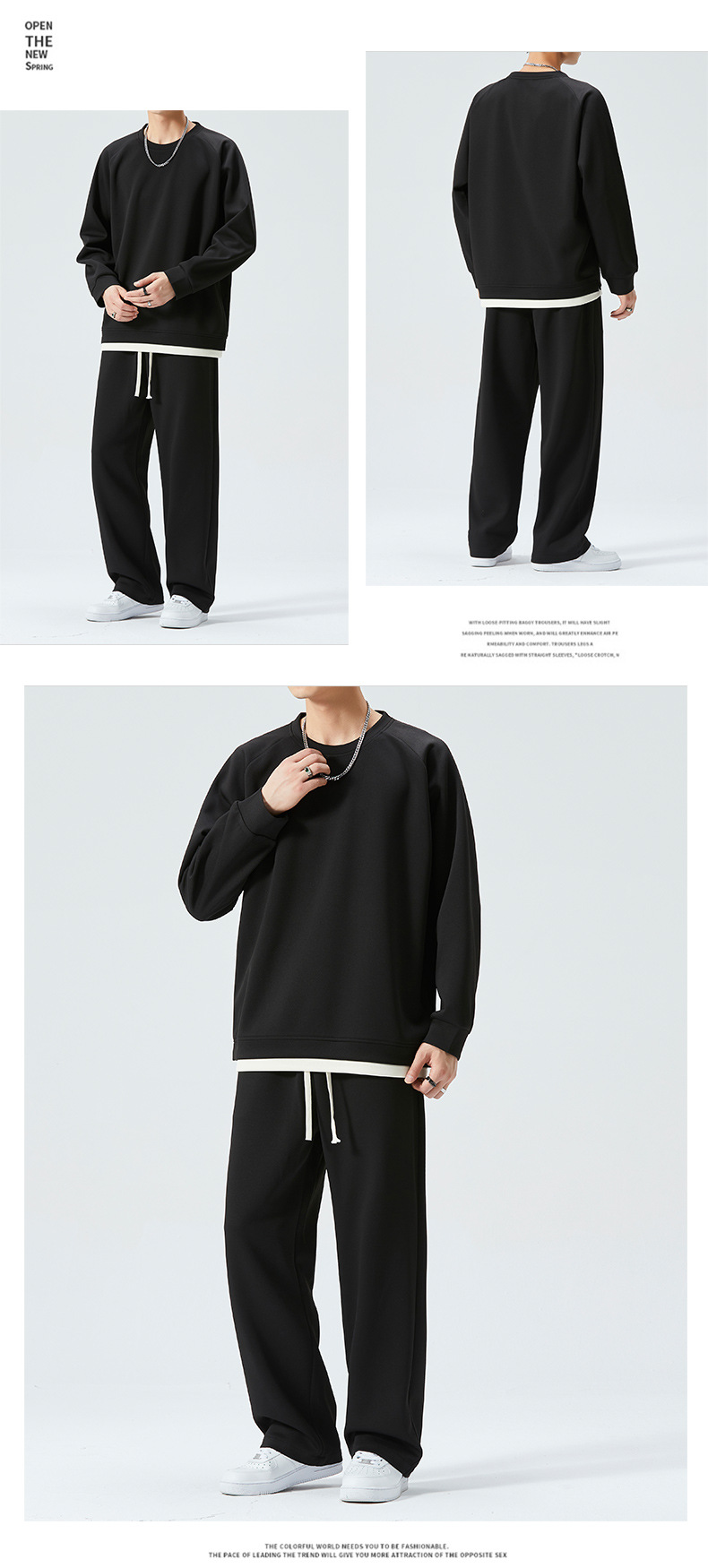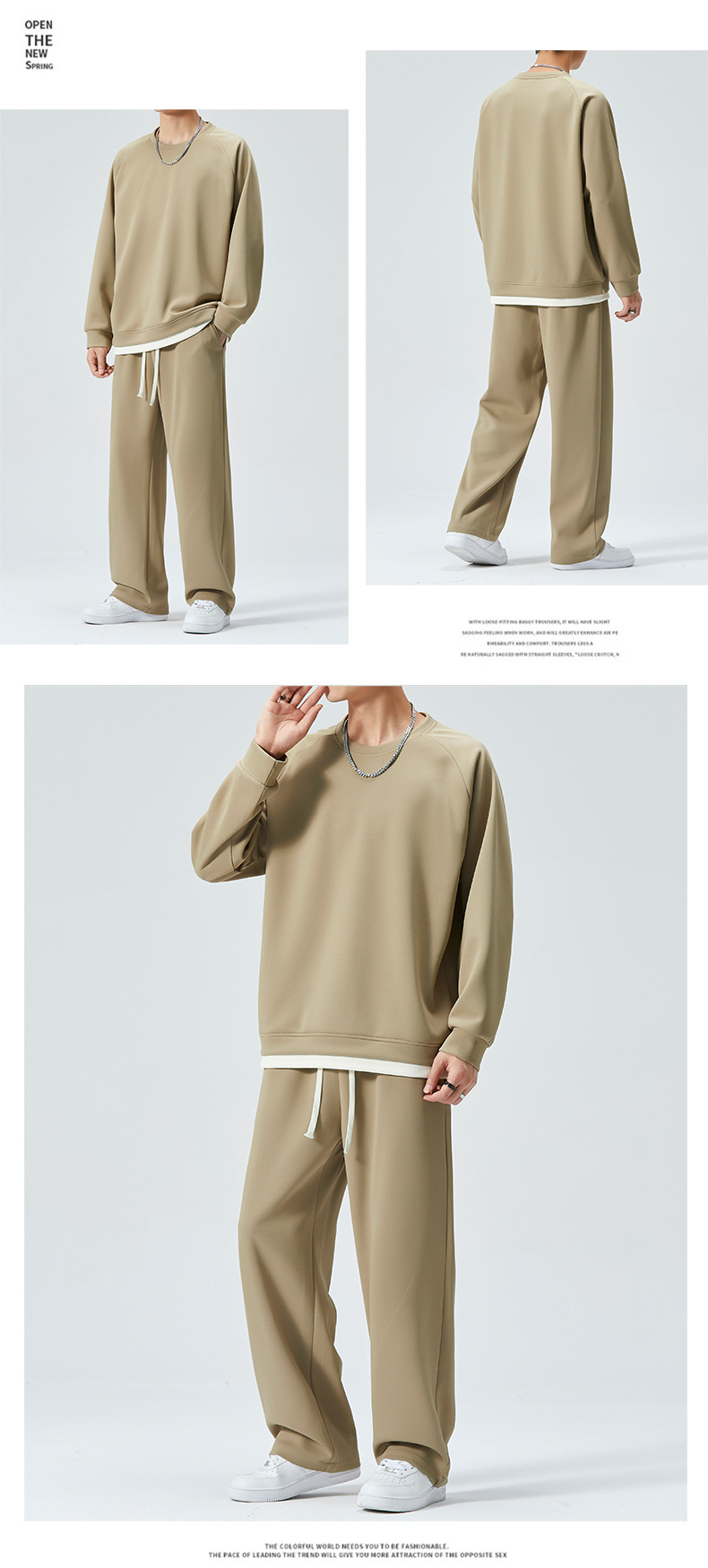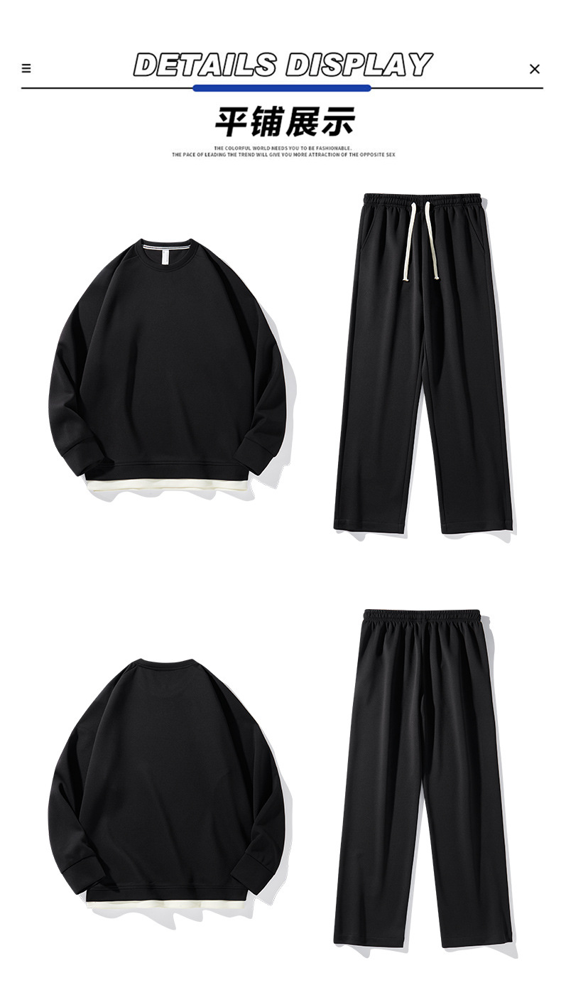가을 겨울 얇은 캐주얼 스포츠 정장 남성 투피스 트렌디 브랜드 투웨이 솔리드 컬러 스웨트 팬츠 라운드 넥 스웨트 셔츠