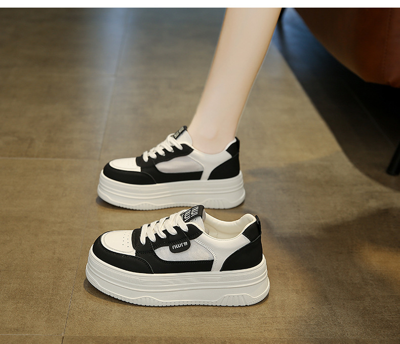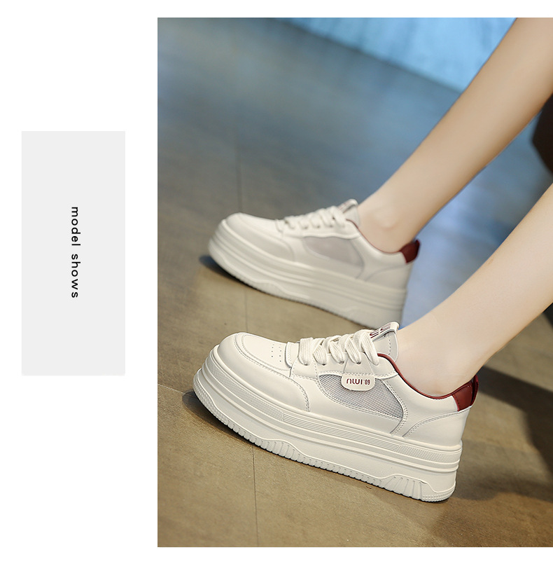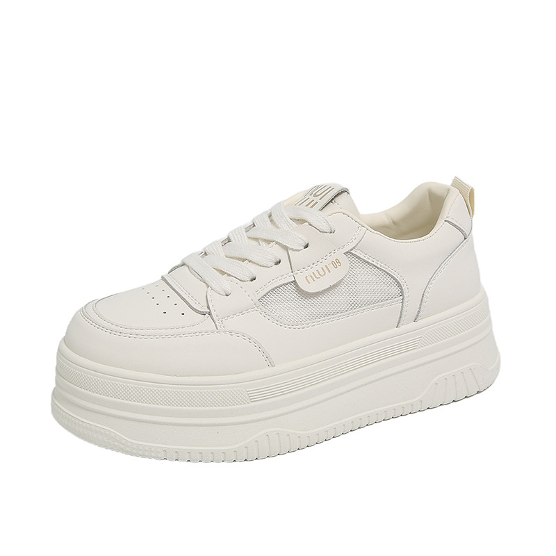 여성용 두꺼운 밑창의 흰색 신발, 다재다능한 2025 봄 신작 인기 스타일, 가볍고 얇은 스포츠 및 레저 플랫폼 신발스토어 가기