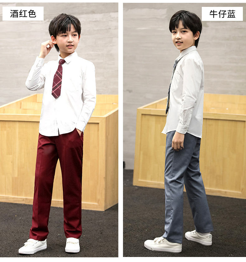 아동용 바지, 남아용 봄, 가을 흰색 스트레이트 팬츠, 캠퍼스 중대형 아동용 바지, 피아노 연주복 바지, 아동용 바지스토어 가기