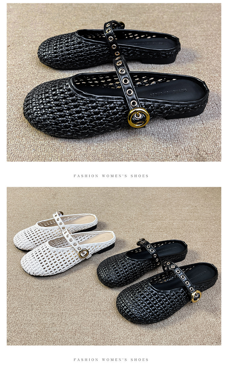 짠 할로우 샌들과 슬리퍼 여자 2025 년 여름 새로운 올매치 편안한 슬립 온 캐주얼 비치 슬리퍼