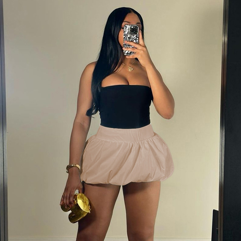 유럽과 미국 스타일의 아마존 미니 플리츠 스커트 버블 스커트 솔리드 컬러 신축성 있는 허리 울트라 쇼트 미니 스커트