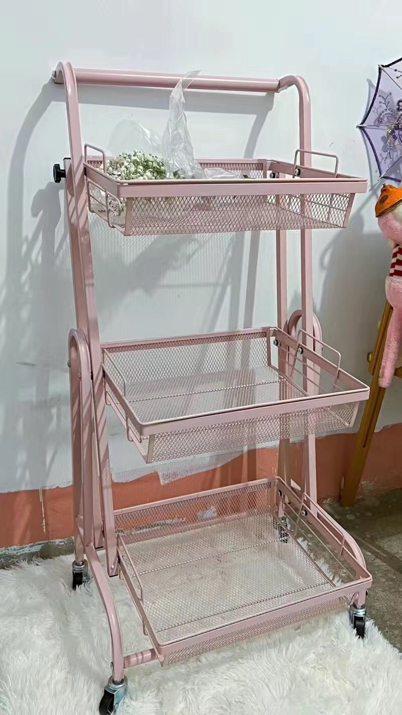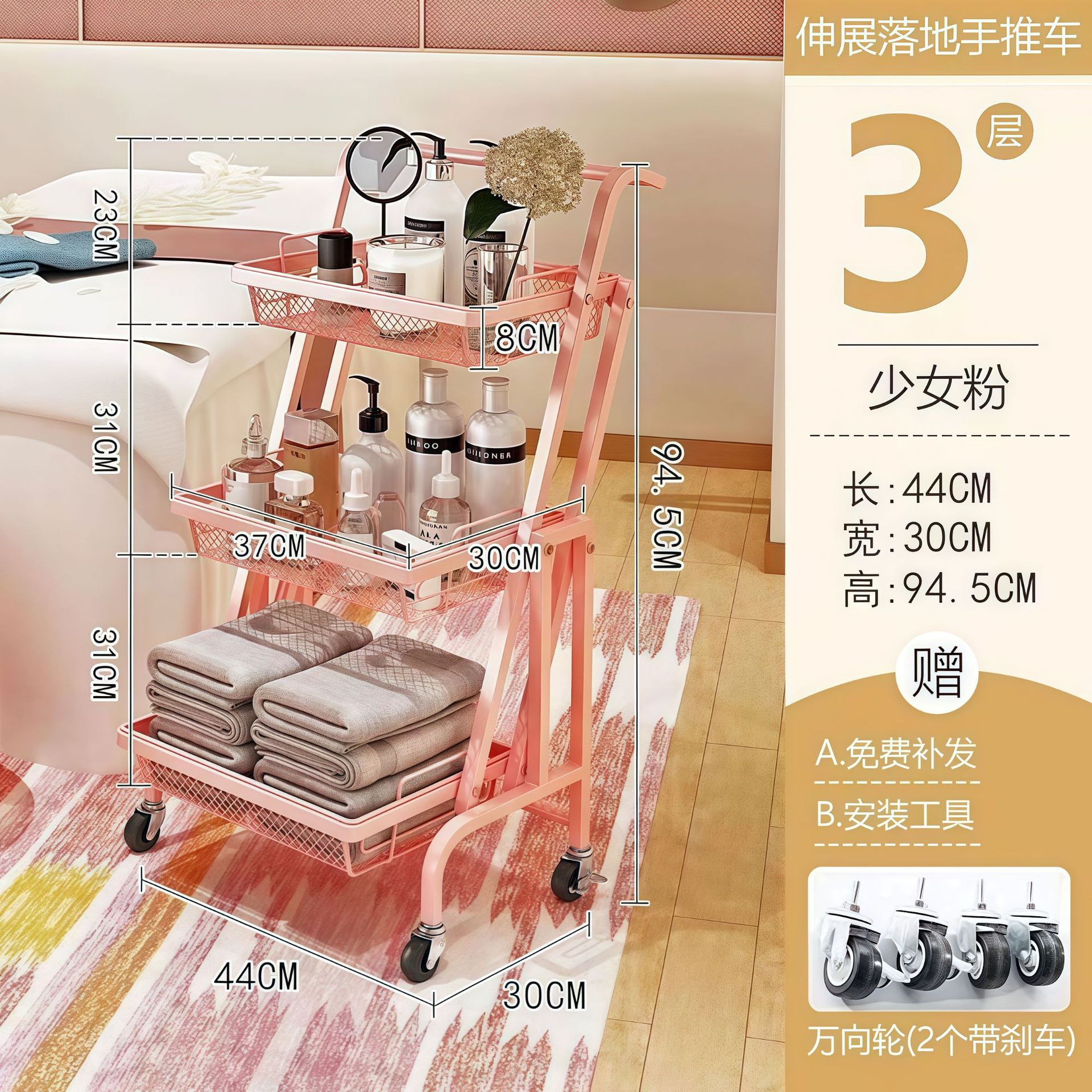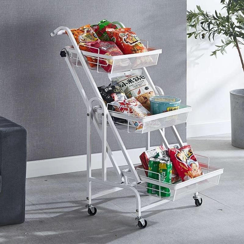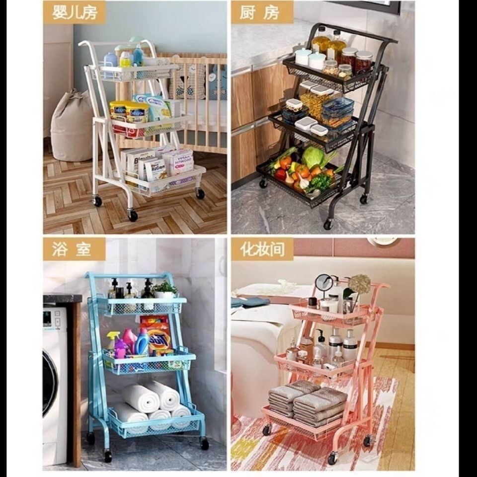 Ins 스타일 탄소 강철 접이식 트롤리 다기능 주방 보관 랙 바닥 서 회전 가능한 다층 저장 랙스토어 가기