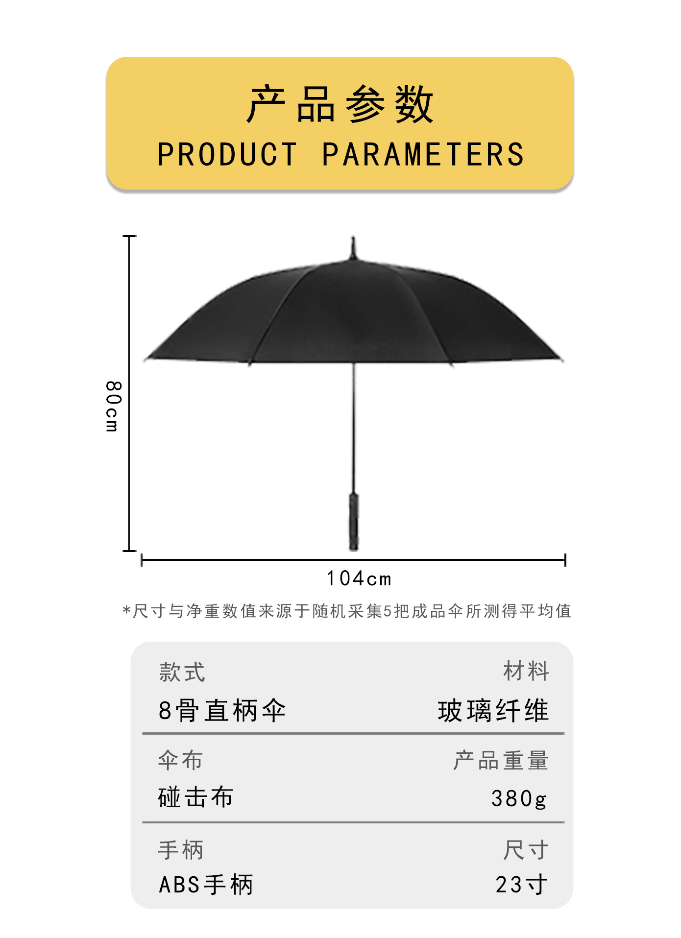 • 23인치 8본 직선 손잡이 우산 블랙 터치 패브릭
