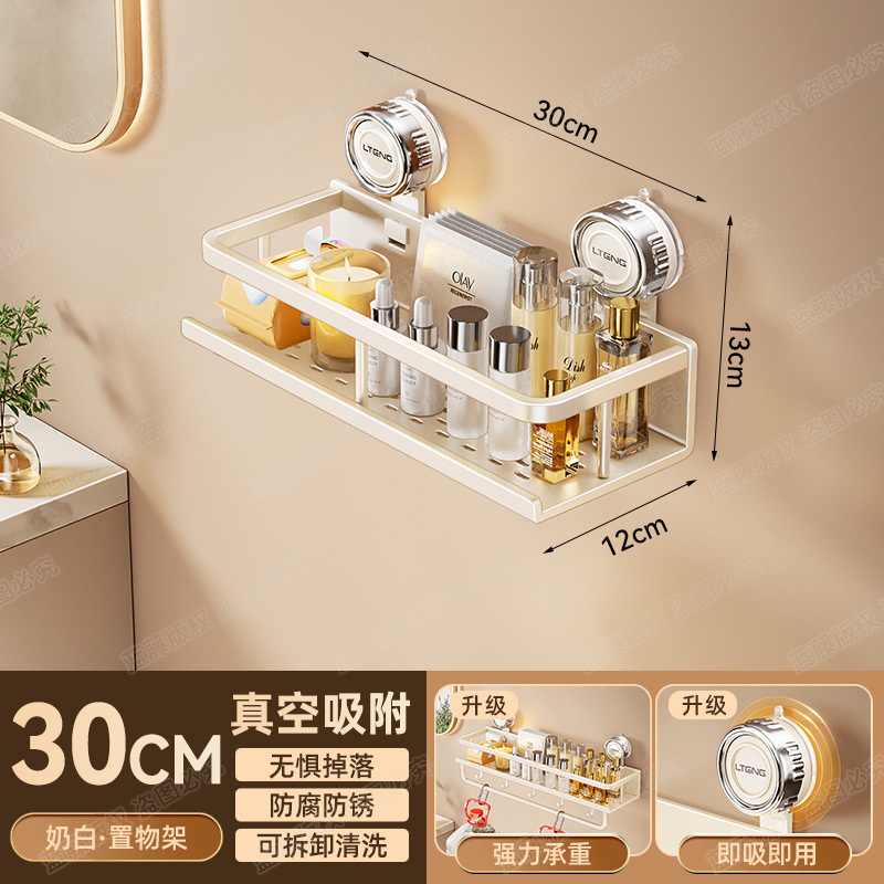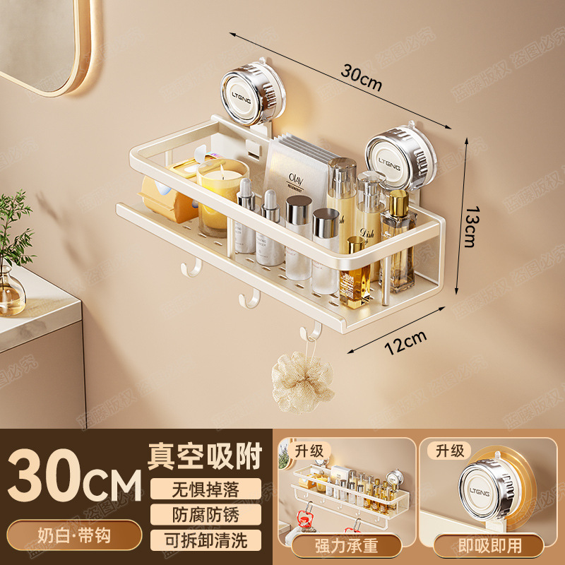 • 유백색 흡착컵 수납선반(후크와 막대 포함 30CM)