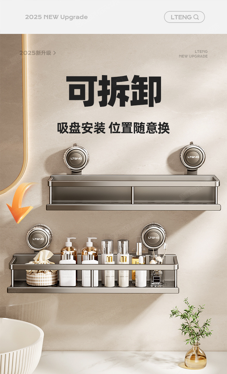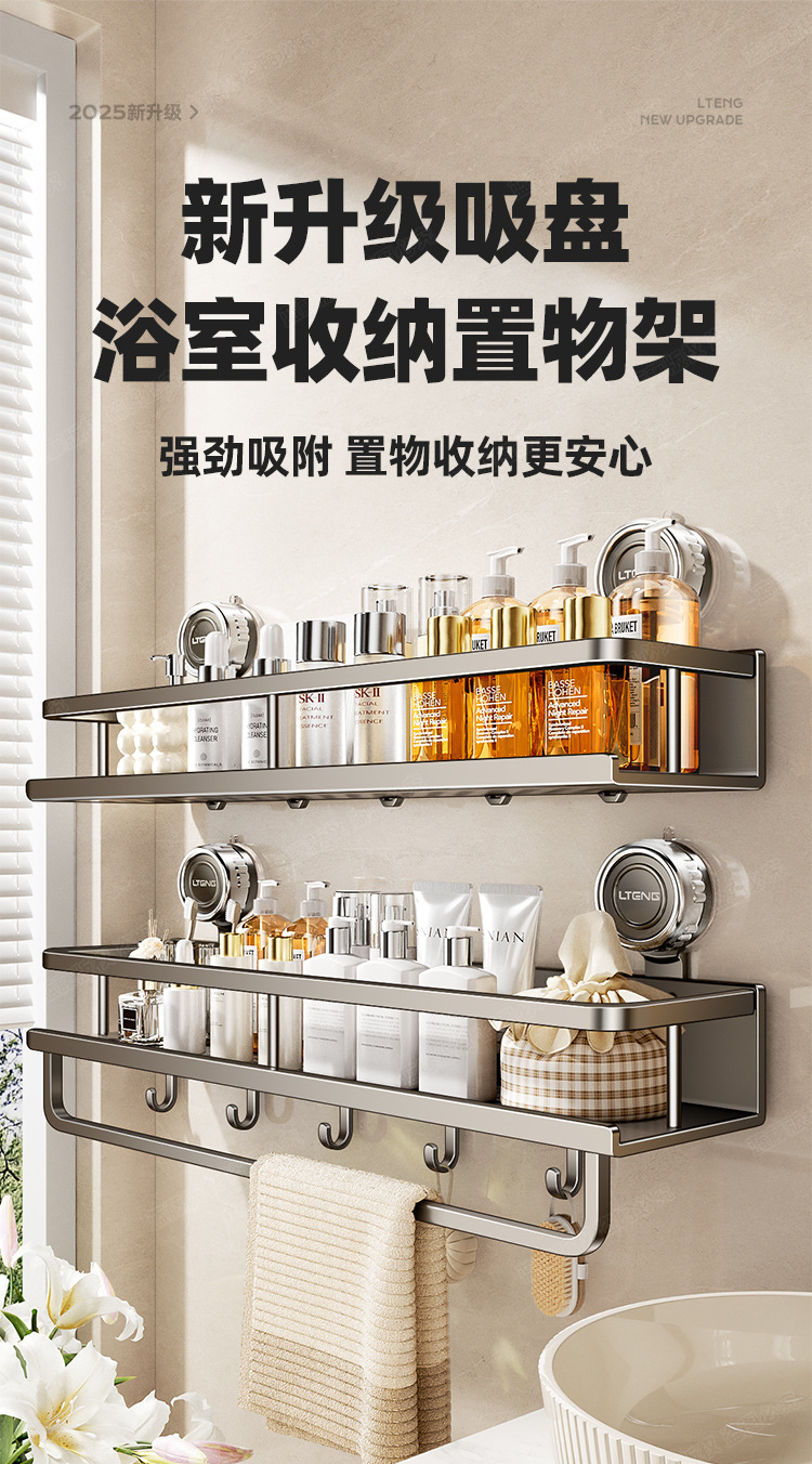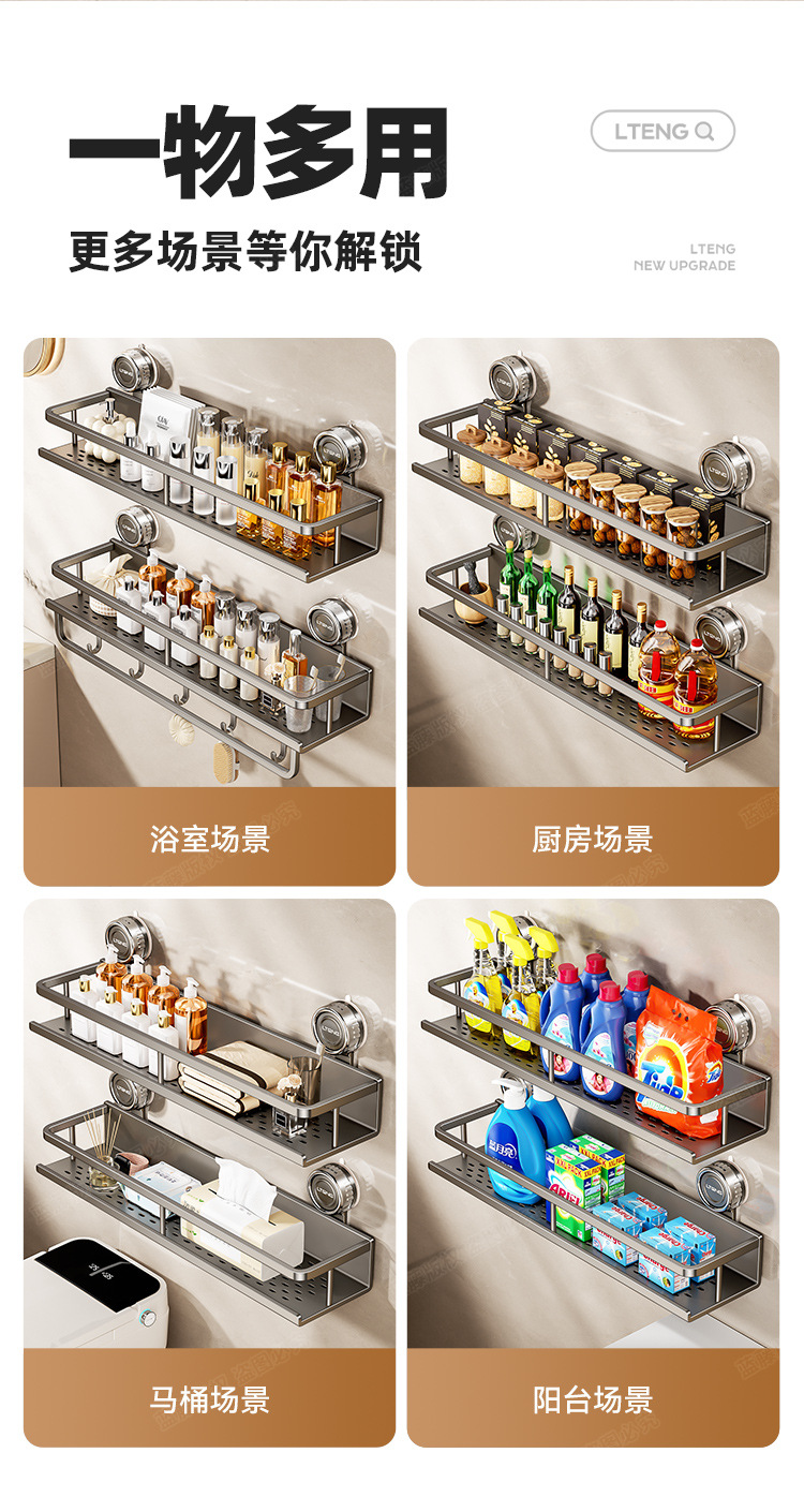 스페이스 알루미늄 욕실 흡입 컵 스토리지 랙 벽걸이 형 펀치없는 욕실 수건 랙 세면대 다기능 스토리지스토어 가기