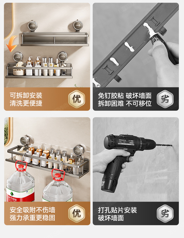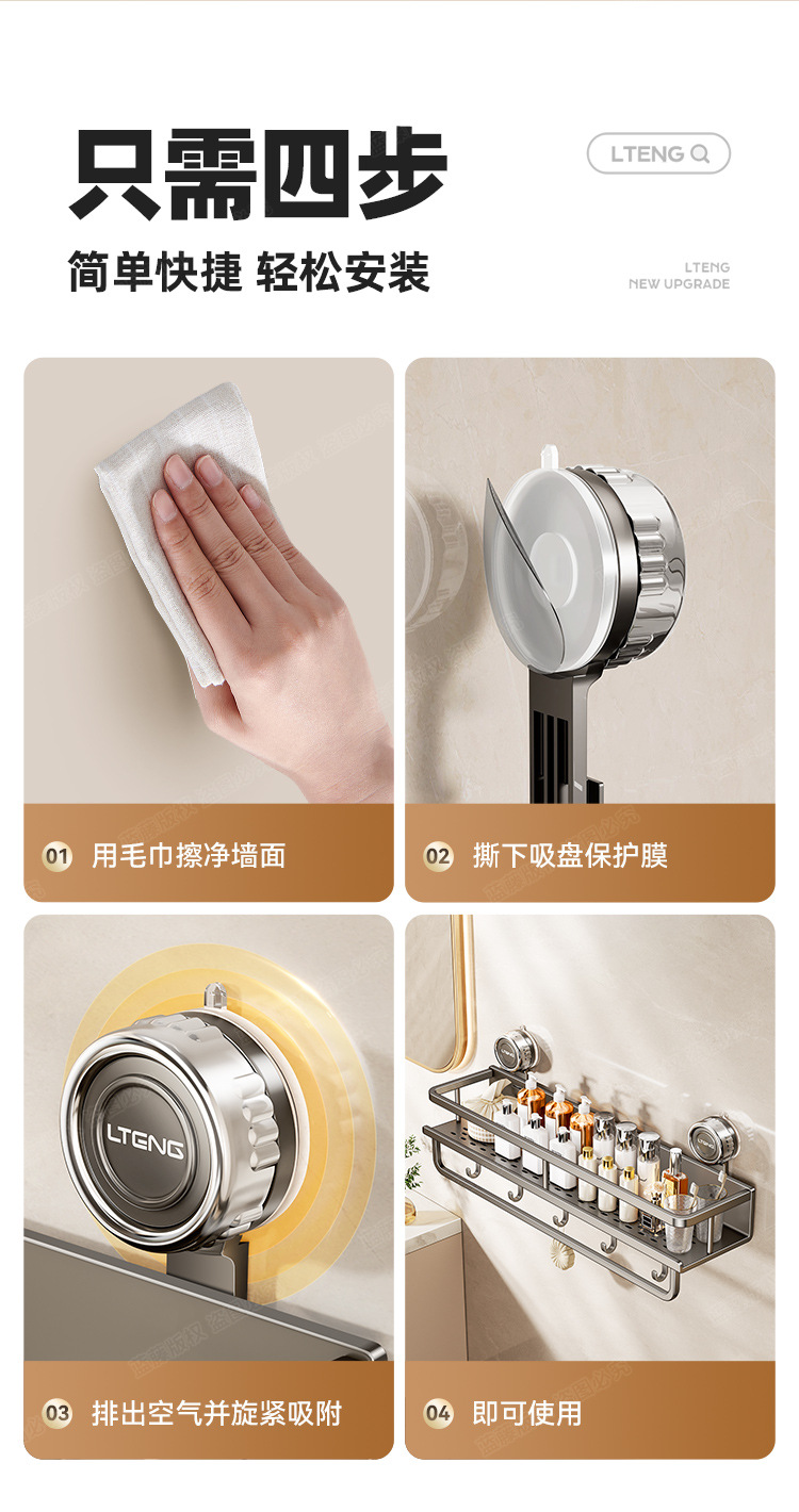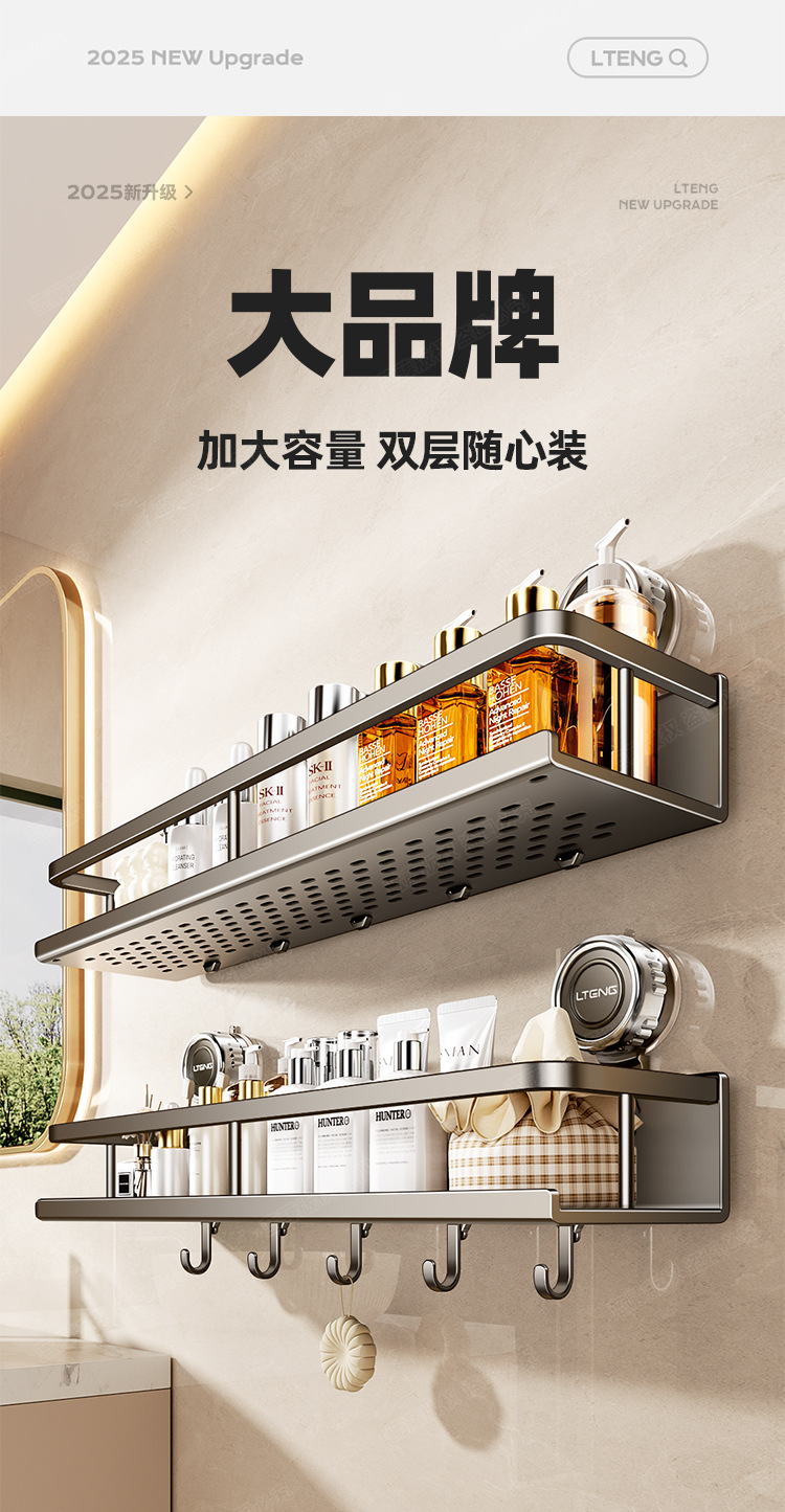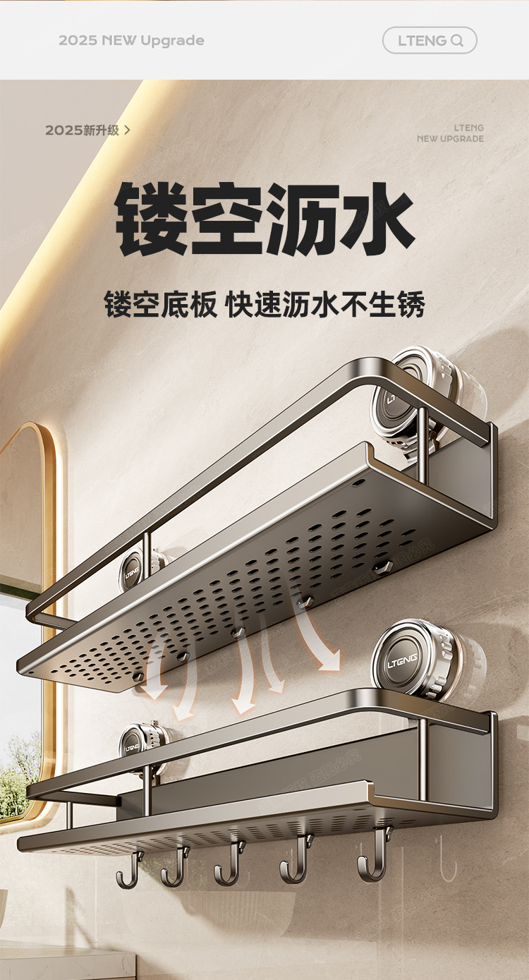 스페이스 알루미늄 욕실 흡입 컵 스토리지 랙 벽걸이 형 펀치없는 욕실 수건 랙 세면대 다기능 스토리지스토어 가기