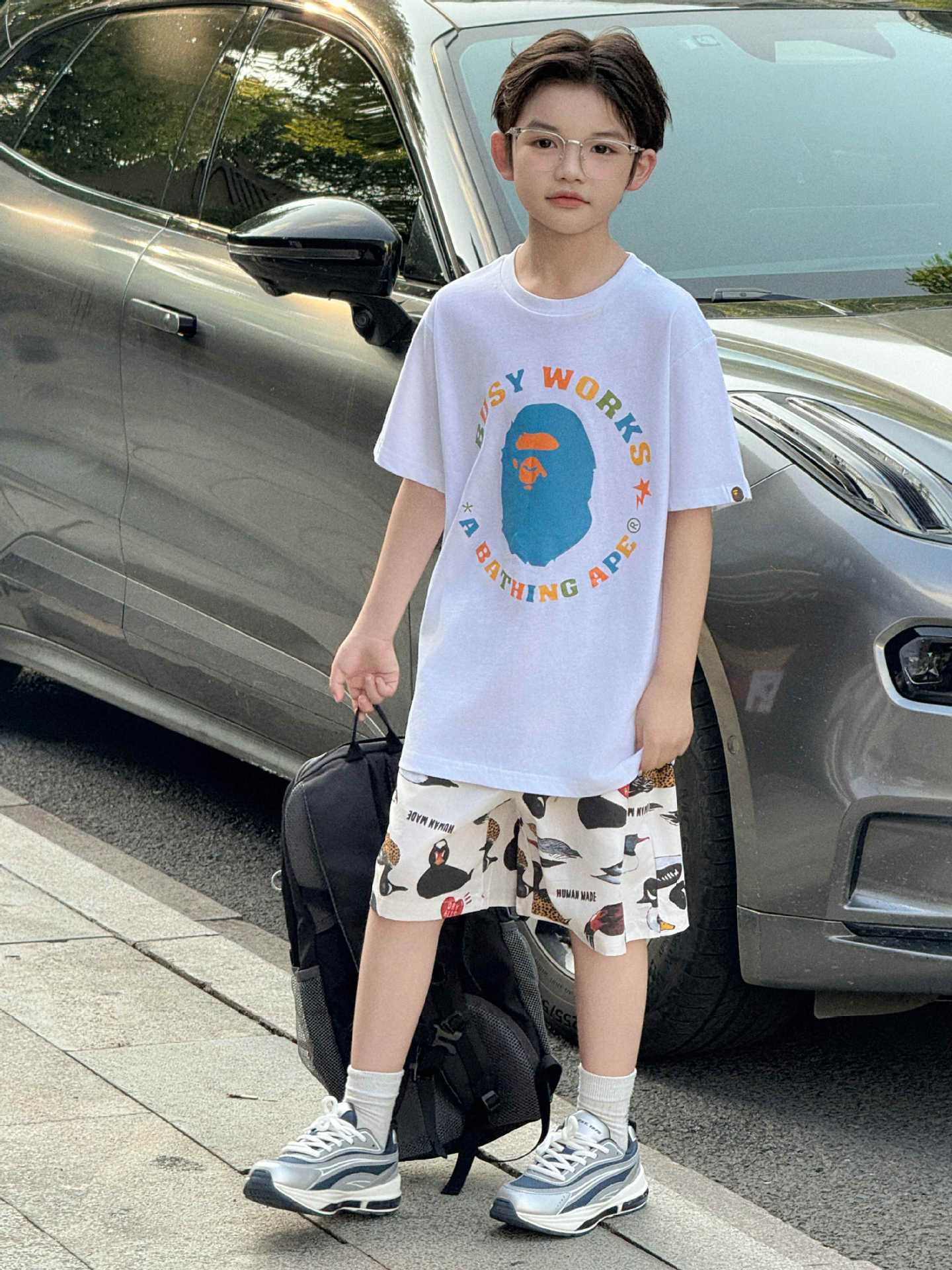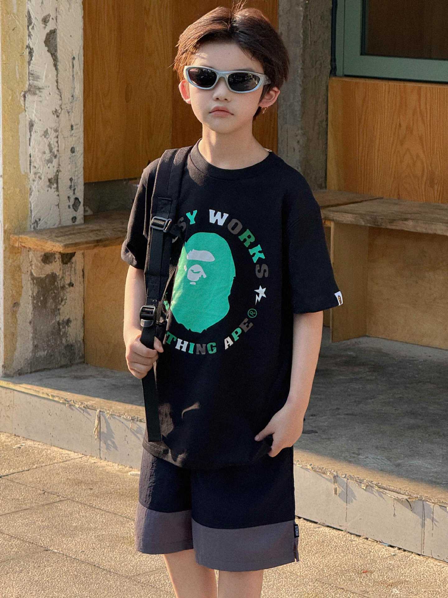 25SS 콘트라스트 컬러 원맨 레터 컬러 프린트 코튼 반팔 티셔츠 3색 110-165