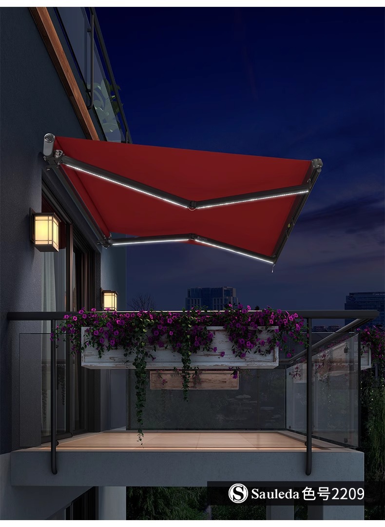 태양 차양 개폐식 차양 서쪽 태양 방지 전기 발코니 차양 접이식 차양 알루미늄 합금 차양 개폐식