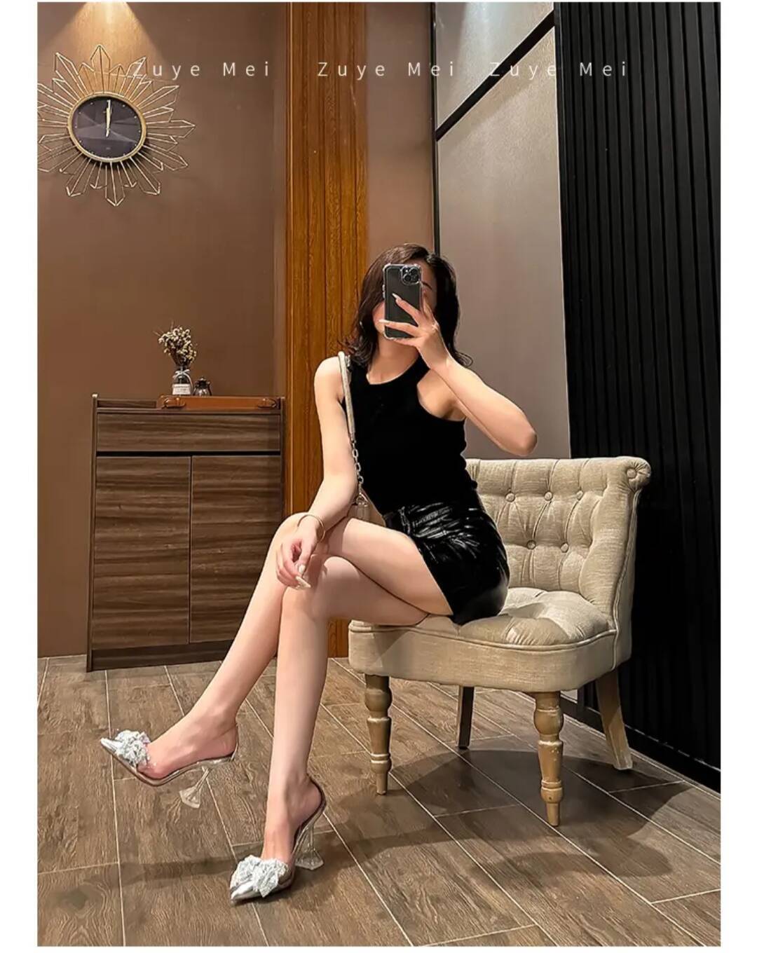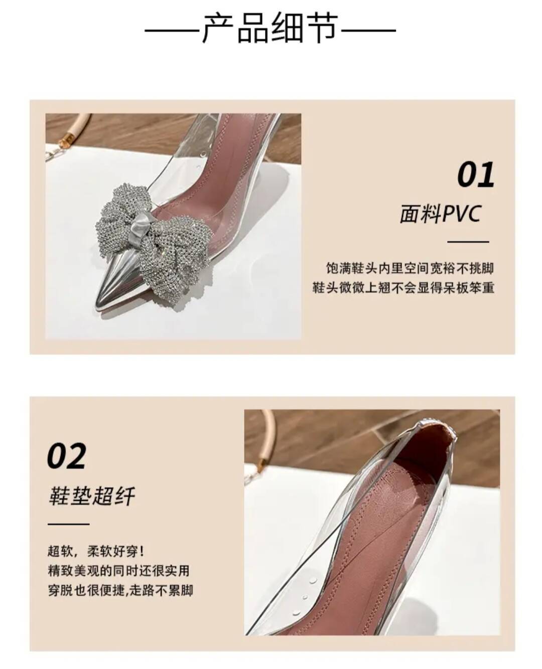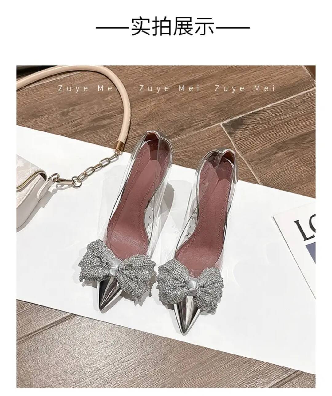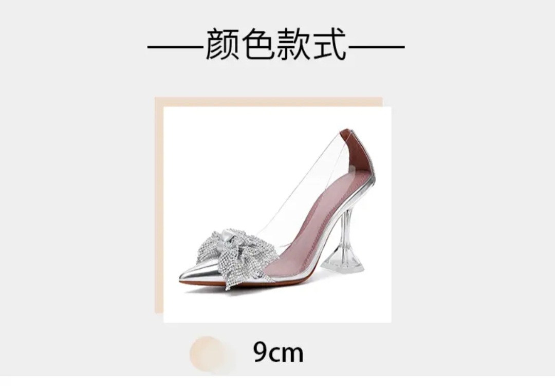2025 봄과 가을 새로운 요정 스타일 보우 투명 하이힐 여성 크리스탈 와인 컵 힐 뾰족한 라인 석 싱글 신발스토어 가기