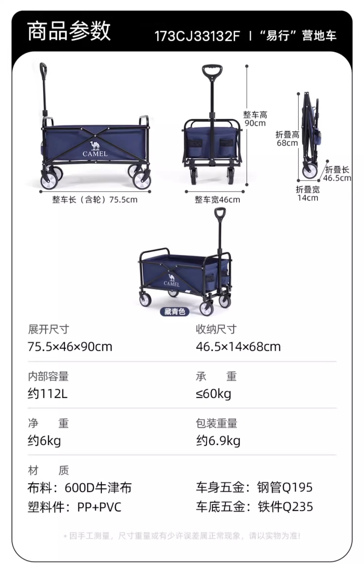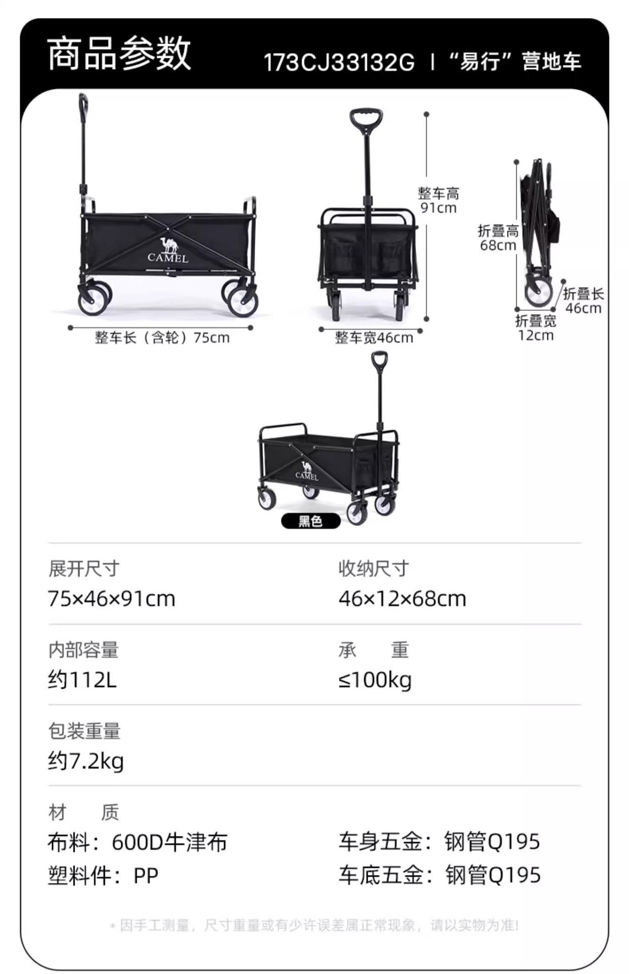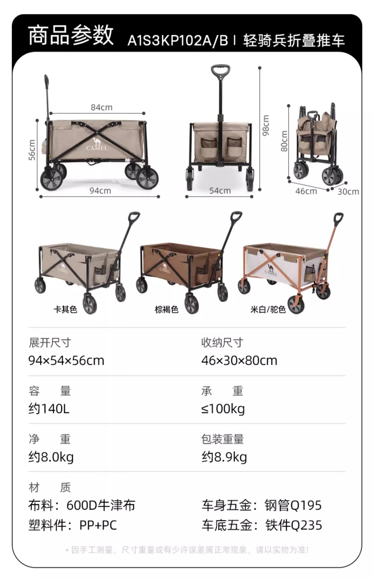 • [기병대 확대 모델] 실제 용량 비적재 175L-tan, 확대 타이어 + 강화 올스틸 프레임, 저소음 범용 휠, 174BJ03655