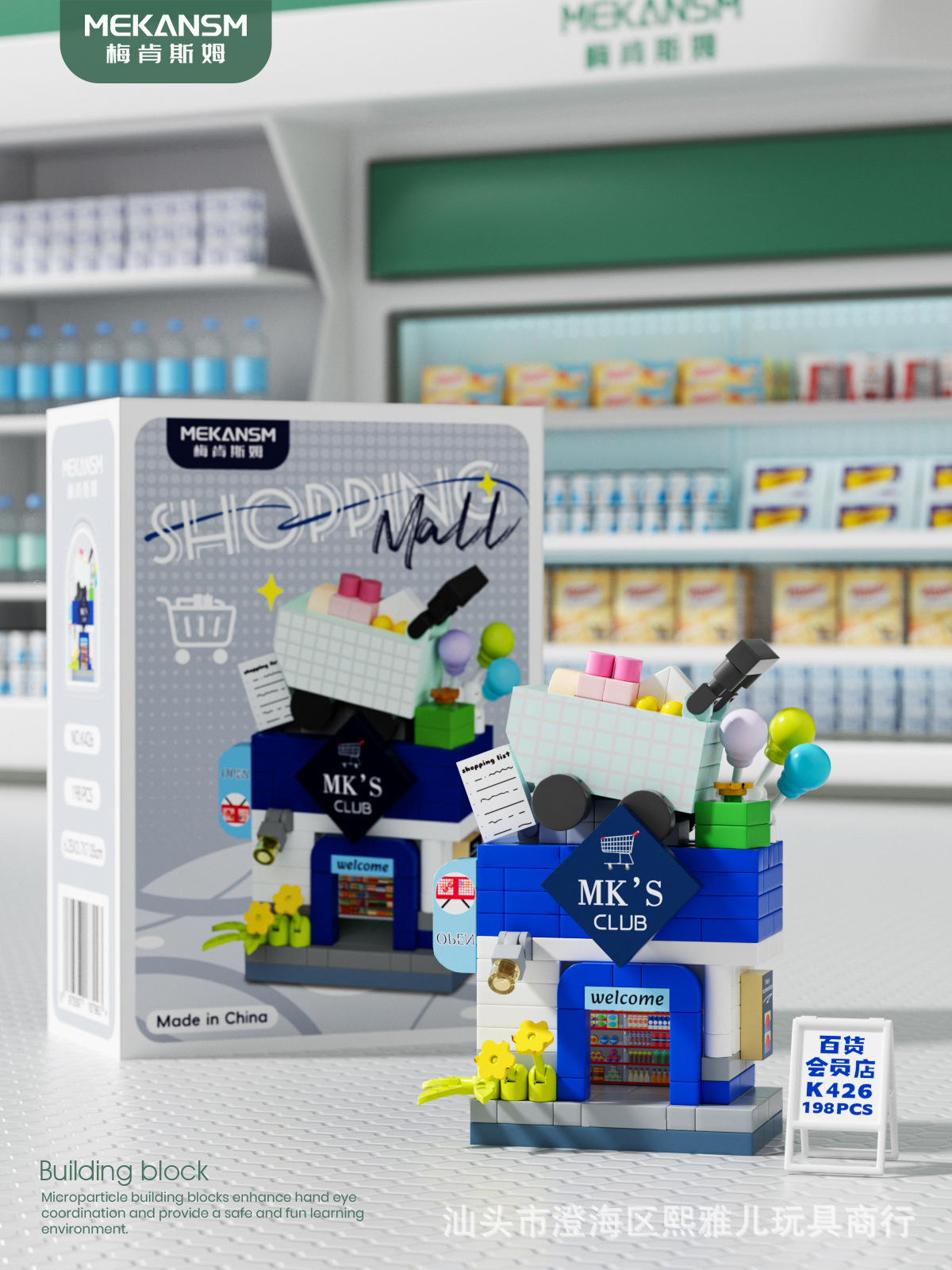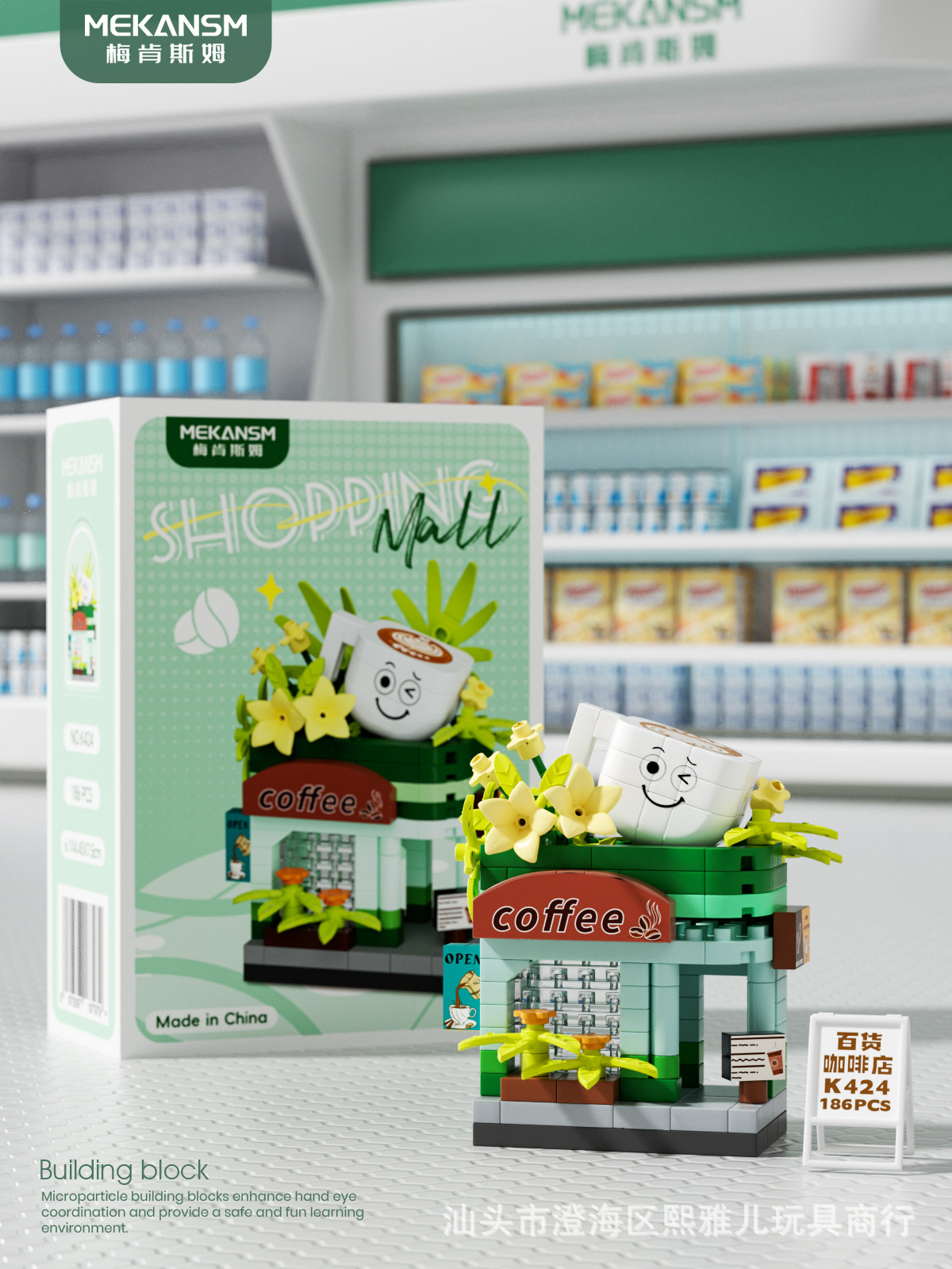 메이켄스 스노우 아이스크림 판매 카트 트롤리 마이크로 입자 빌딩 블록 어린이 교육 스트리트 뷰 조립 장난감스토어 가기
