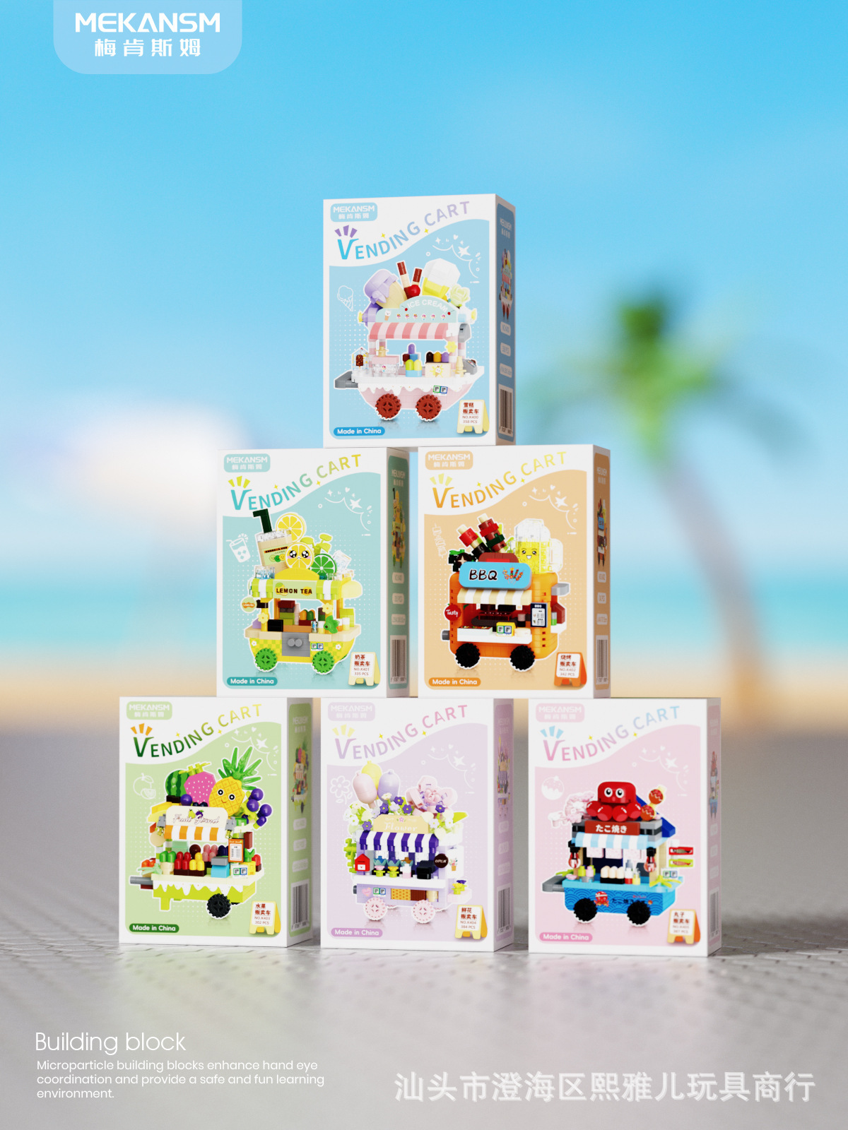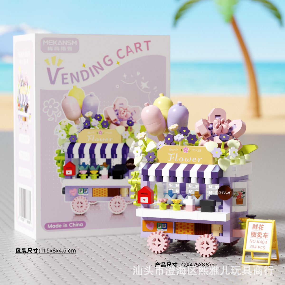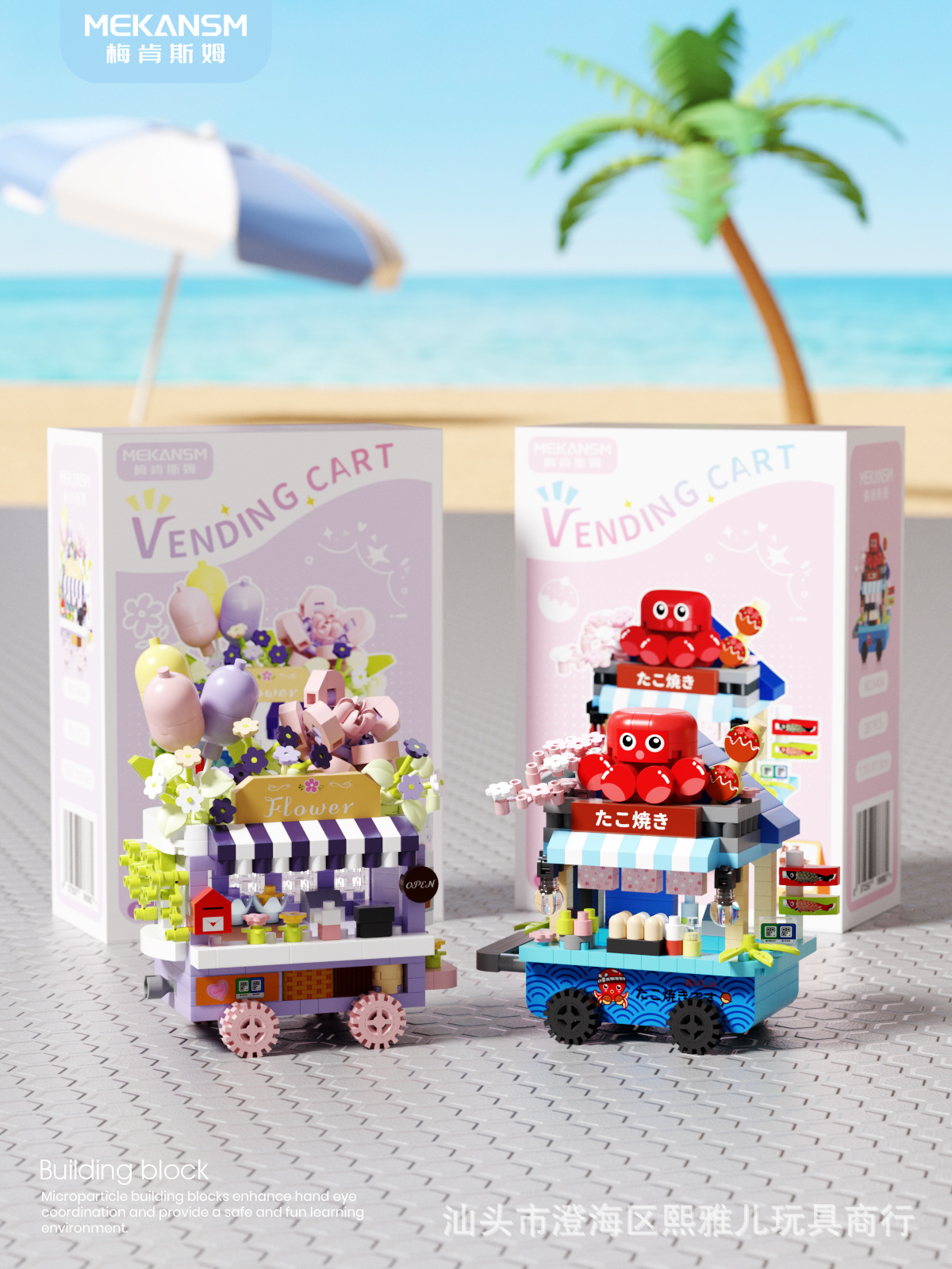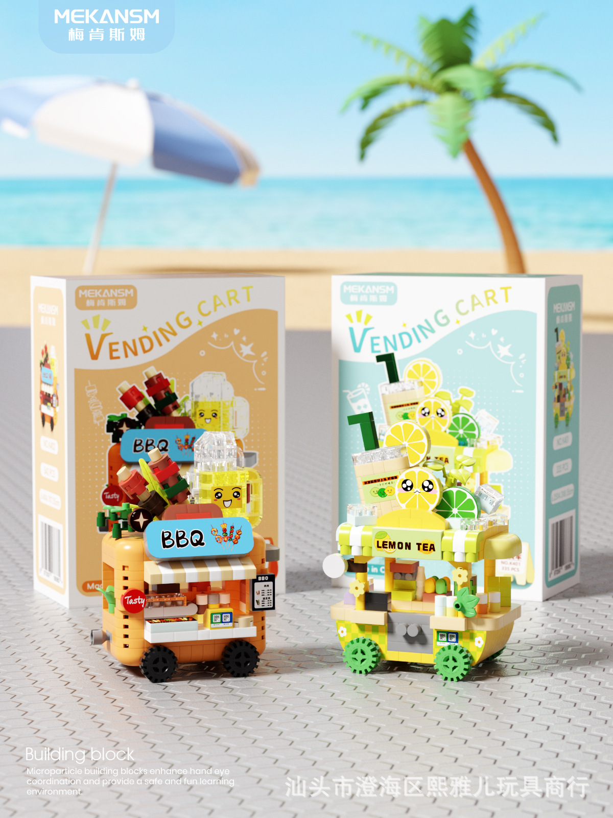메이켄스 스노우 아이스크림 판매 카트 트롤리 마이크로 입자 빌딩 블록 어린이 교육 스트리트 뷰 조립 장난감