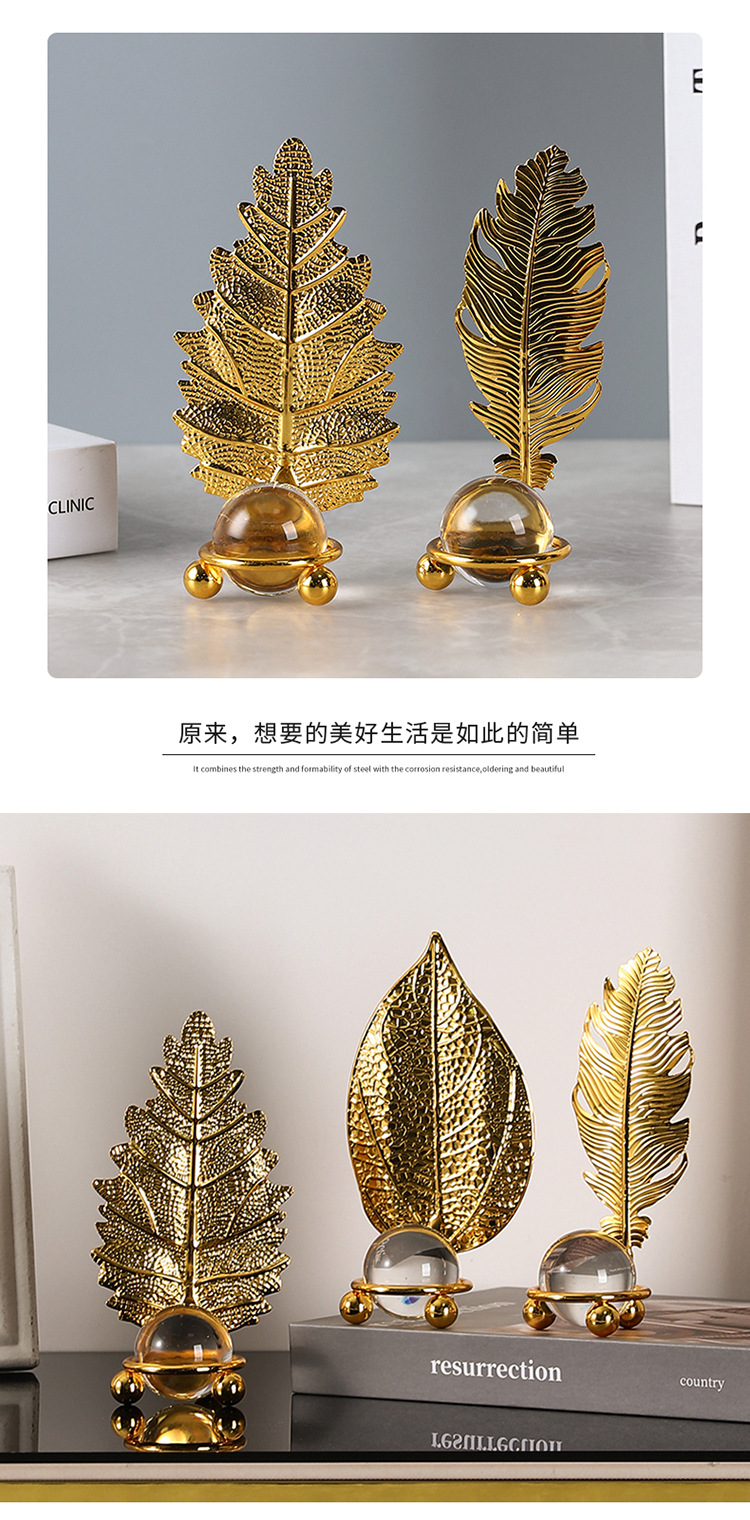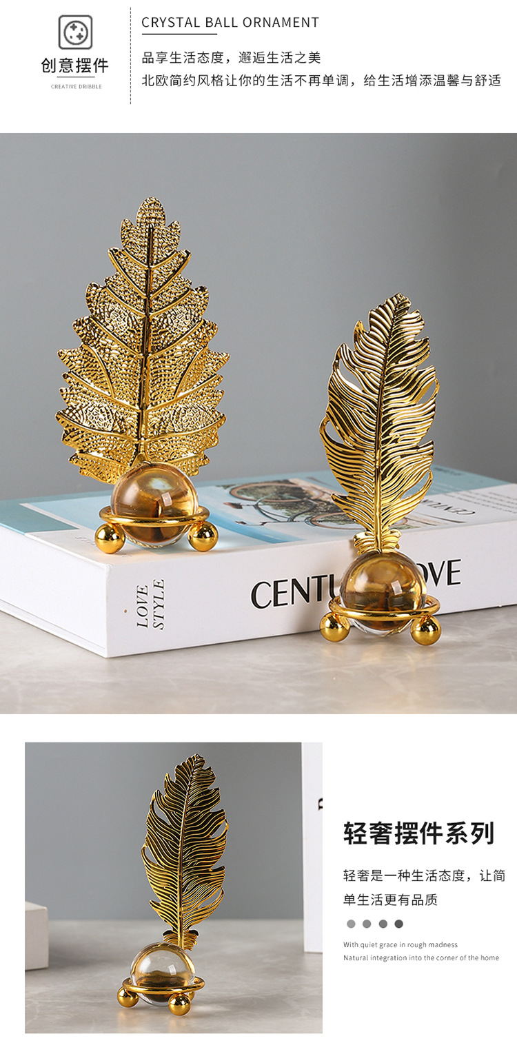 북유럽 빛 럭셔리 잎 크리스탈 공 장식품 홈 금속 추상 공예 호텔 레스토랑 예술 장식 도매스토어 가기