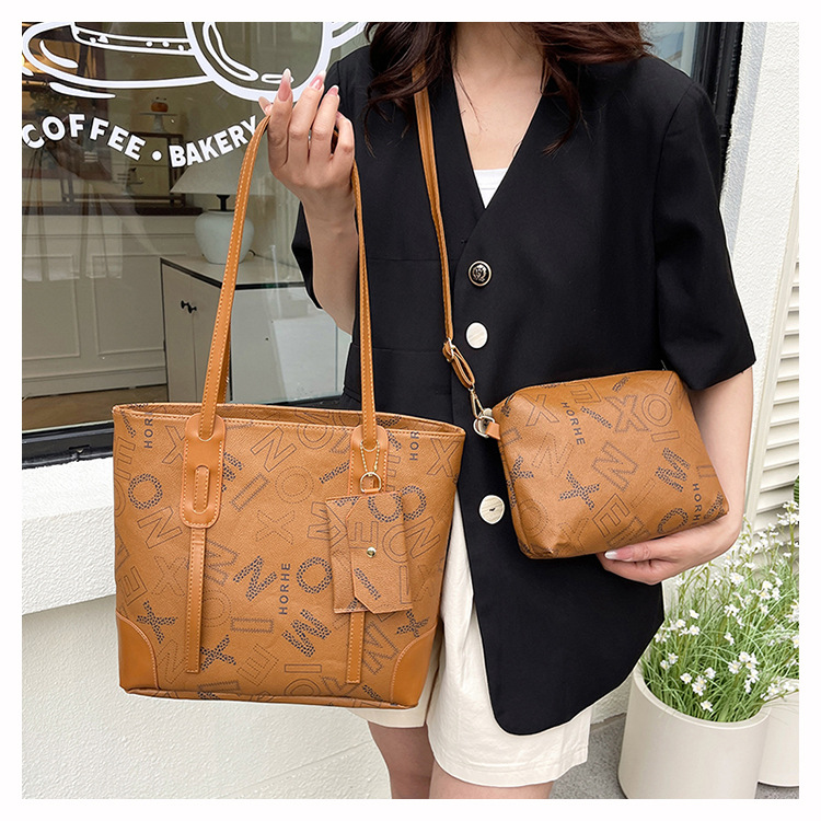 새로운 대용량 패션 복고풍 편지 3 피스 세트 2025 여름 토트 숄더 휴대용 겨드랑이 가방 여성용 가방