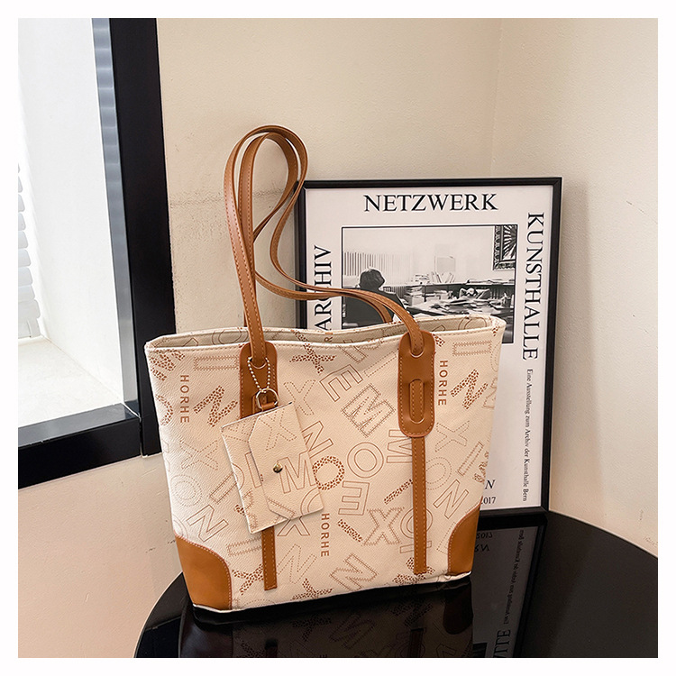 새로운 대용량 패션 복고풍 편지 3 피스 세트 2025 여름 토트 숄더 휴대용 겨드랑이 가방 여성용 가방스토어 가기