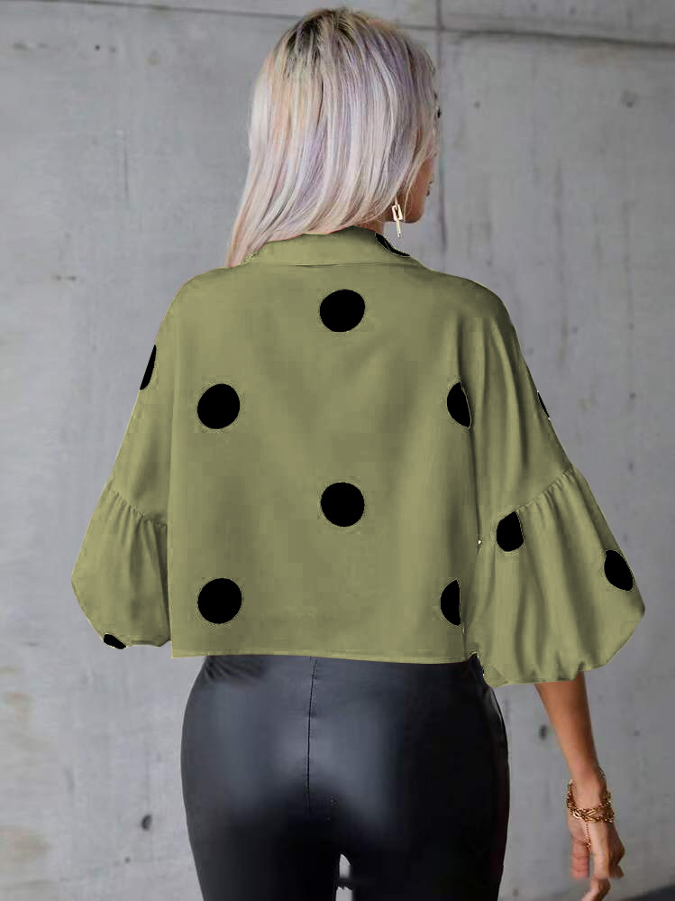 2025 국경 여성 셔츠 봄과 여름 새로운 쉬폰 웨이브 5 버블 슬리브 패션 우아한 셔츠