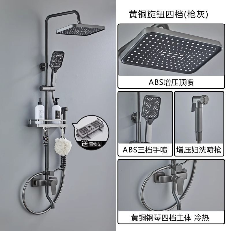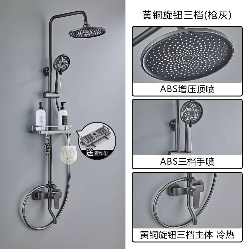 정품 샤워 헤드 세트 전체 구리 가정용 욕실 화장실 건 그레이 레인 부스터 샤워 헤드