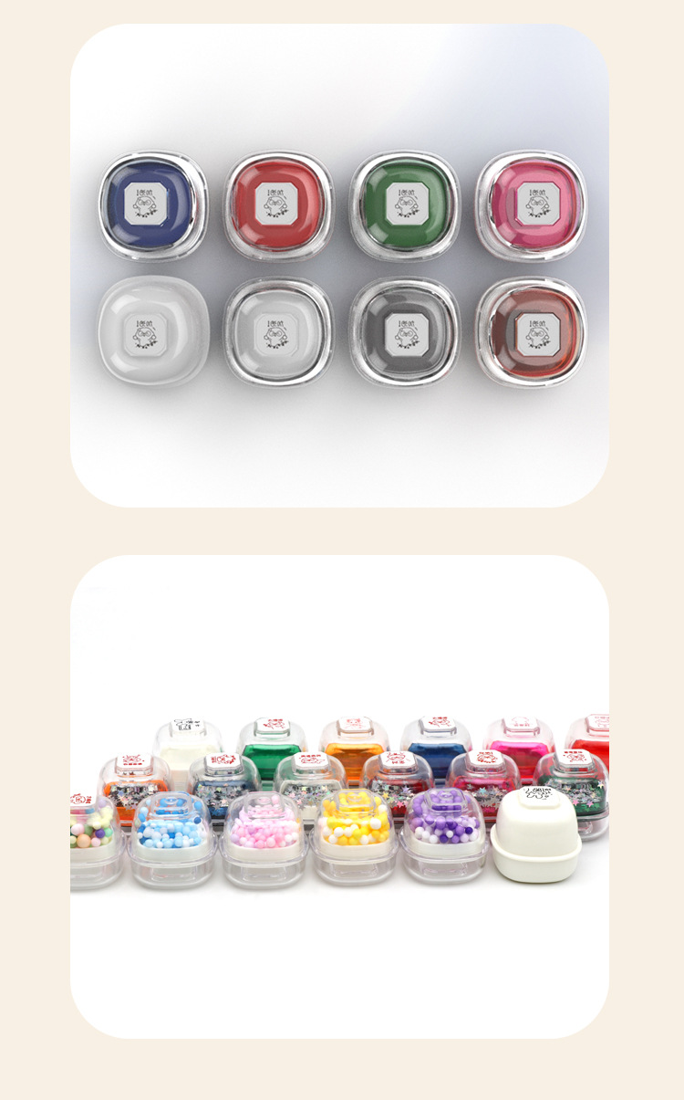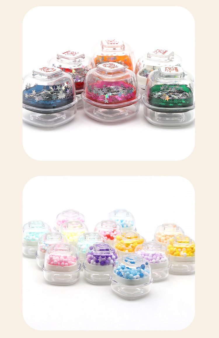 • 크림 스탬프 투명 핑크 스파클링 스타 스타일