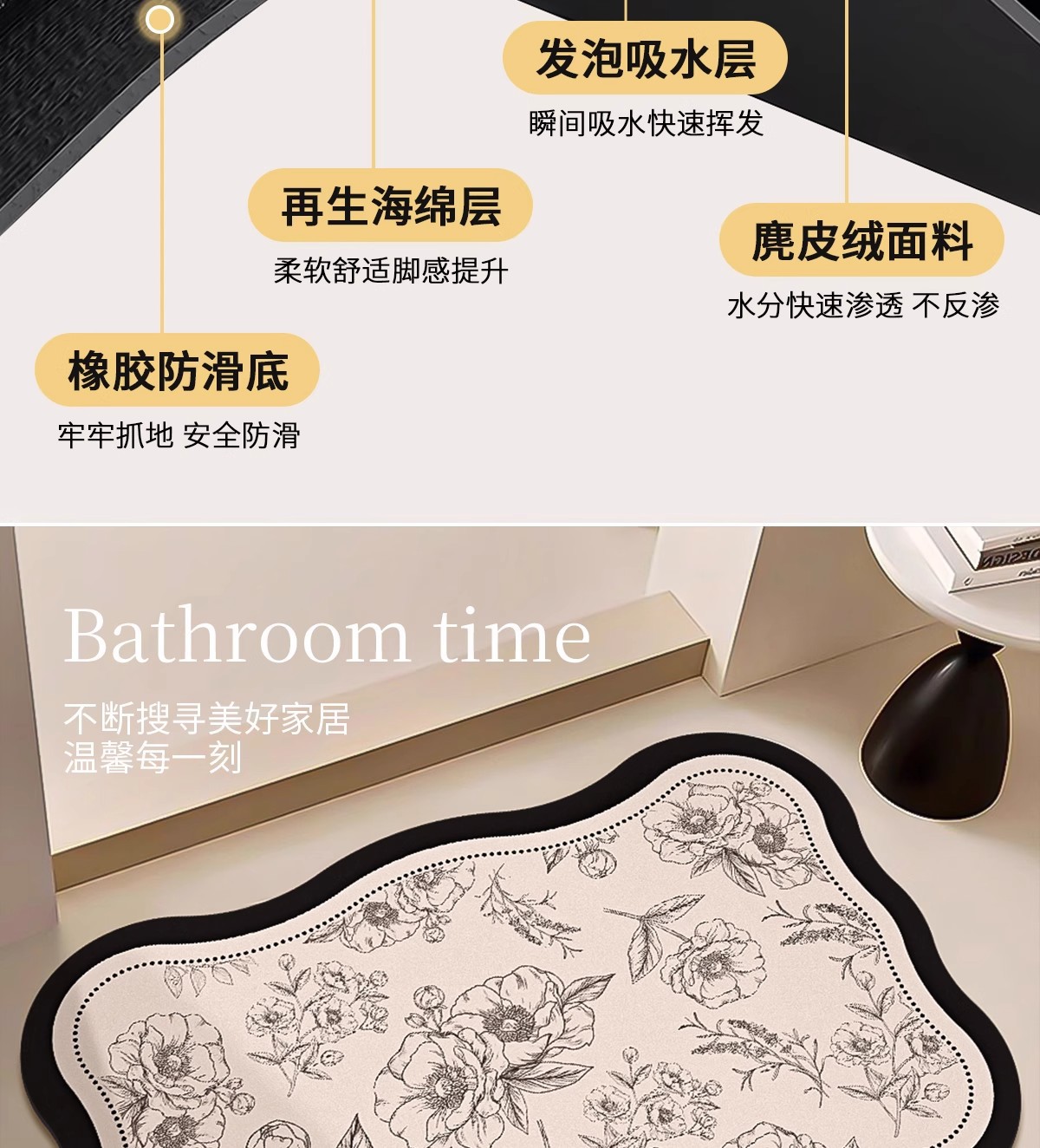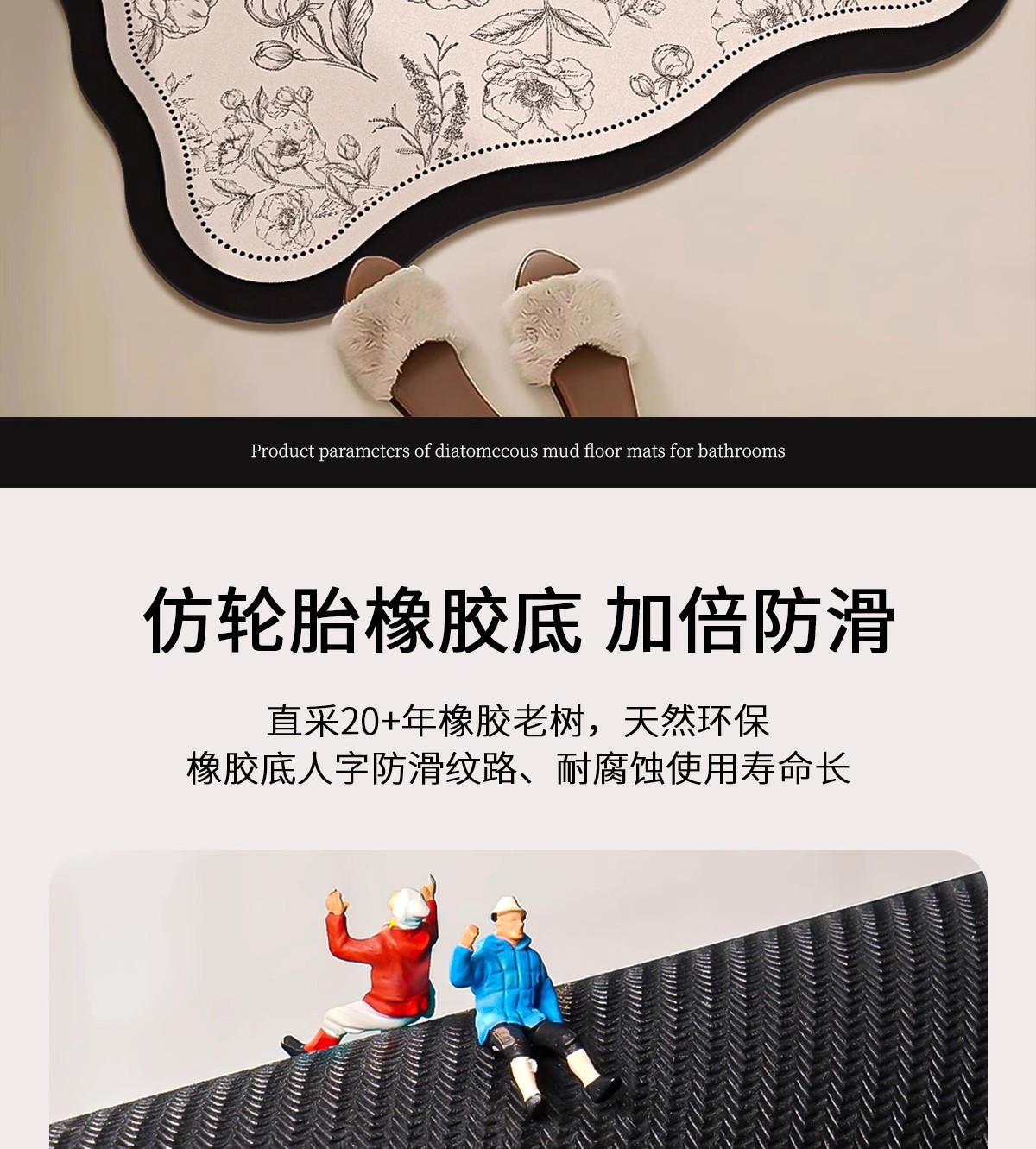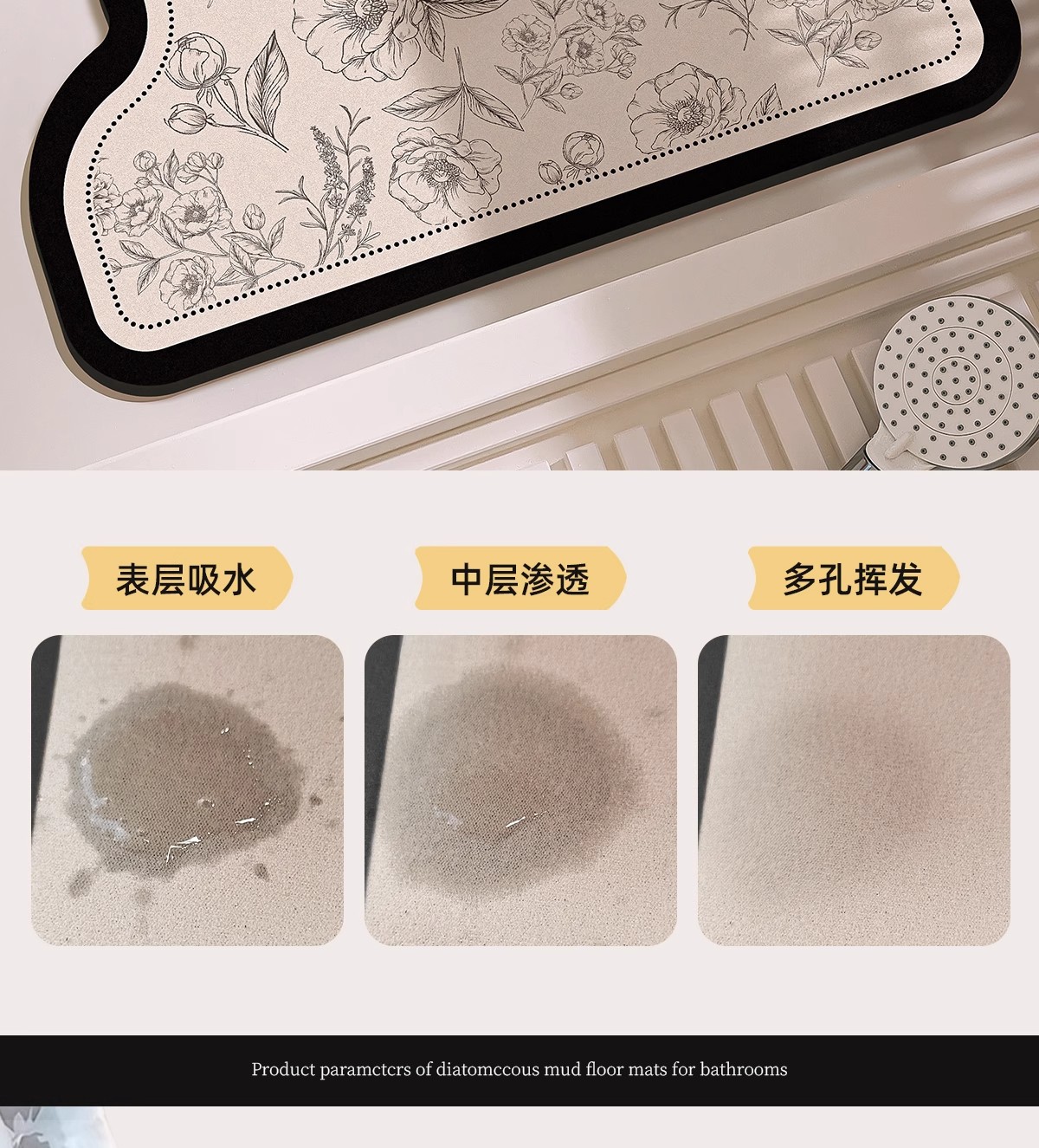 욕실 바닥 매트, 욕실 미끄럼 방지 흡수성 화장실 강력한 출입구 욕실 규조토 진흙 속건성 발 매트 카펫 욕실