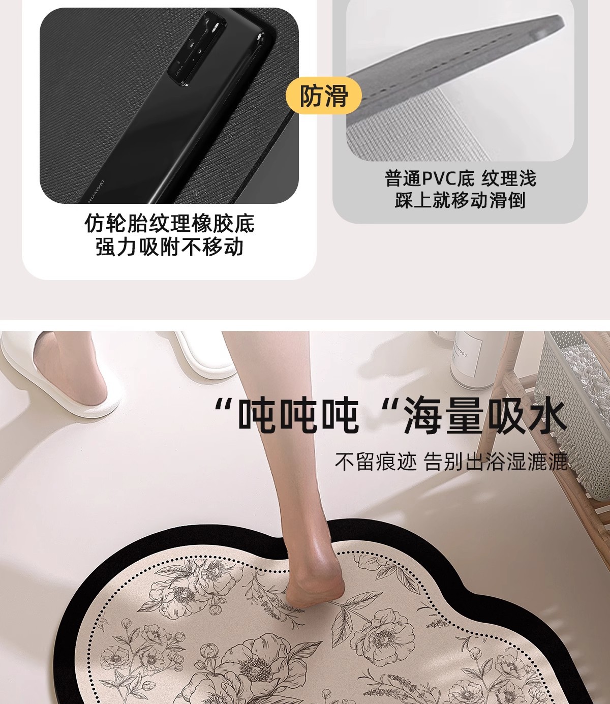 욕실 바닥 매트, 욕실 미끄럼 방지 흡수성 화장실 강력한 출입구 욕실 규조토 진흙 속건성 발 매트 카펫 욕실스토어 가기
