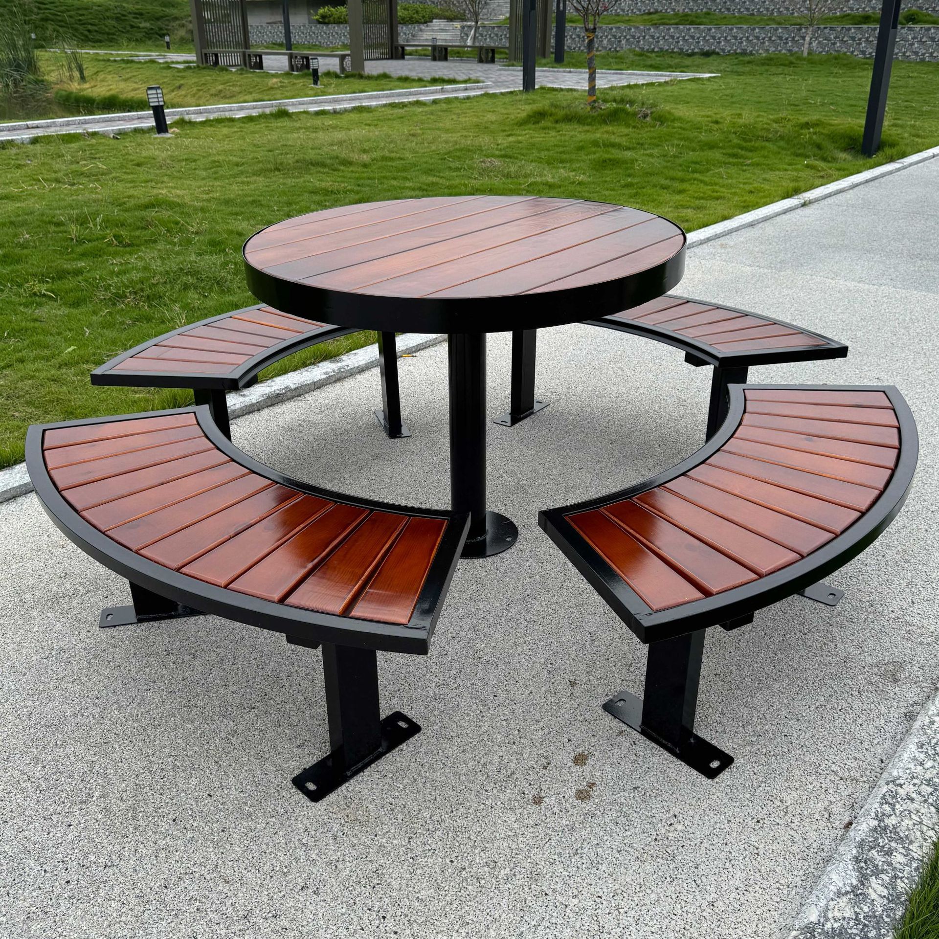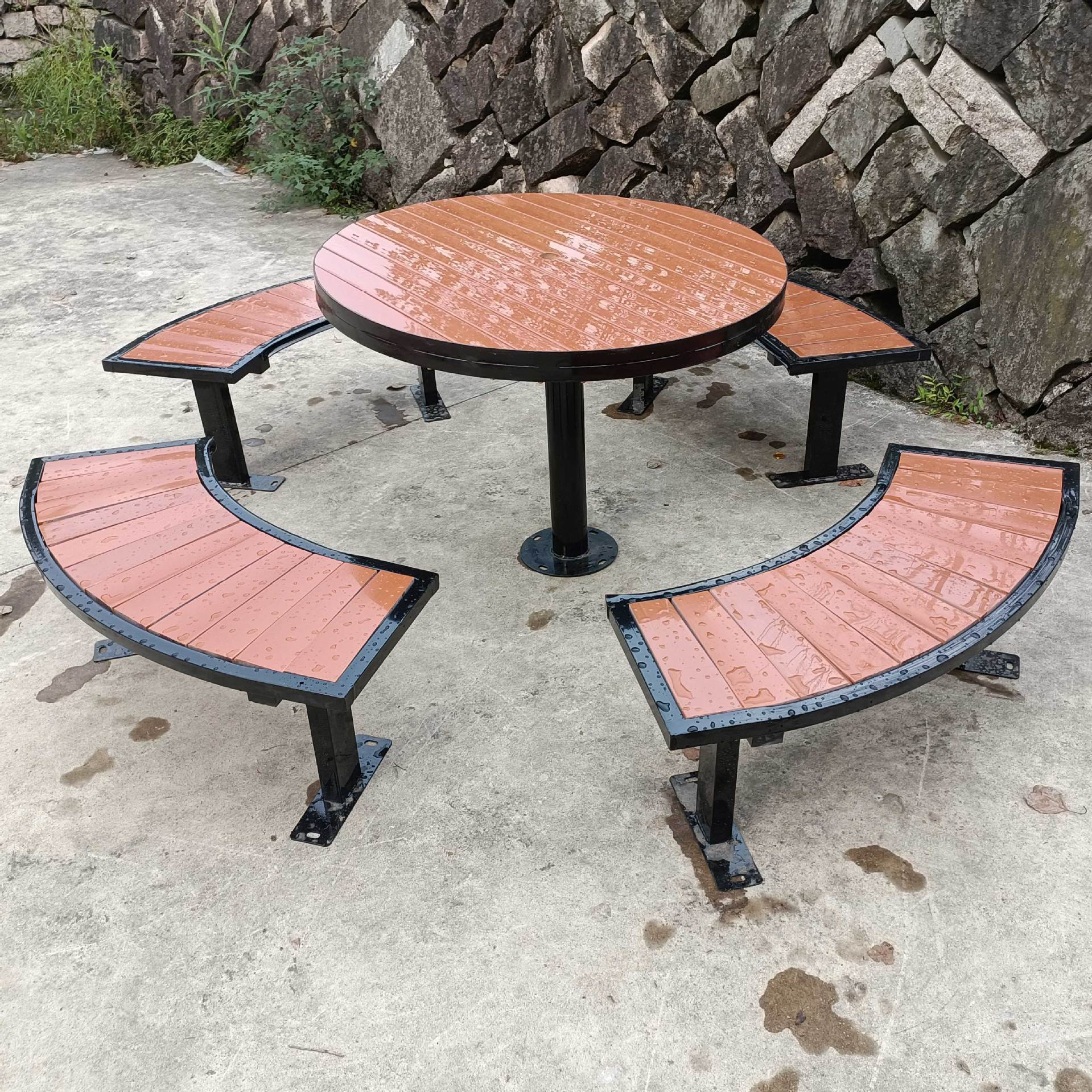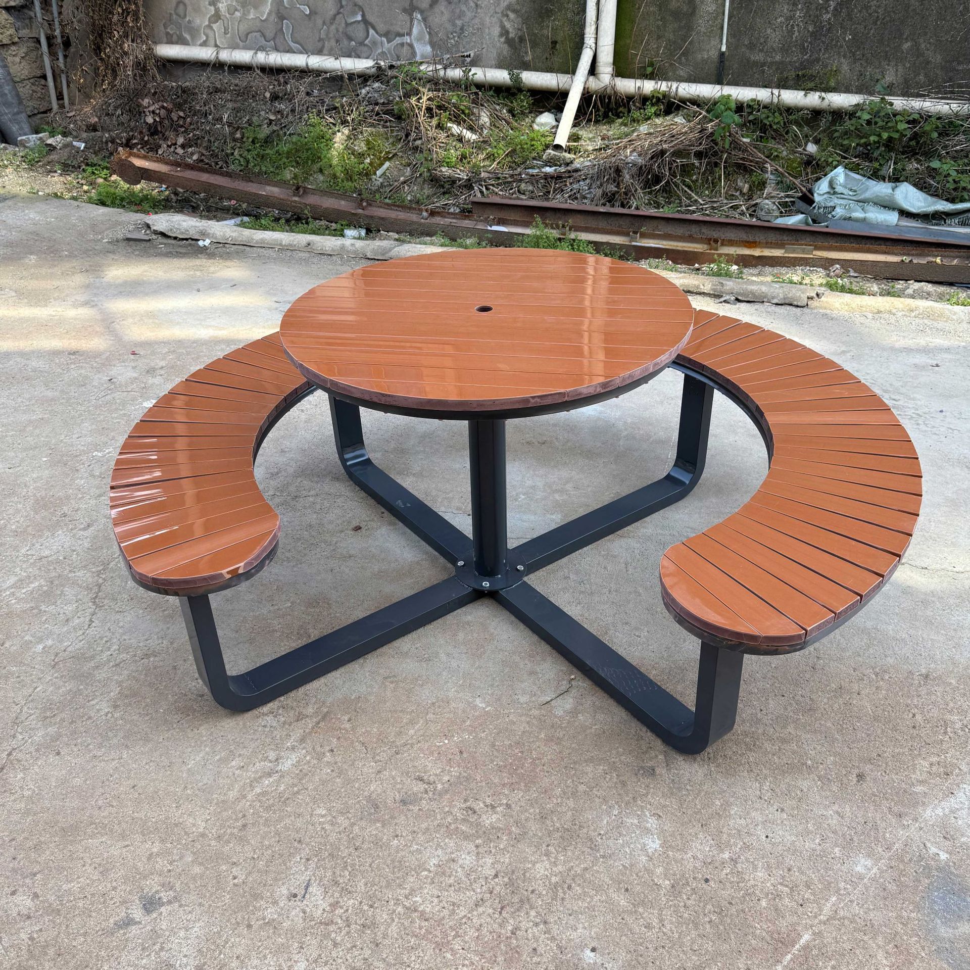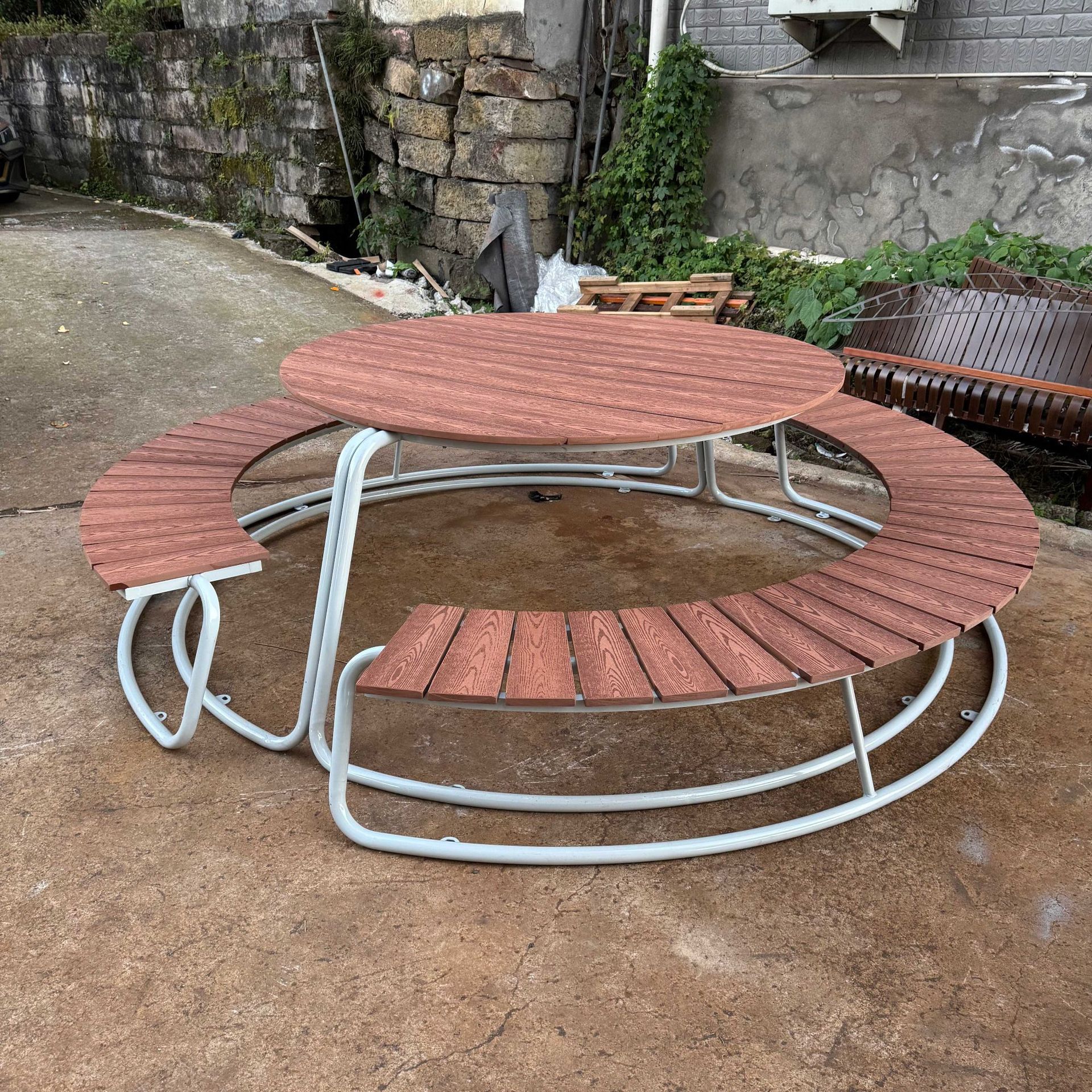 야외 일체형 테이블과 의자, 간단한 야외 빌라 안뜰 정원 공원 원형 테이블, 야외 플라스틱 목재 자외선 차단제 식탁과 의자
