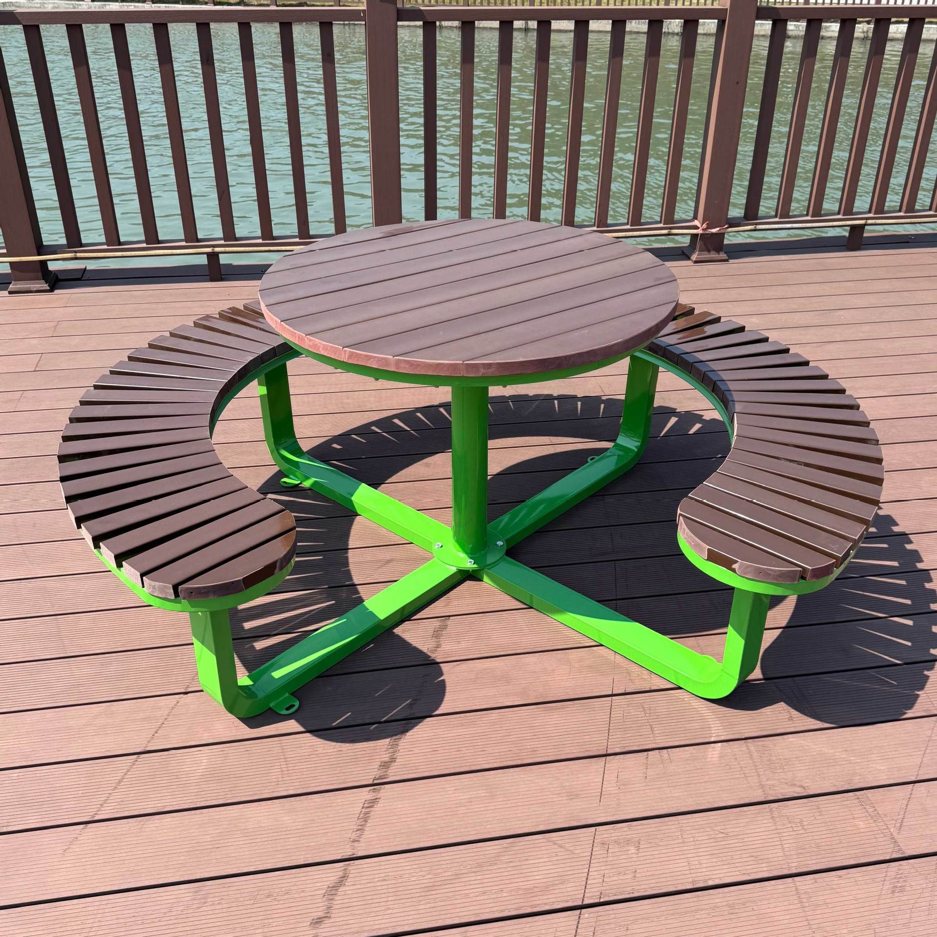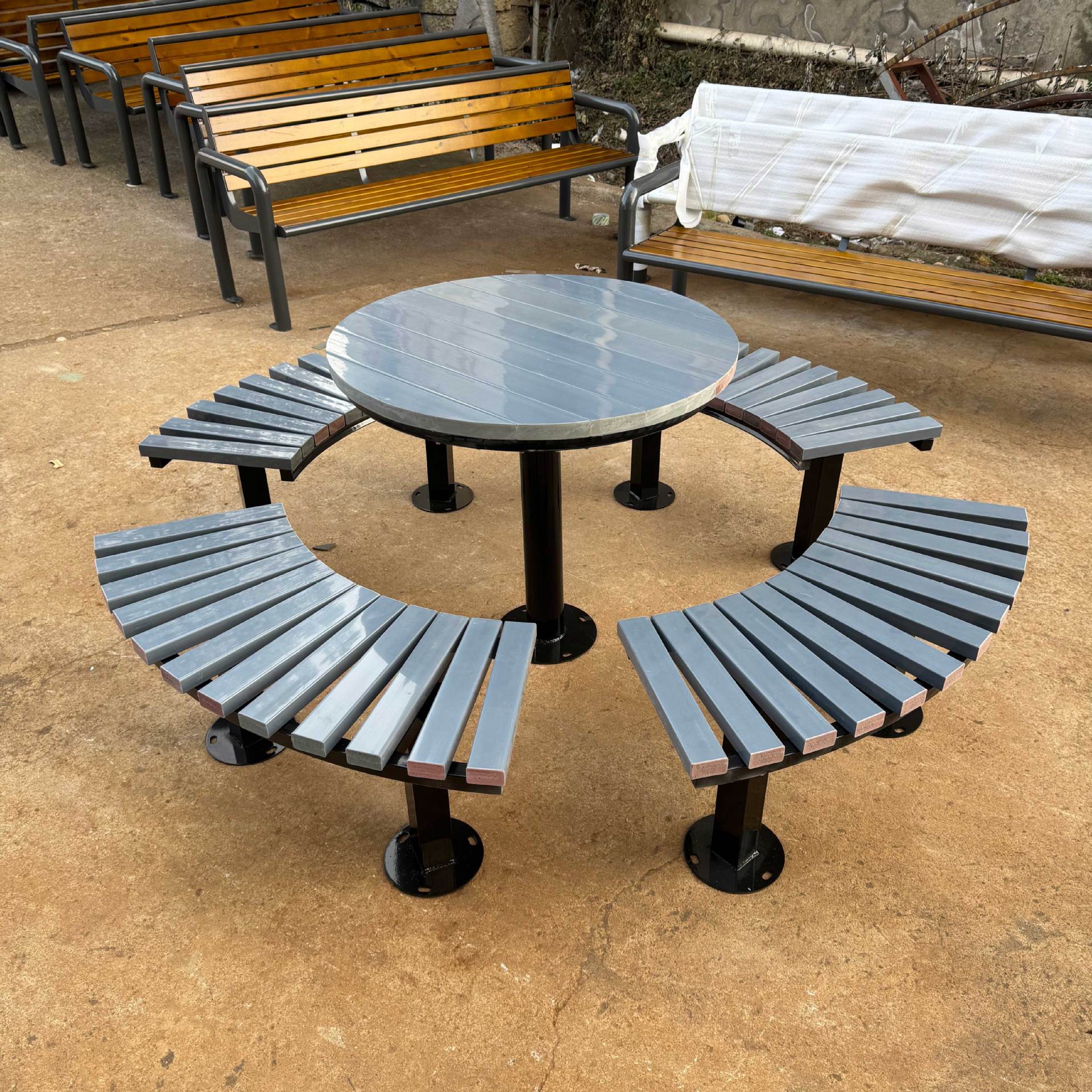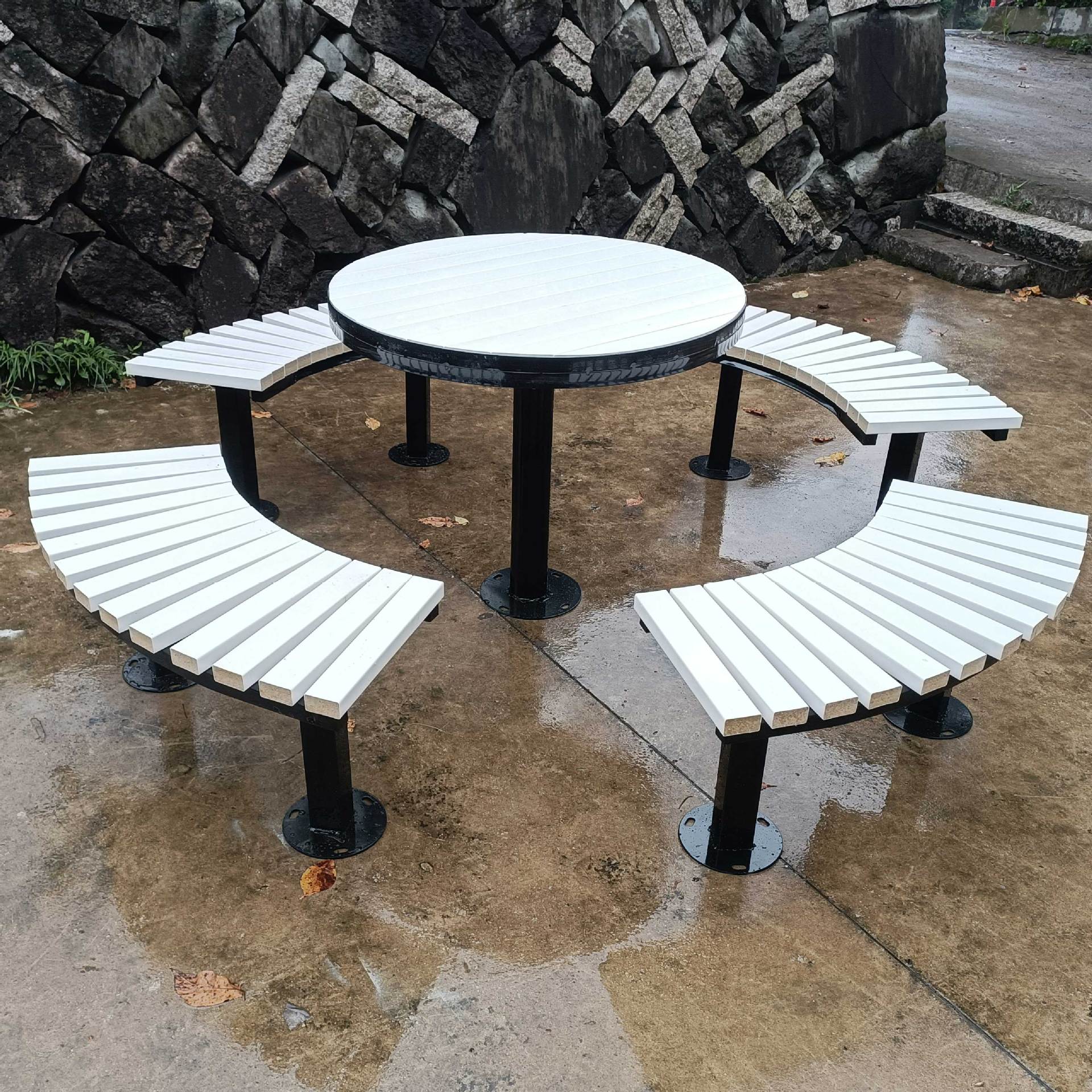 야외 일체형 테이블과 의자, 간단한 야외 빌라 안뜰 정원 공원 원형 테이블, 야외 플라스틱 목재 자외선 차단제 식탁과 의자