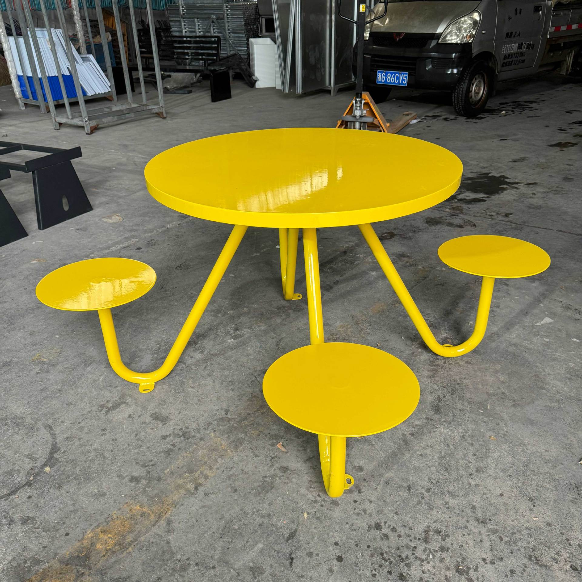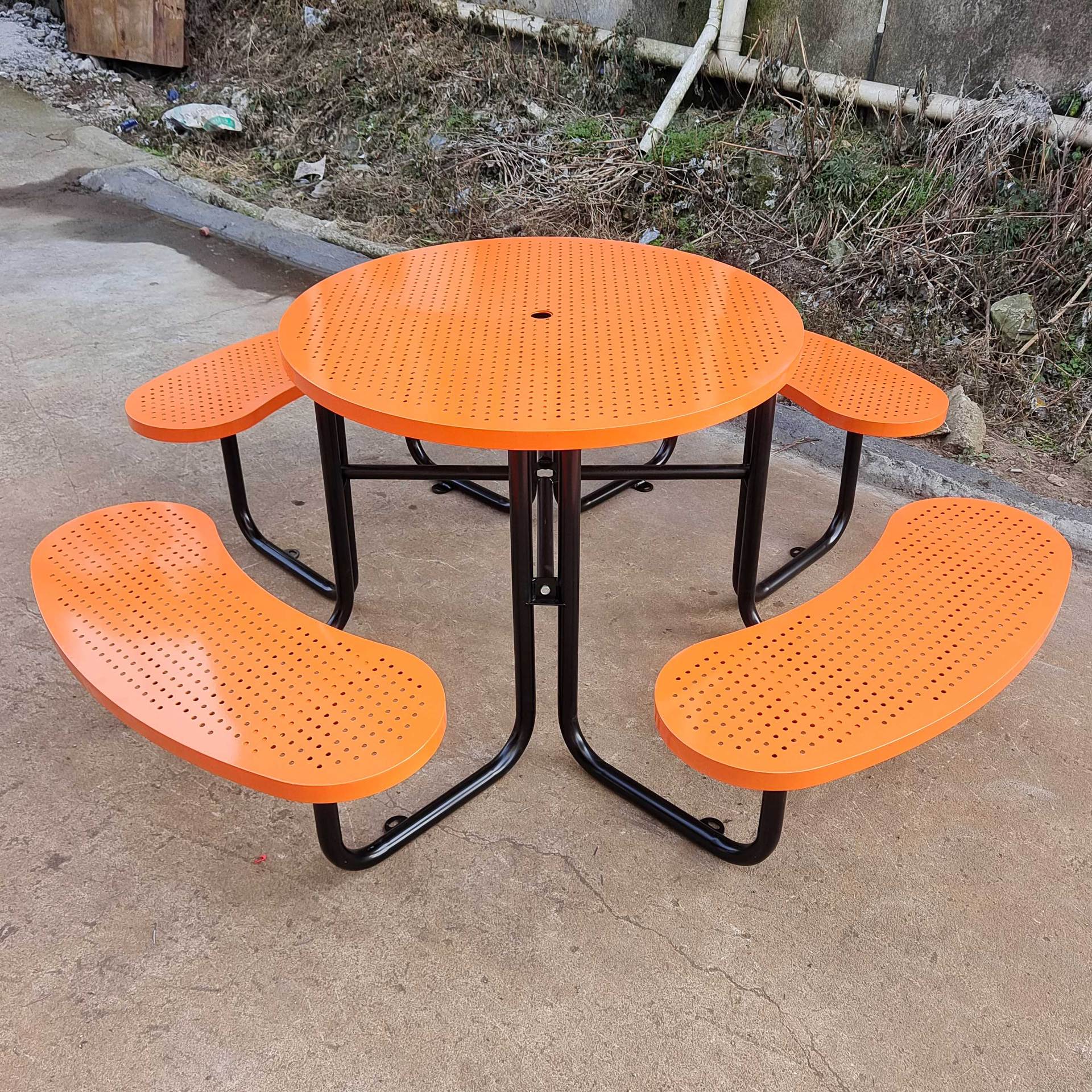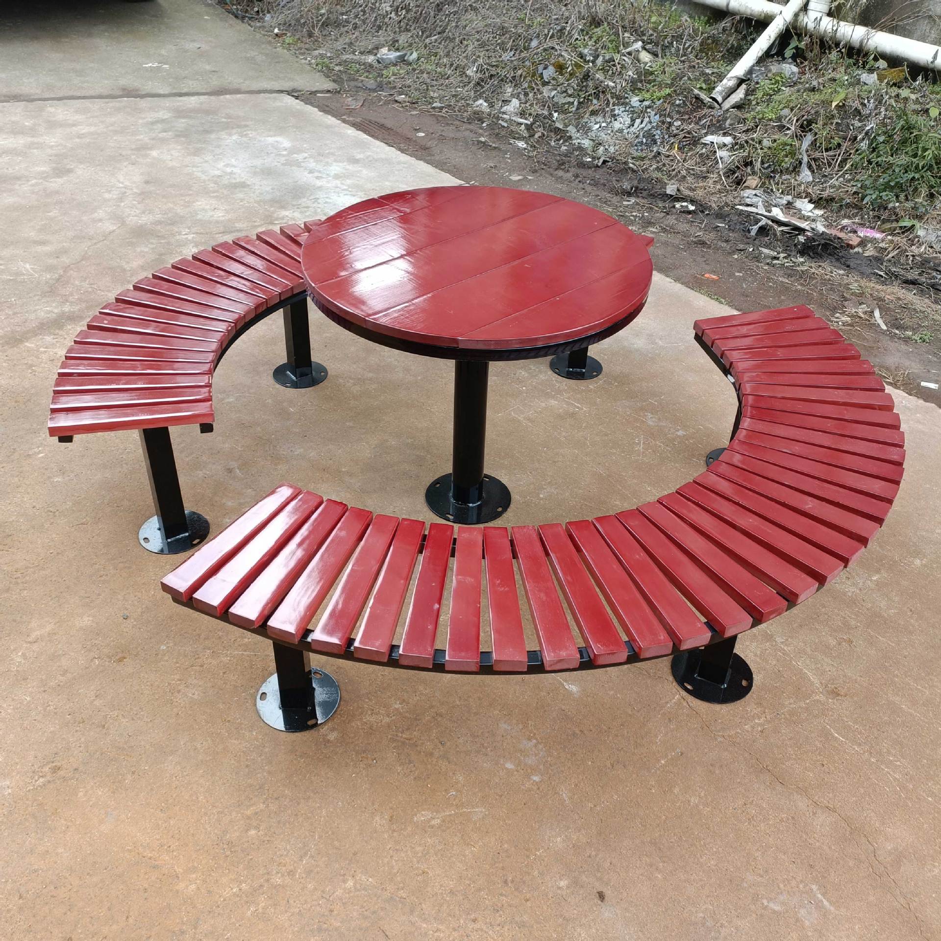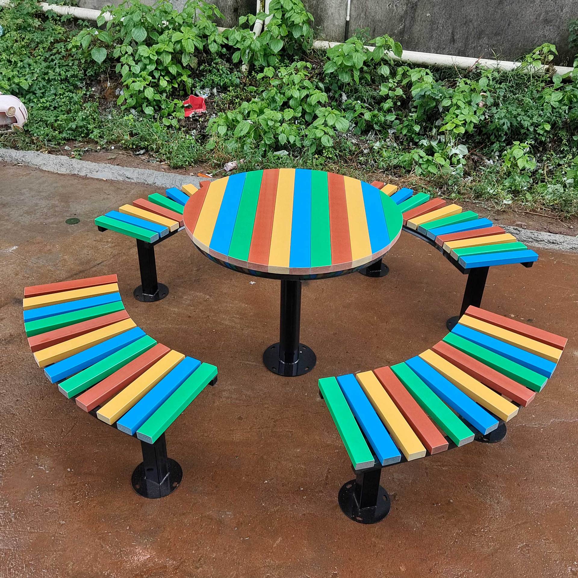 야외 일체형 테이블과 의자, 간단한 야외 빌라 안뜰 정원 공원 원형 테이블, 야외 플라스틱 목재 자외선 차단제 식탁과 의자