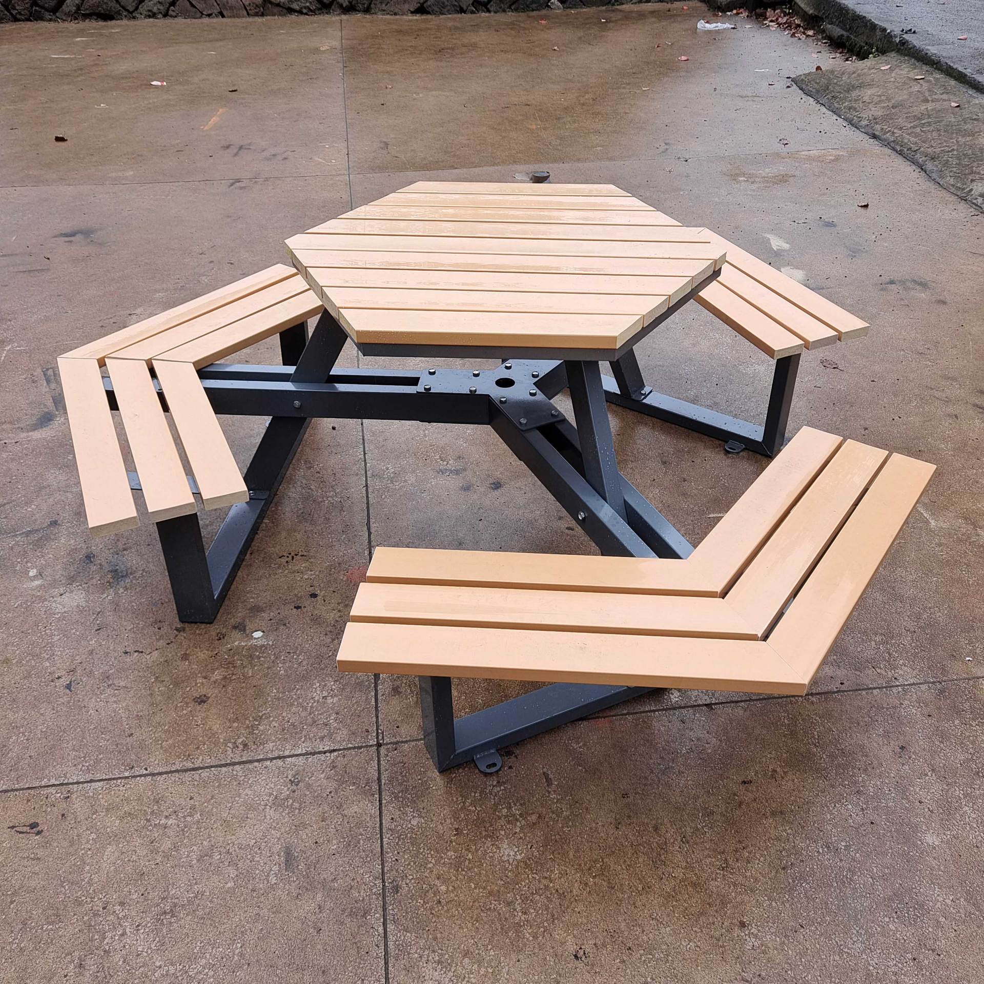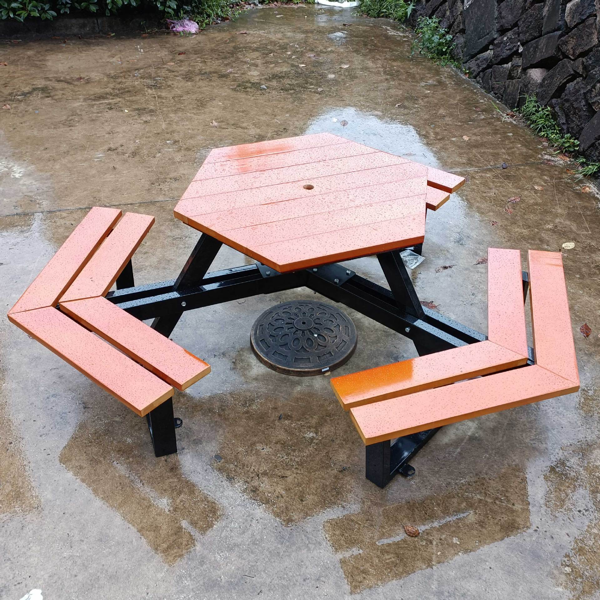 • 육각형 일체형 테이블(Pinus sylvestris 원목)