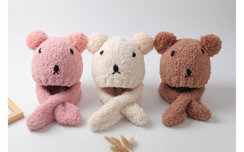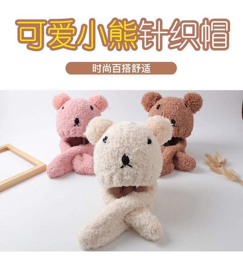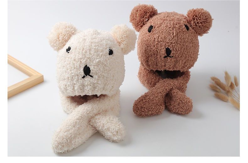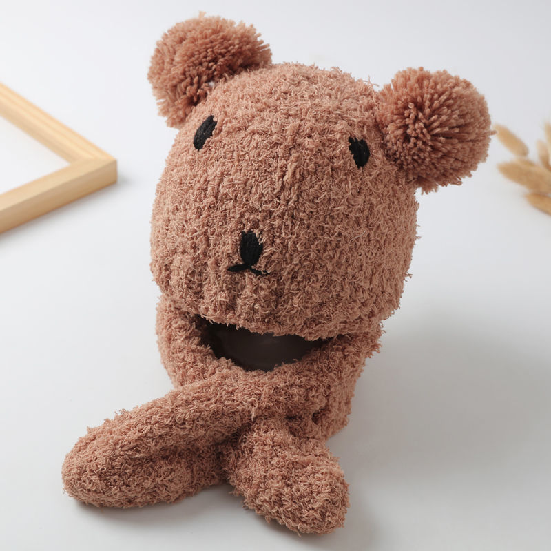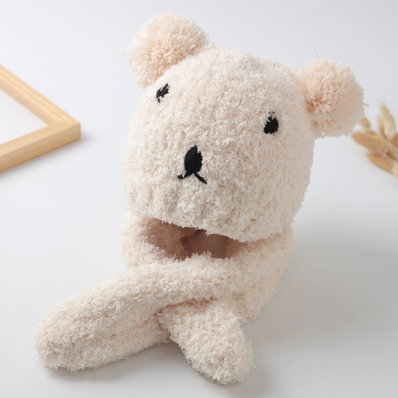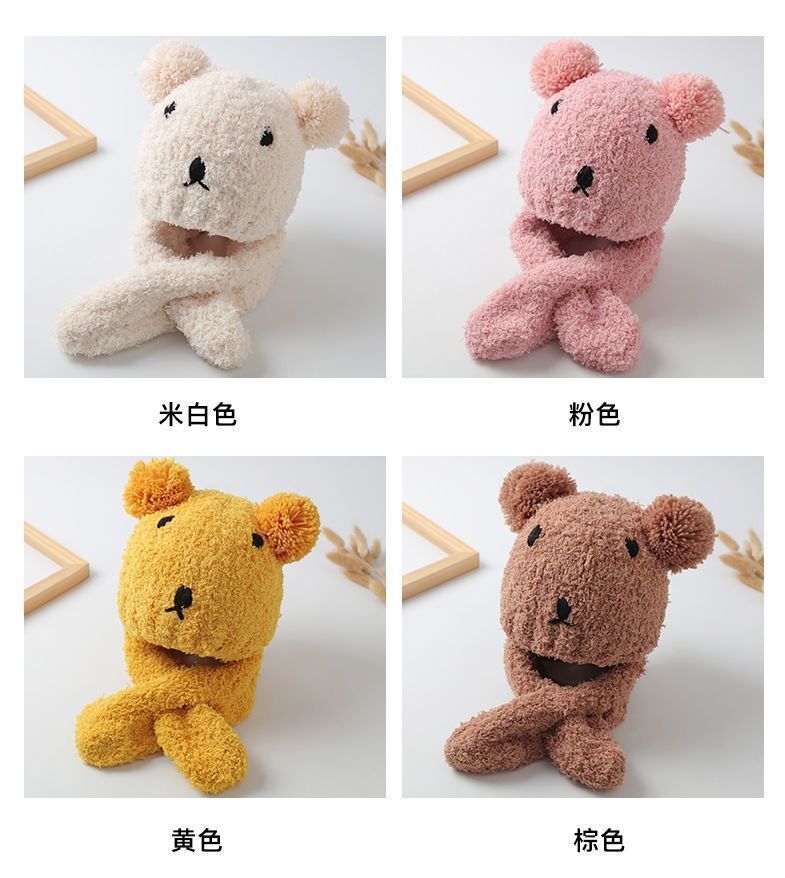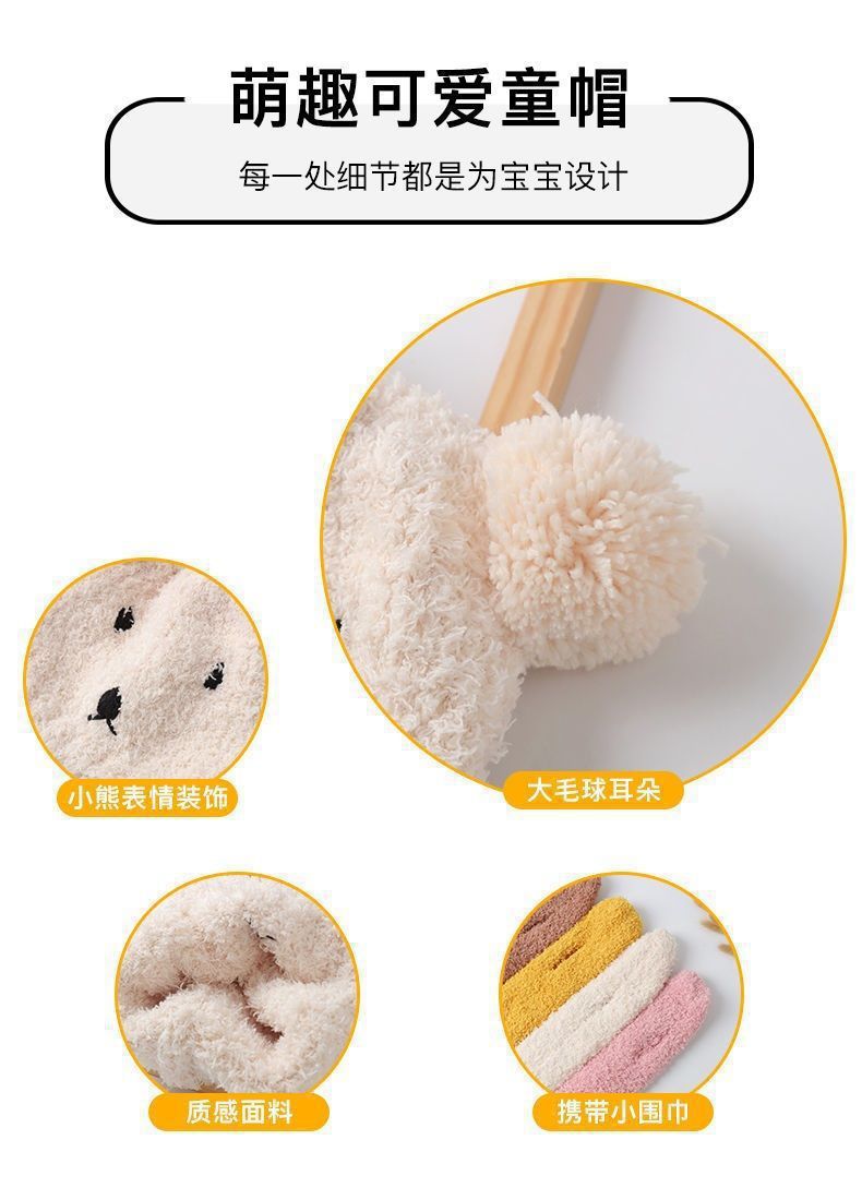 아기 모자 한국 스타일 가을, 겨울 귀여운 슈퍼 귀여운 남성과 여성 아기 귀 보호 모자 스카프 세트 플러시 모자