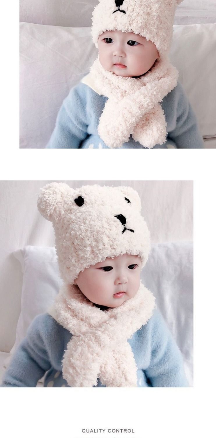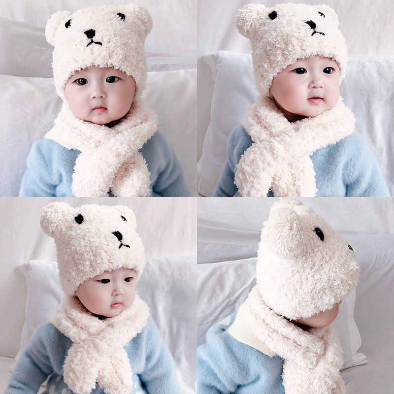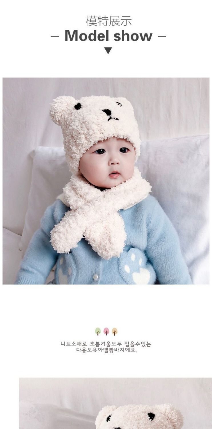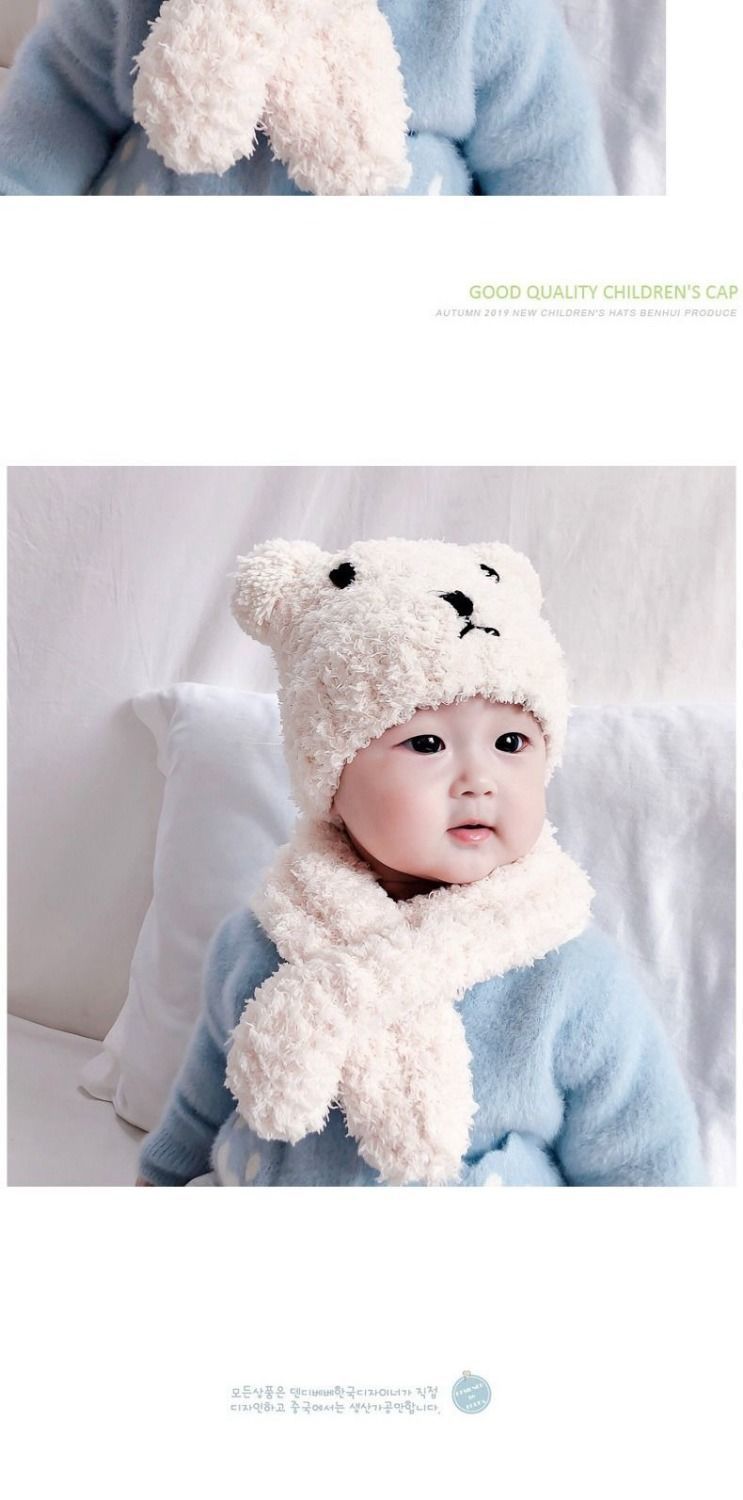 아기 모자 한국 스타일 가을, 겨울 귀여운 슈퍼 귀여운 남성과 여성 아기 귀 보호 모자 스카프 세트 플러시 모자스토어 가기