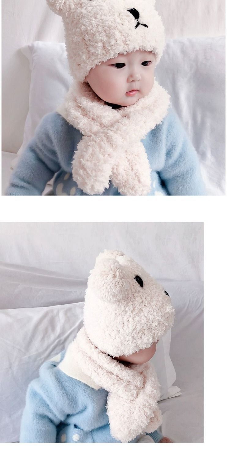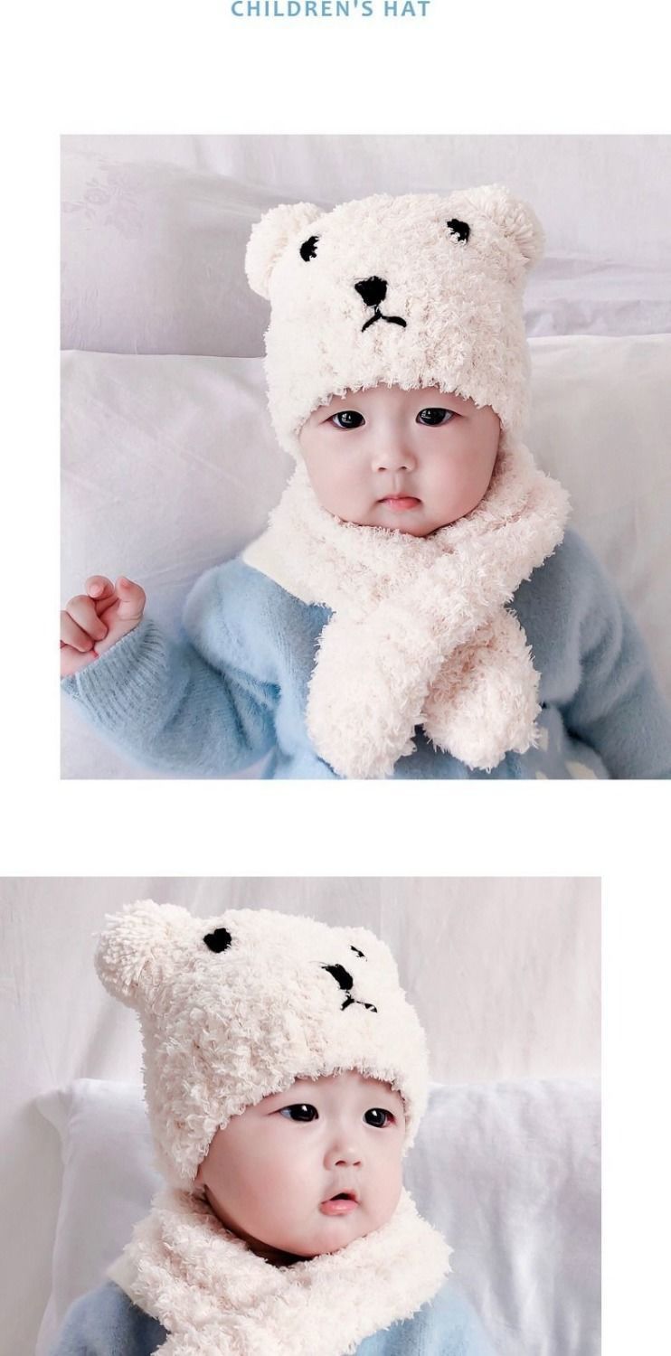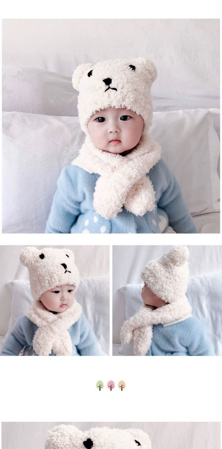 아기 모자 한국 스타일 가을, 겨울 귀여운 슈퍼 귀여운 남성과 여성 아기 귀 보호 모자 스카프 세트 플러시 모자스토어 가기
