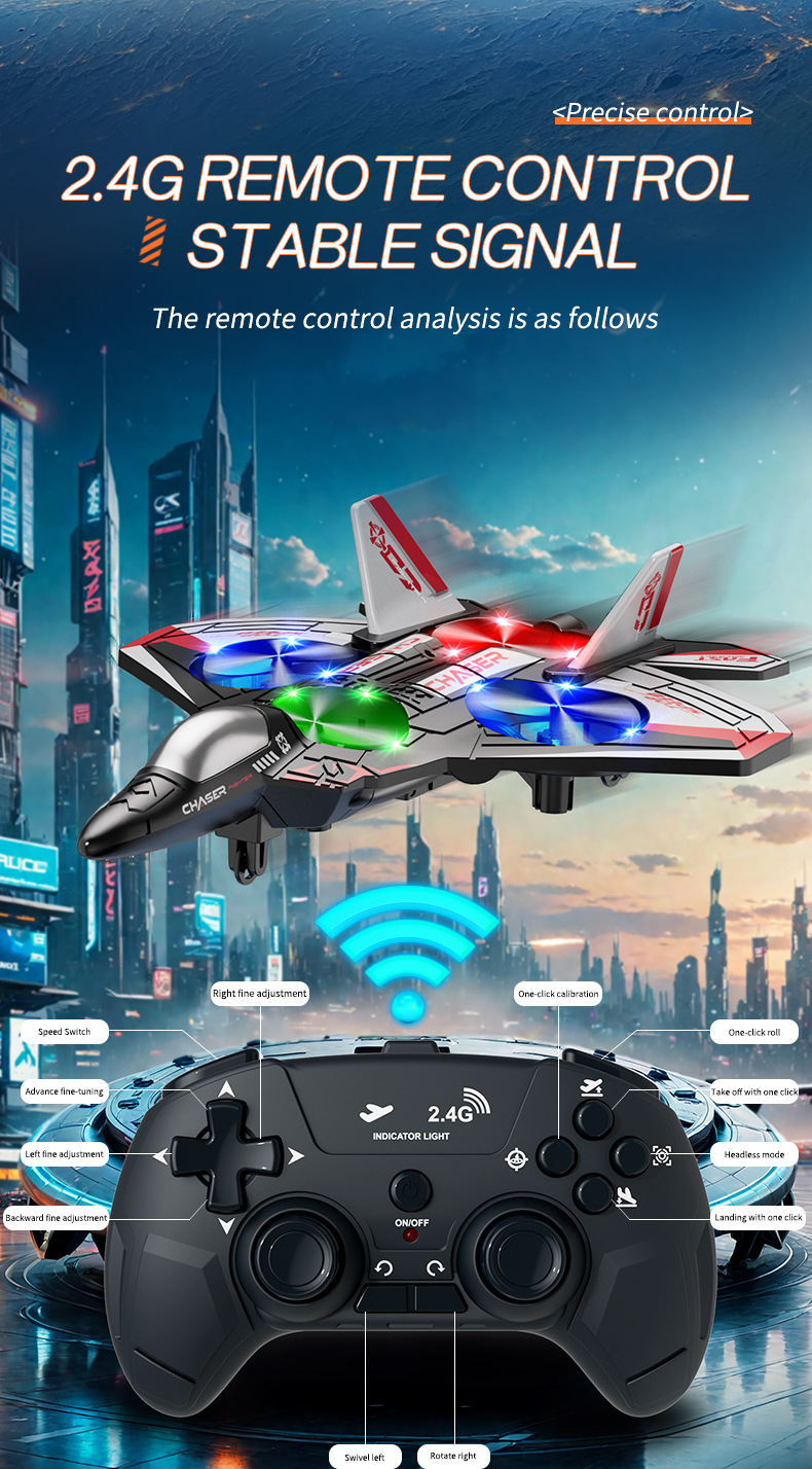 폼 원격 제어 전투기, 낙하 방지, 다채로운 조명 특수 효과, 어린이 원격 제어 항공기 모델 장난감, 4축 드론