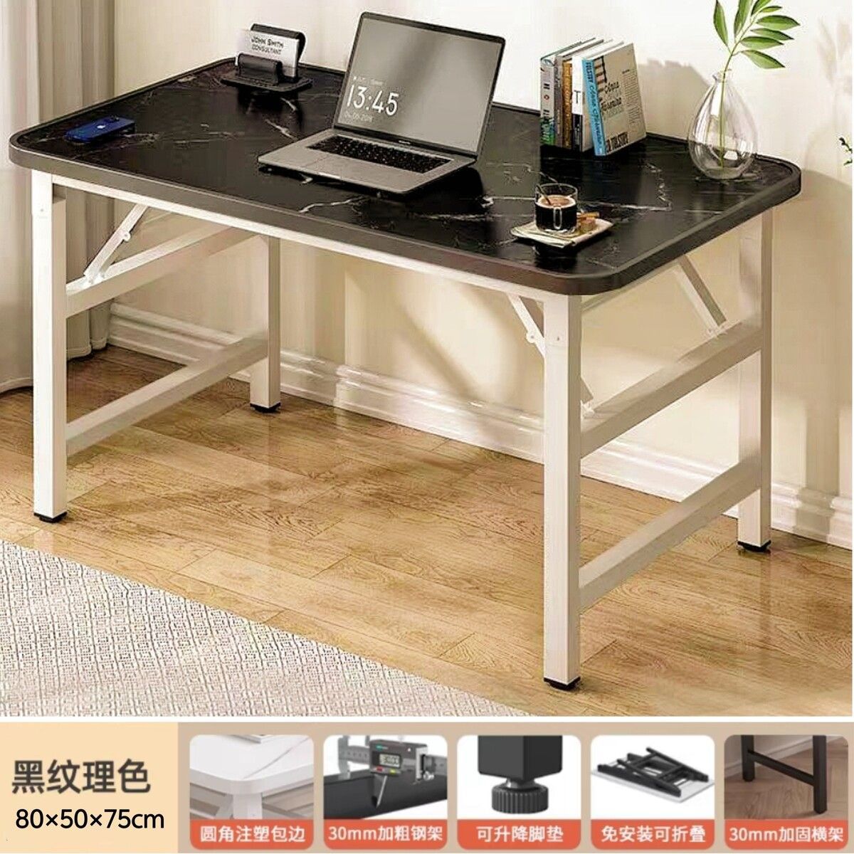 • 흰색 질감의 검정색 프레임 [단일 지지 모델] 길이 80 폭 40 높이 75