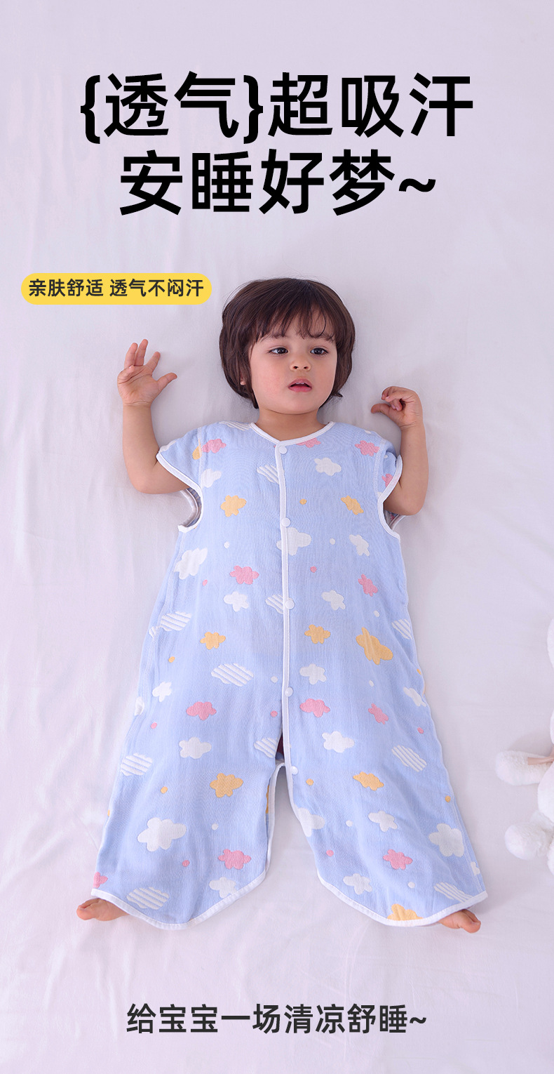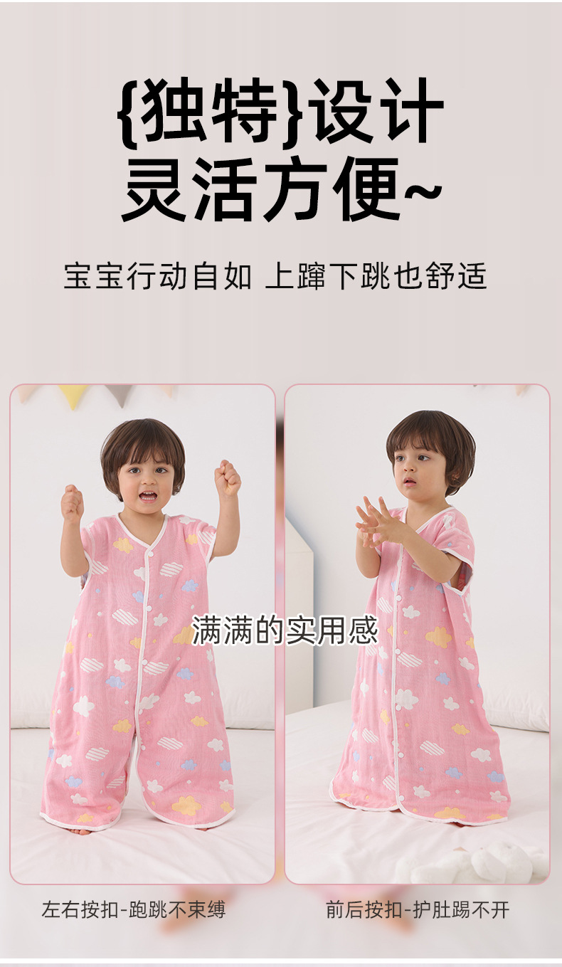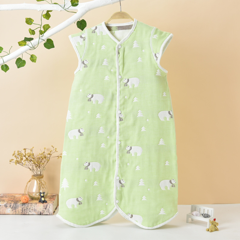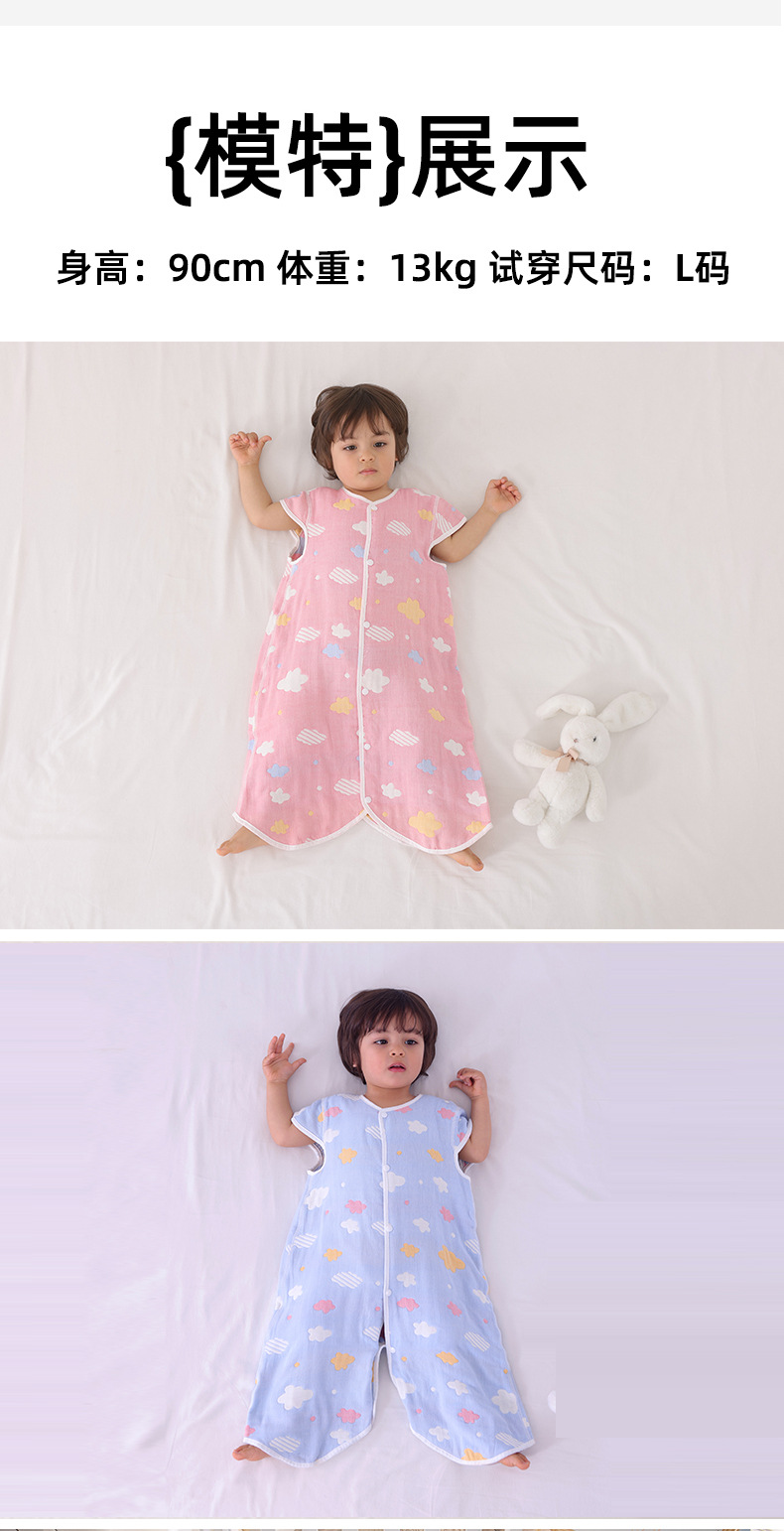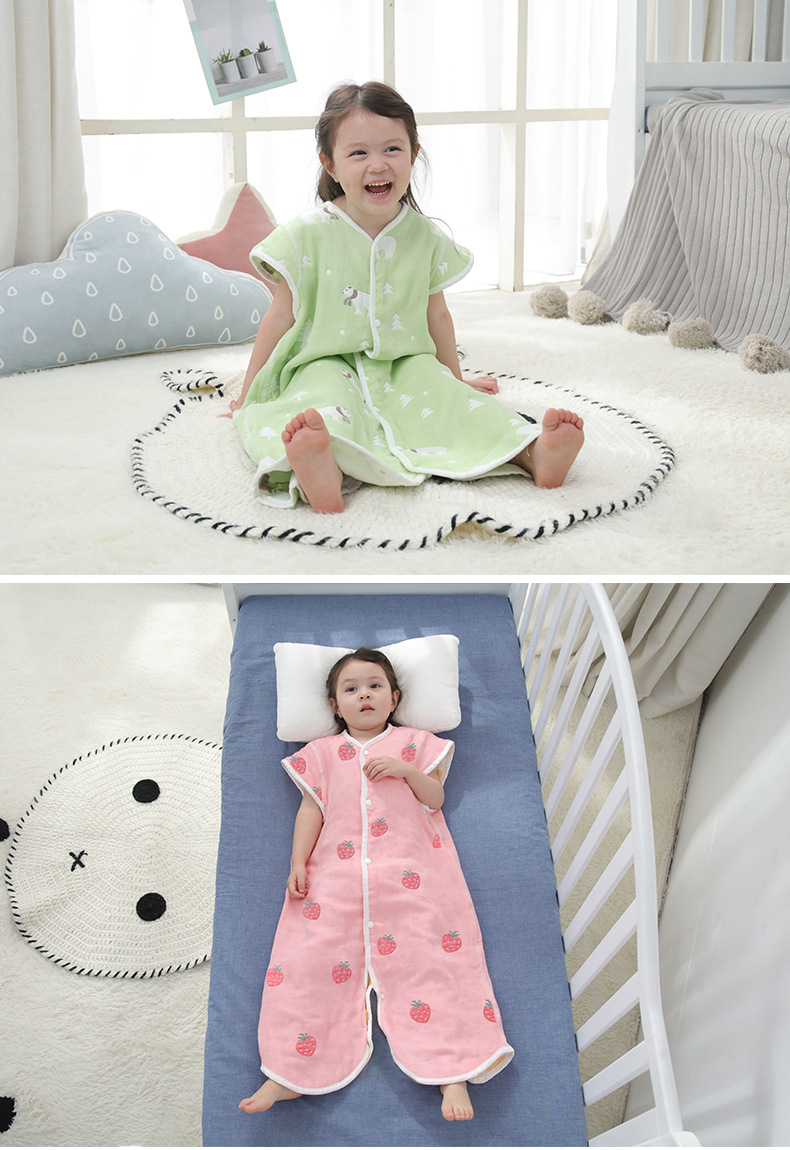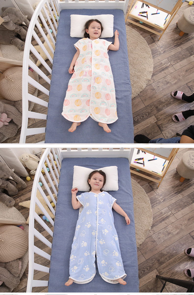 어린이를 위한 순면 거즈 침낭, 아기의 다리가 나누어져 있고 발차기 방지, 배 보호 및 감기 예방, 봄과 가을에 보편적입니다.