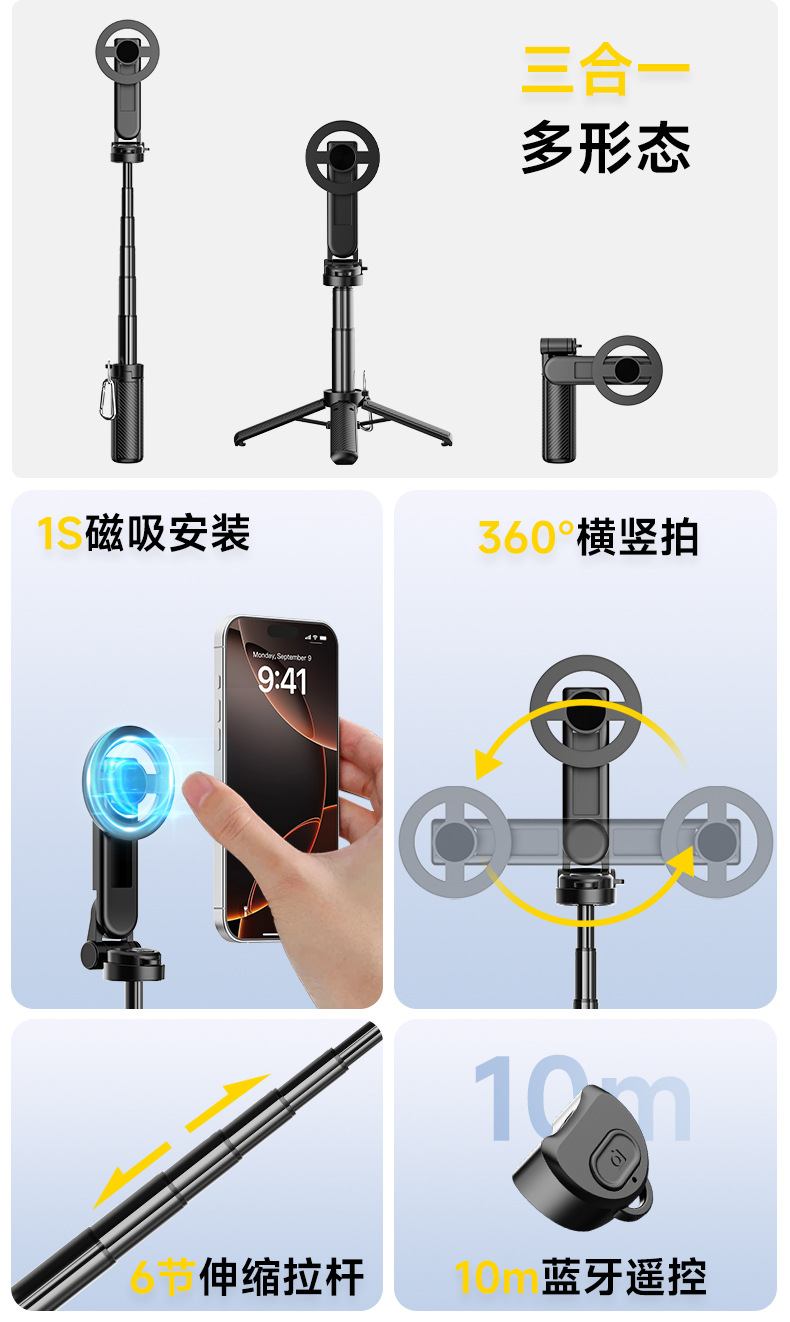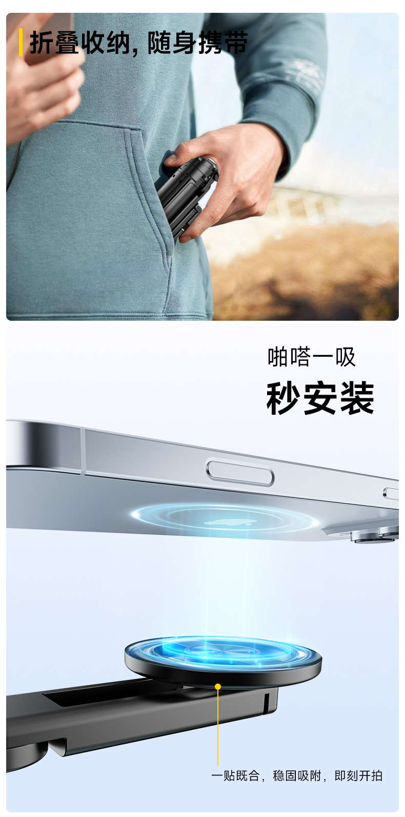 미니 자기 셀카봉 블루투스 셀카 휴대용 텔레스코픽 휴대폰 홀더 Magsafe 핸들 촬영 보조 삼각대