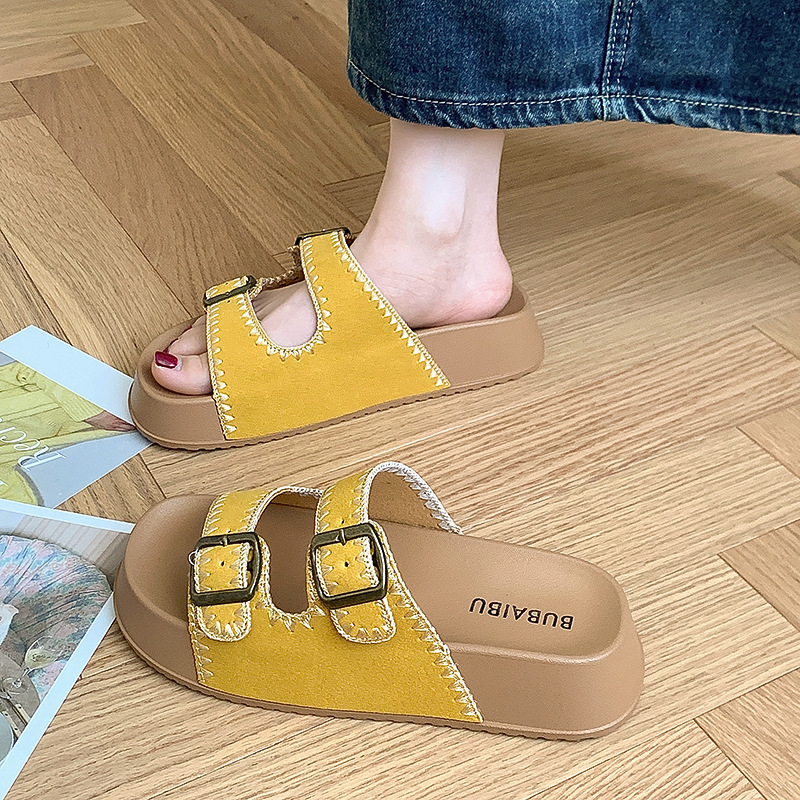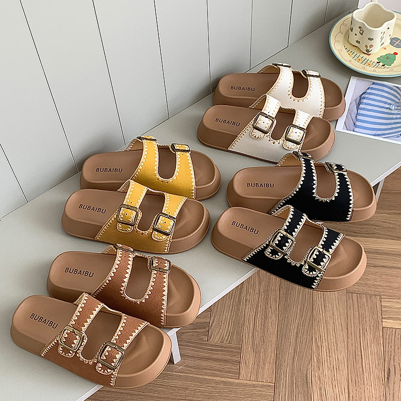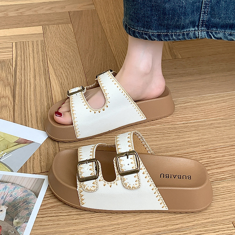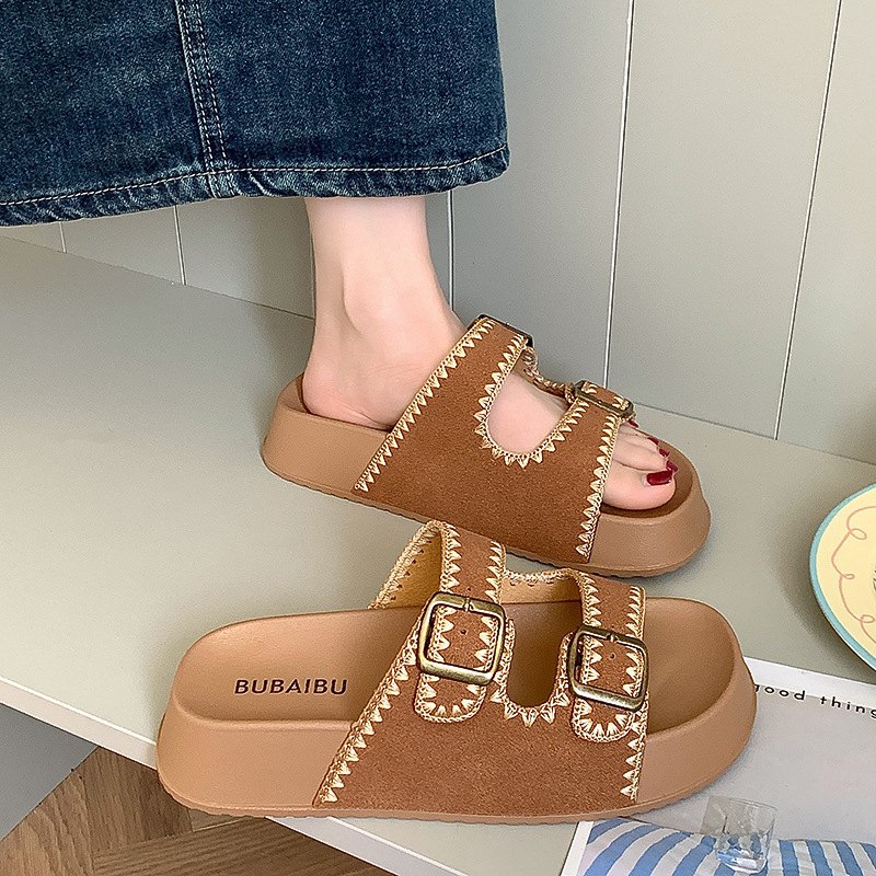 2025 레트로 두꺼운 밑창 자수 보켄 슈즈 슬리퍼 아우터웨어 새로운 여름 높이 증가 샌들 여성 슬리퍼스토어 가기