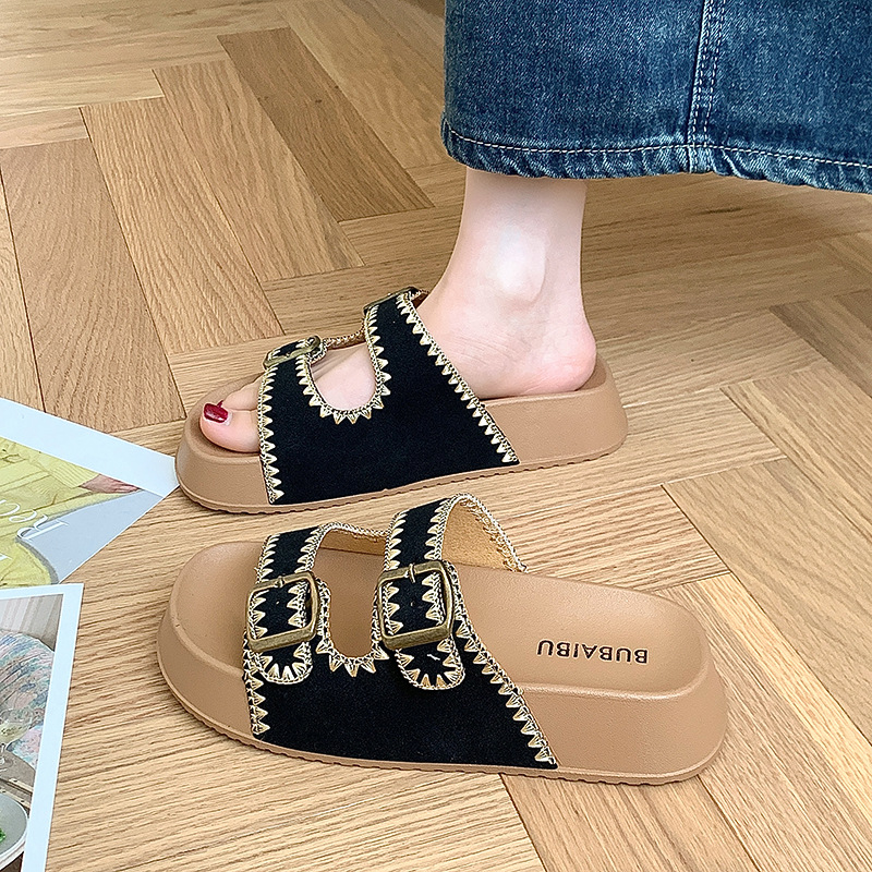 2025 레트로 두꺼운 밑창 자수 보켄 슈즈 슬리퍼 아우터웨어 새로운 여름 높이 증가 샌들 여성 슬리퍼