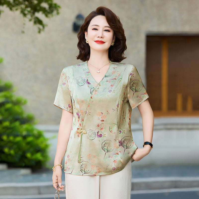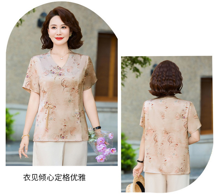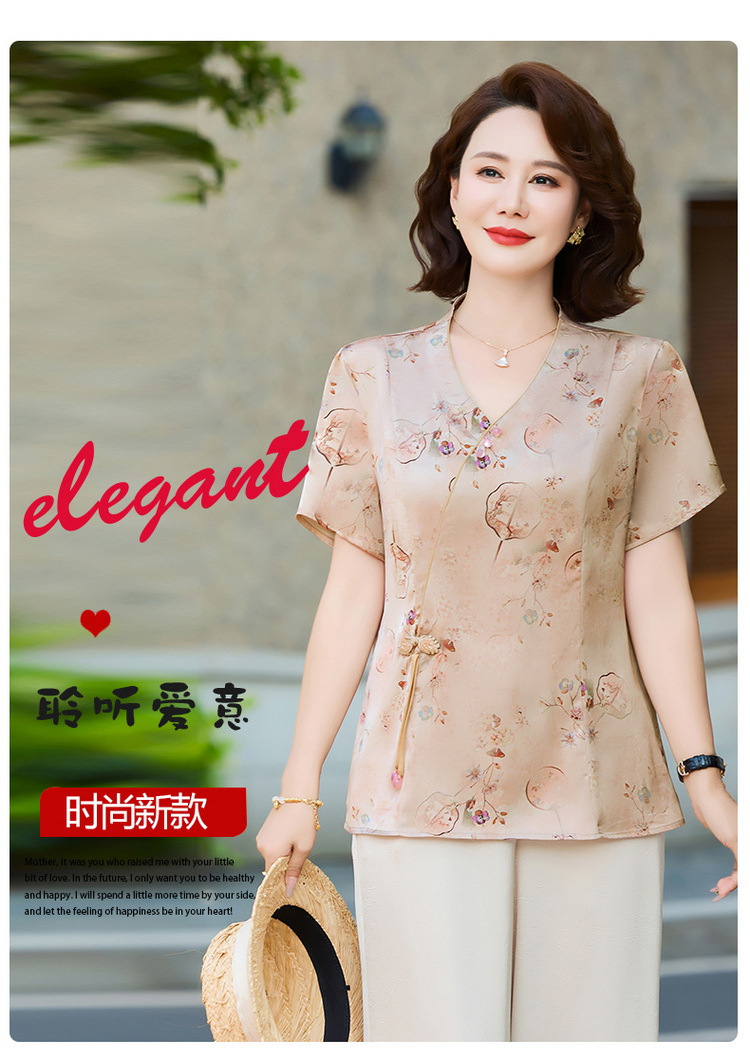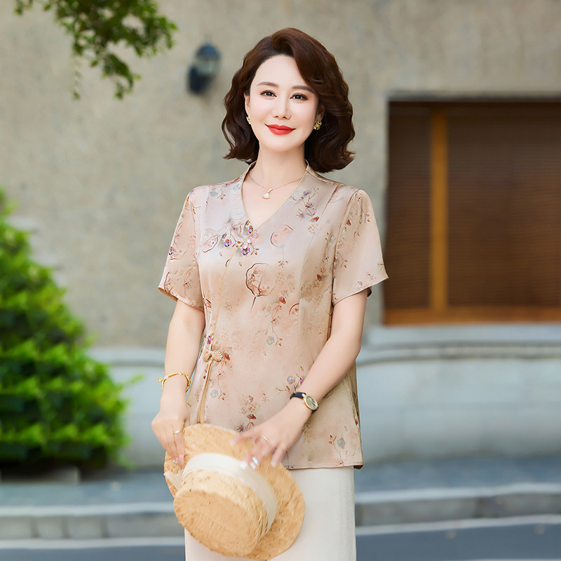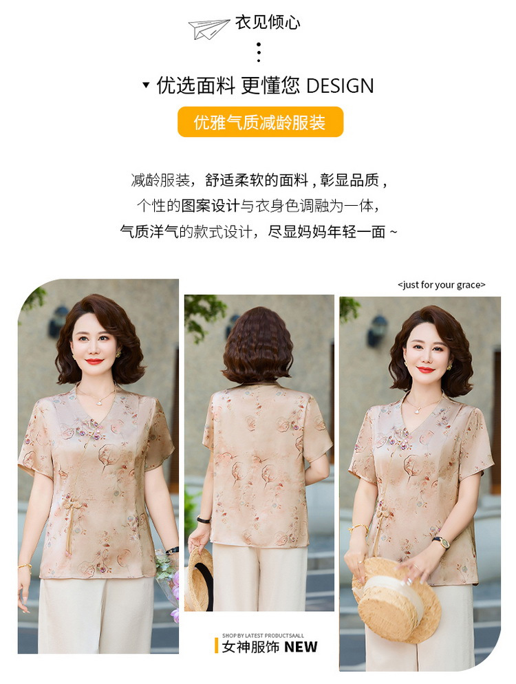 2025년 새로운 스타일의 엄마 셔츠, 중노년 여름 쉬폰 탑, 루즈한 티셔츠, 드롭 배송스토어 가기