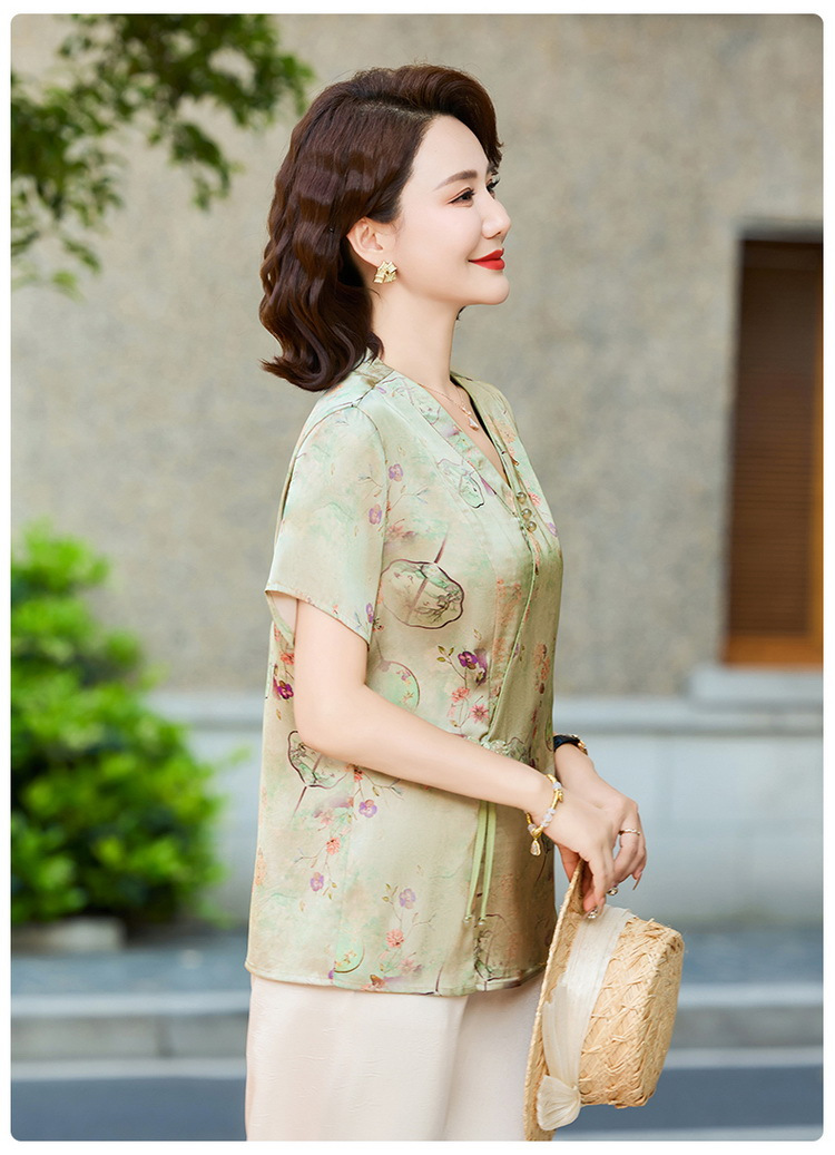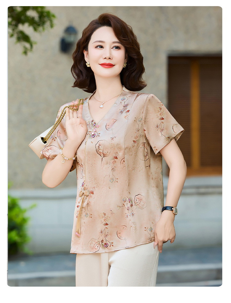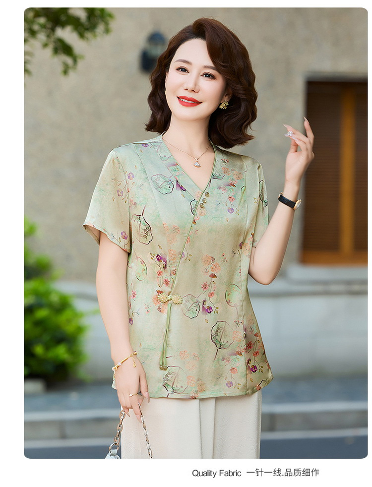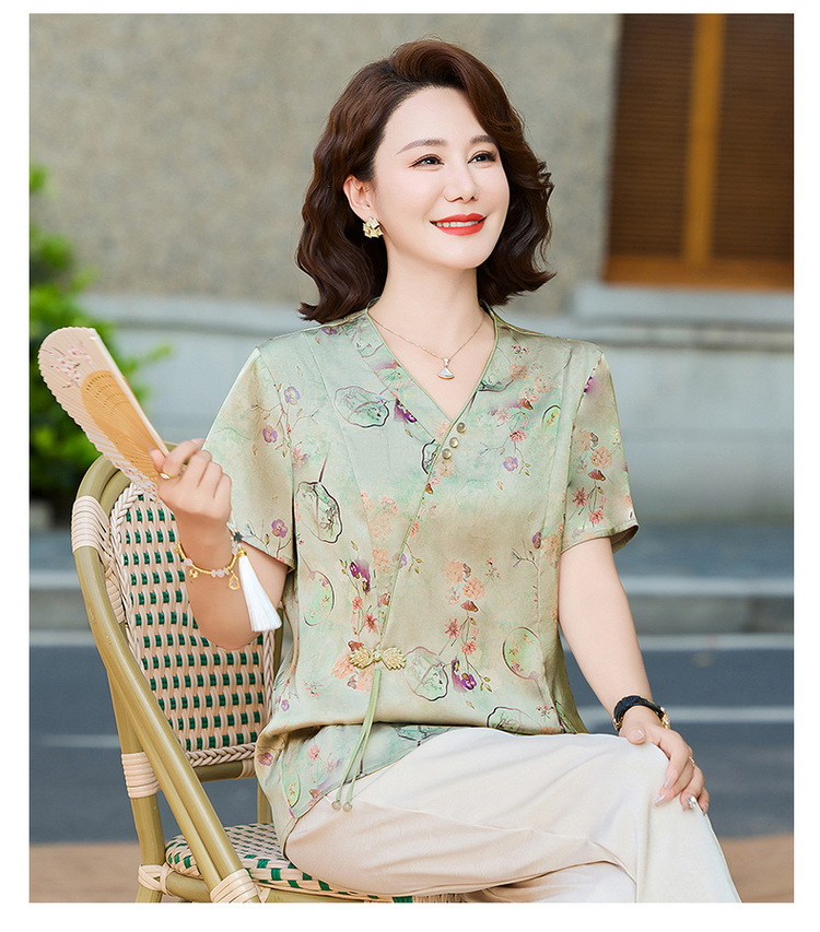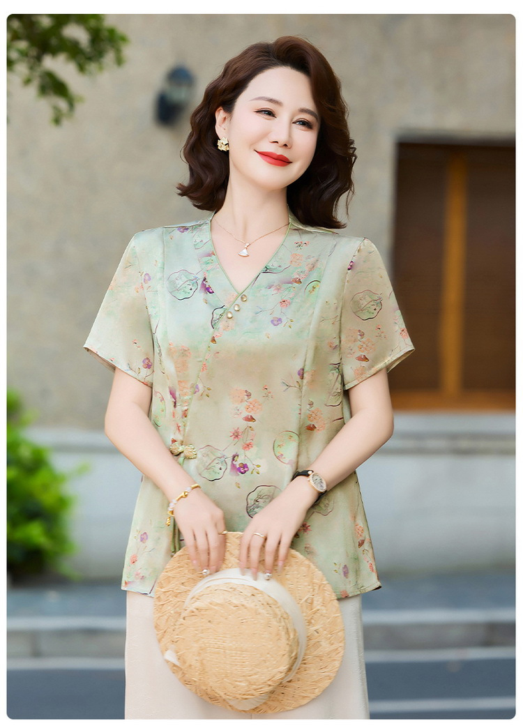 2025년 새로운 스타일의 엄마 셔츠, 중노년 여름 쉬폰 탑, 루즈한 티셔츠, 드롭 배송스토어 가기