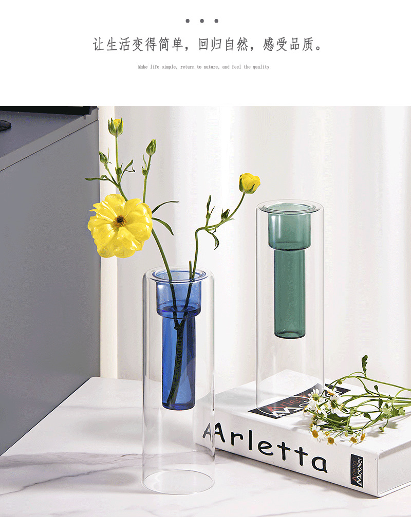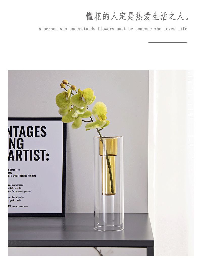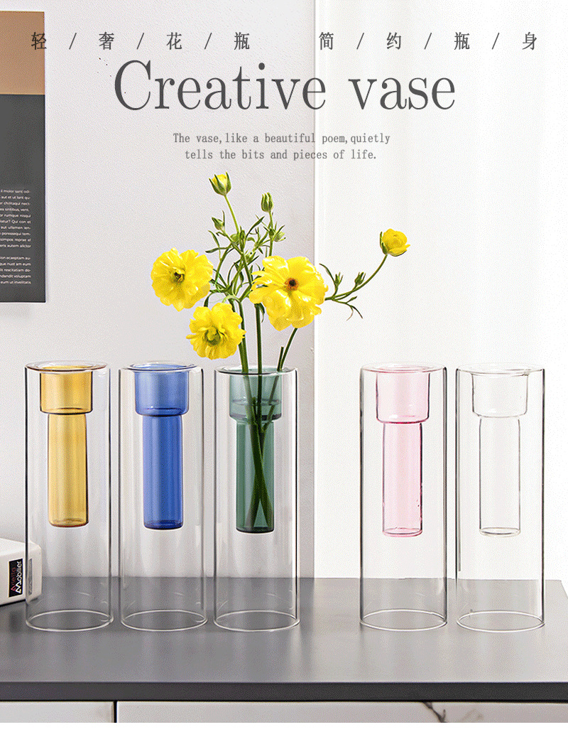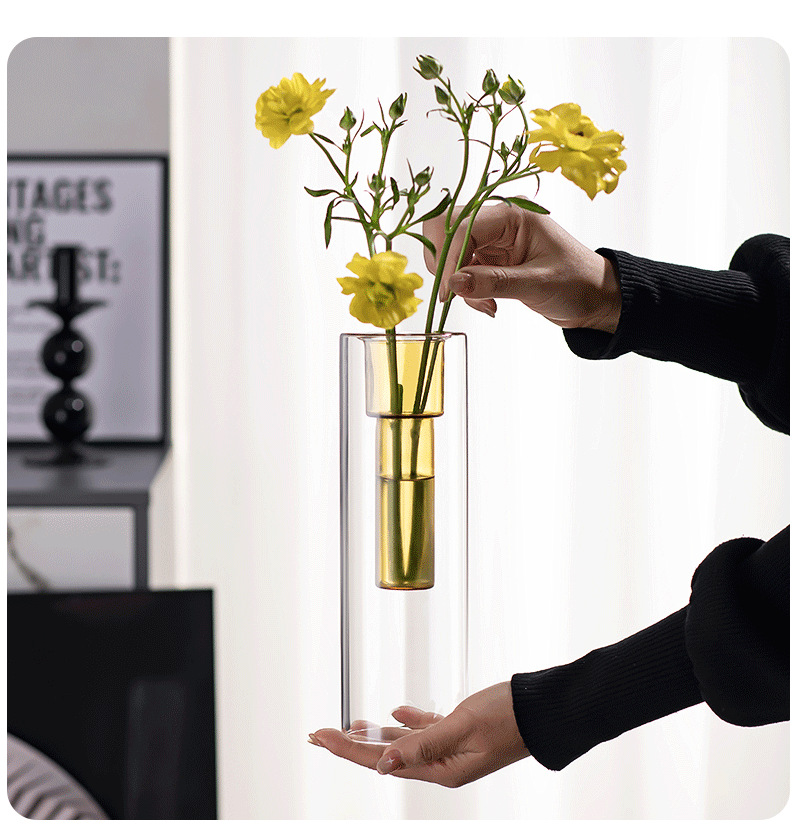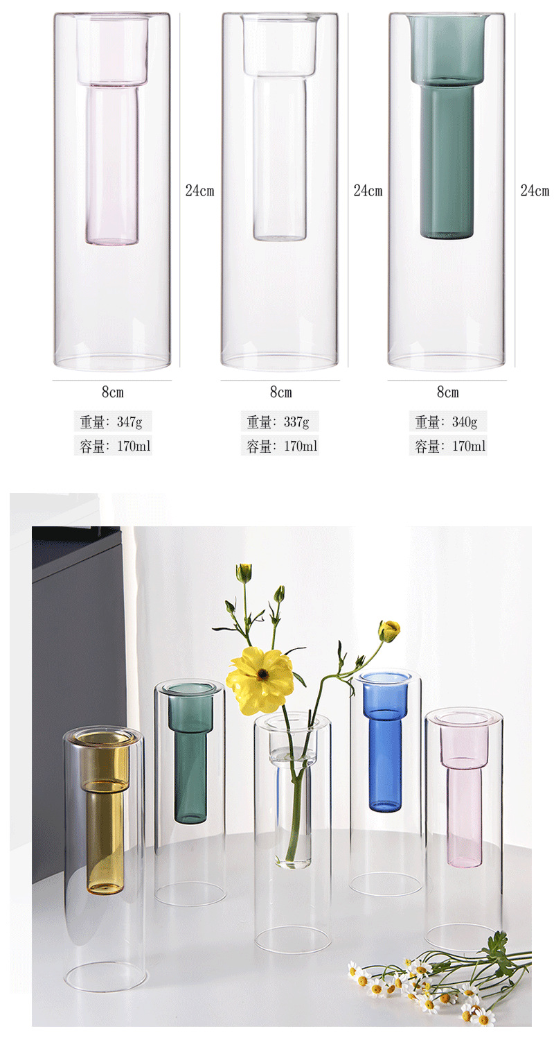 Ins 북유럽 더블 레이어 스테인드 글라스 꽃병 크리 에이 티브 투명 스트레이트 꽃 홀더 맞춤형 꽃 다목적 홈 가구스토어 가기