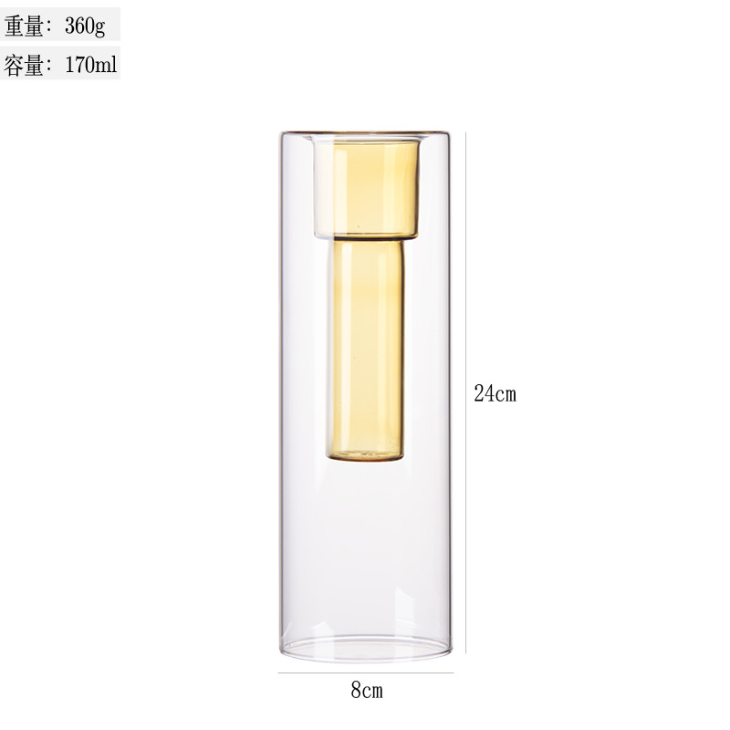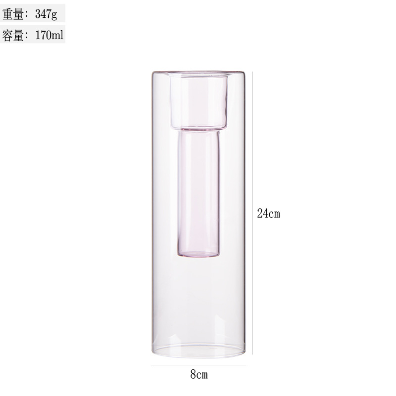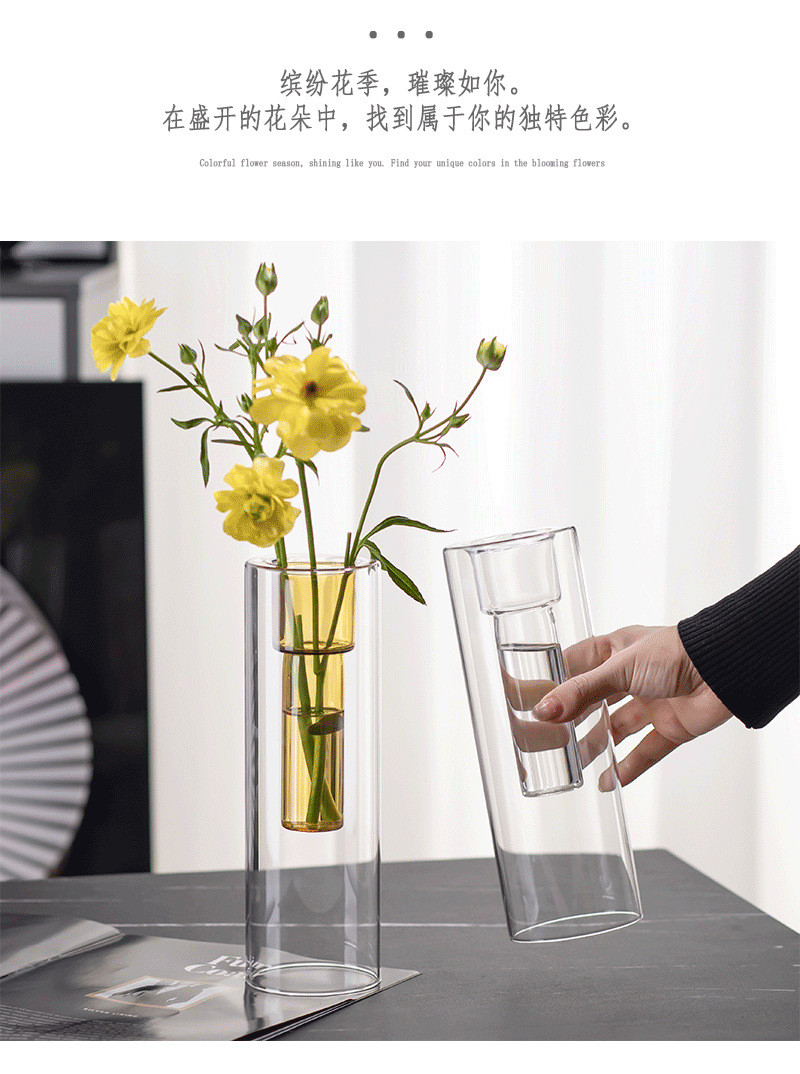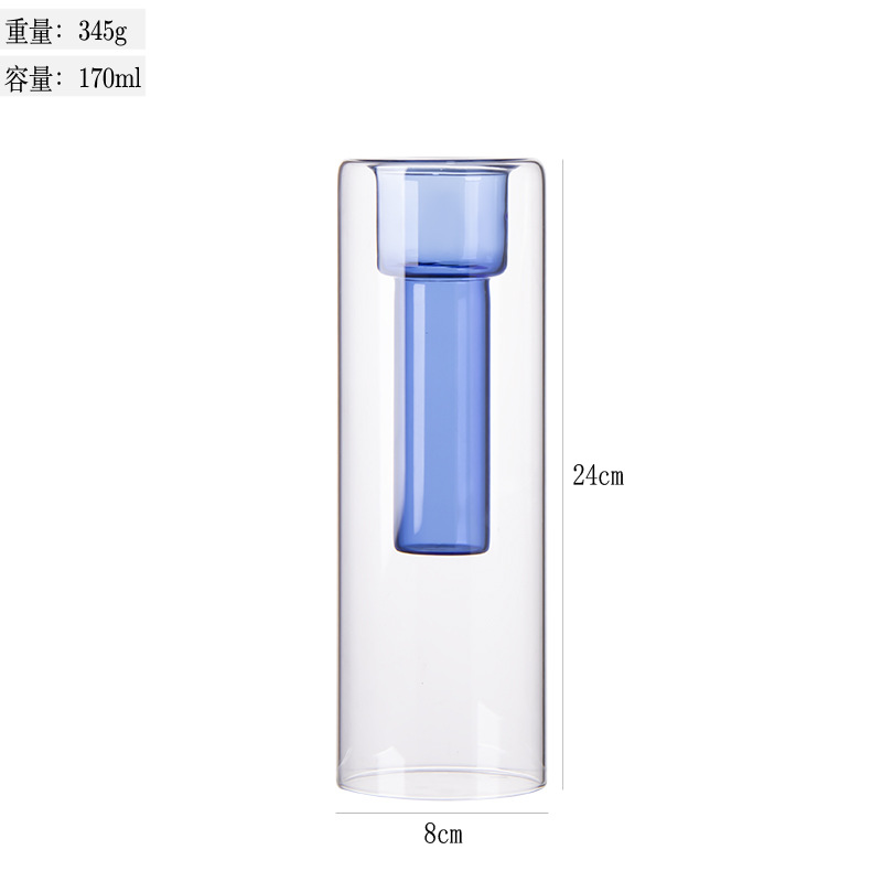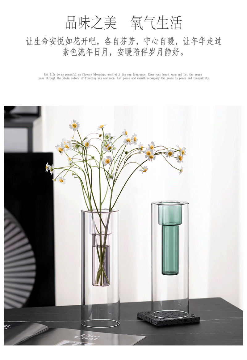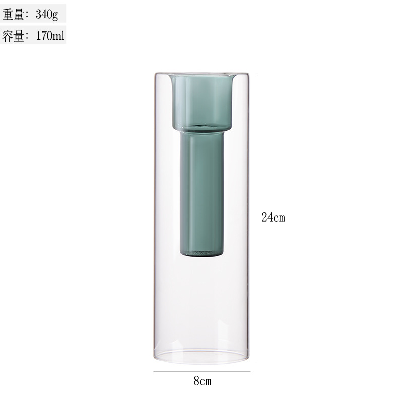 Ins 북유럽 더블 레이어 스테인드 글라스 꽃병 크리 에이 티브 투명 스트레이트 꽃 홀더 맞춤형 꽃 다목적 홈 가구스토어 가기