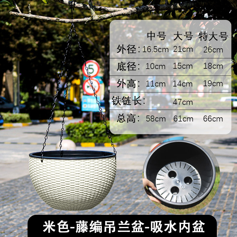 • 베이지 등나무 거미 식물 냄비 + 심기 바구니 + 철 사슬 + 물 플러그