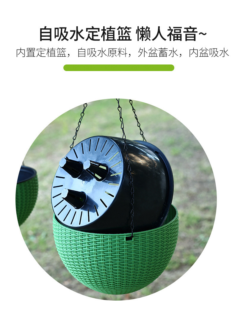 수지 화분, 걸이형 바구니, 걸이형 플라스틱 두꺼운 심기 화분, 녹색 덩어리 다육식물 걸이형 화분, 채소 재배를 위한 자체 흡수 수경법